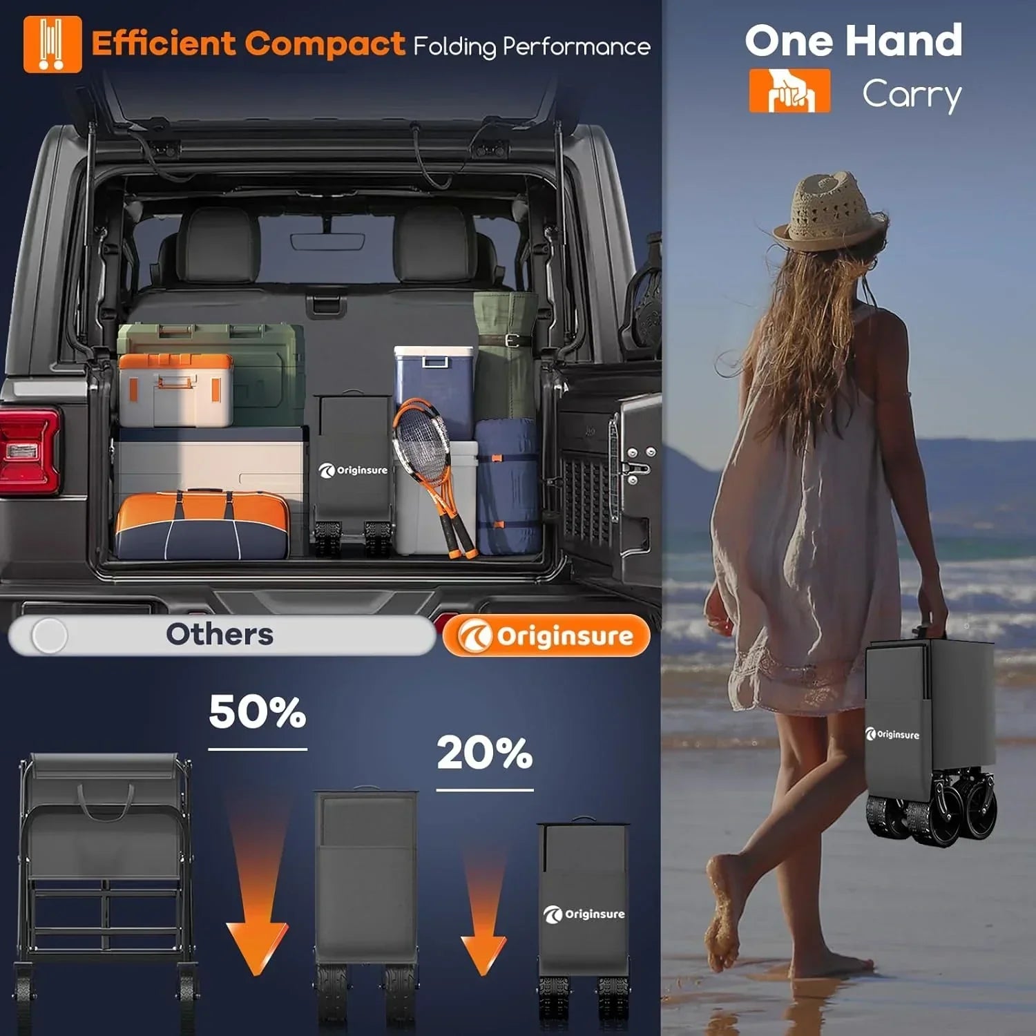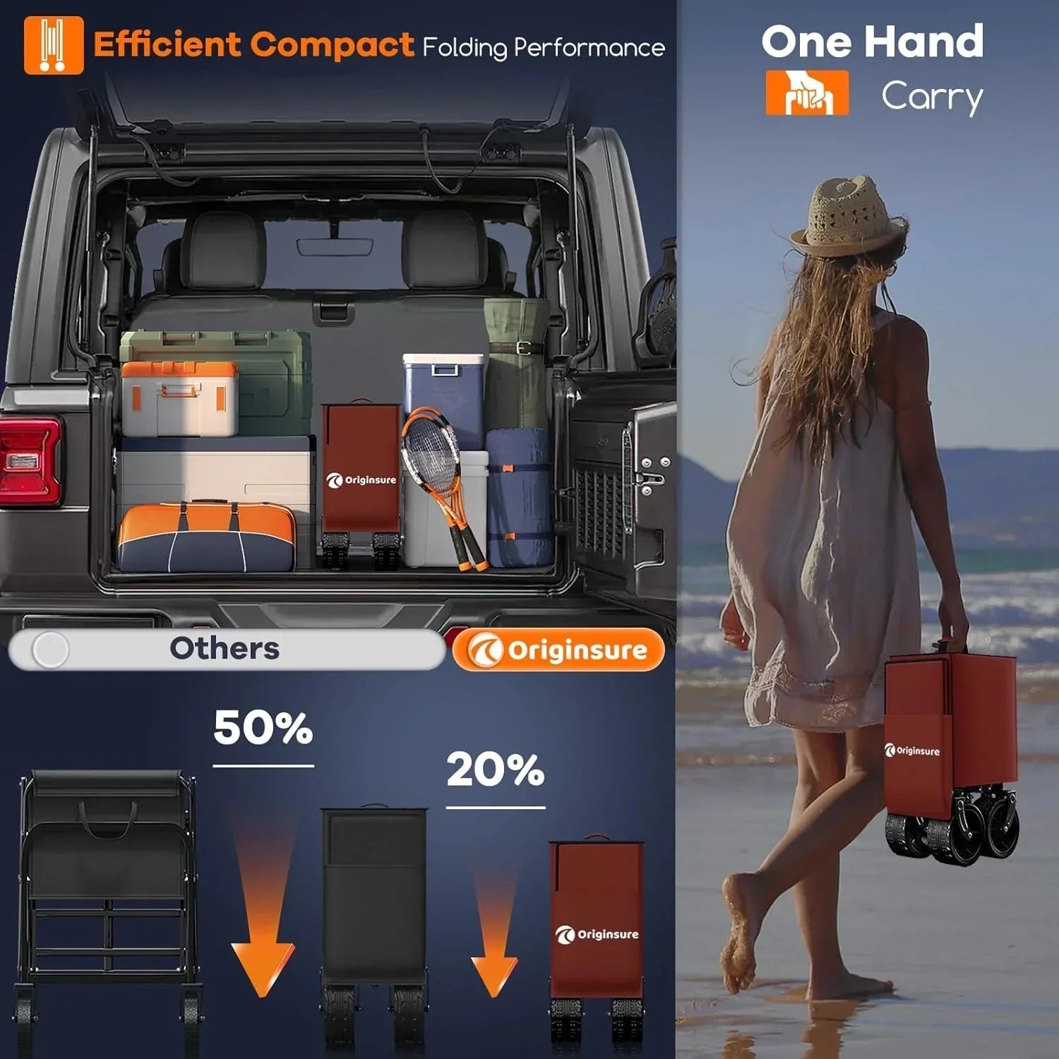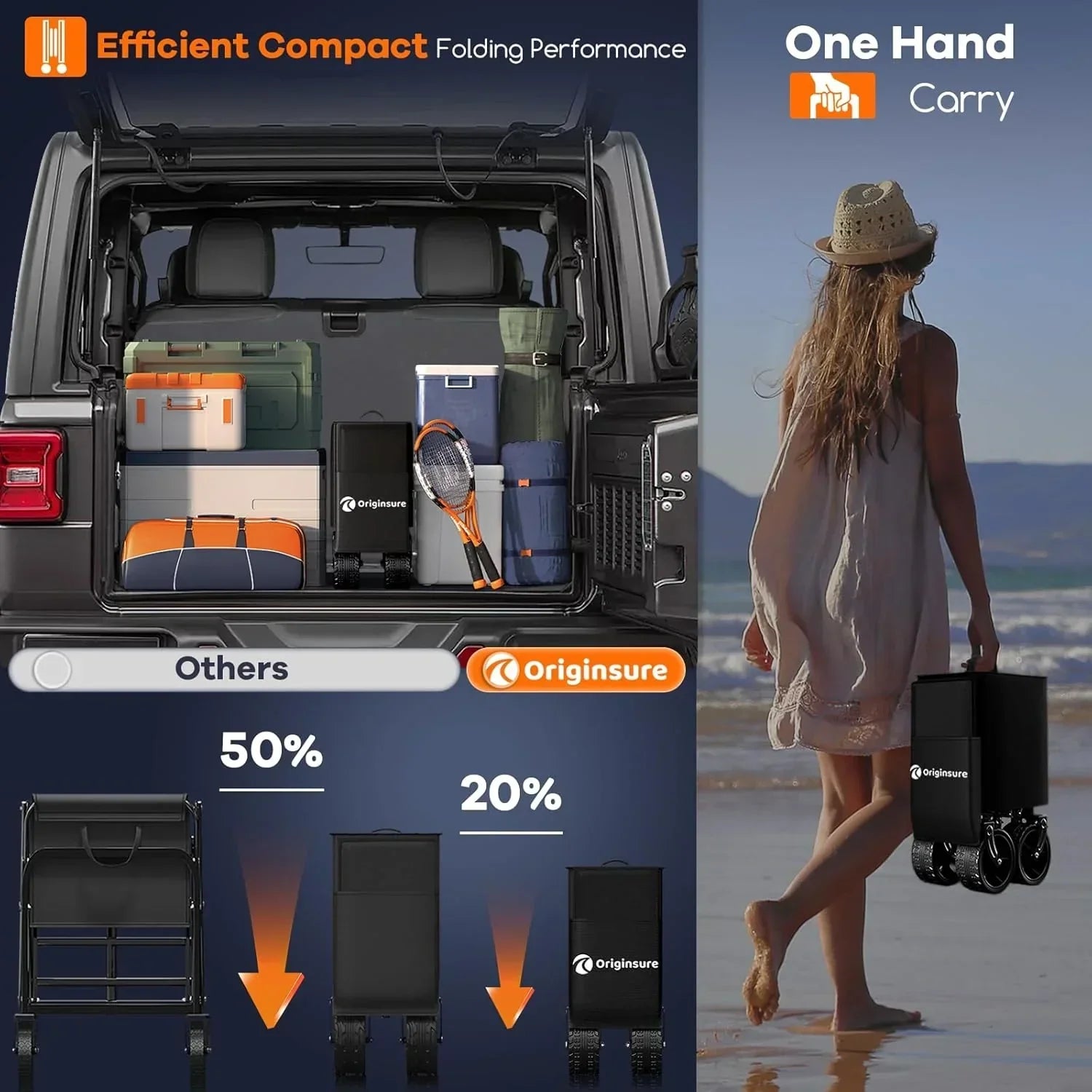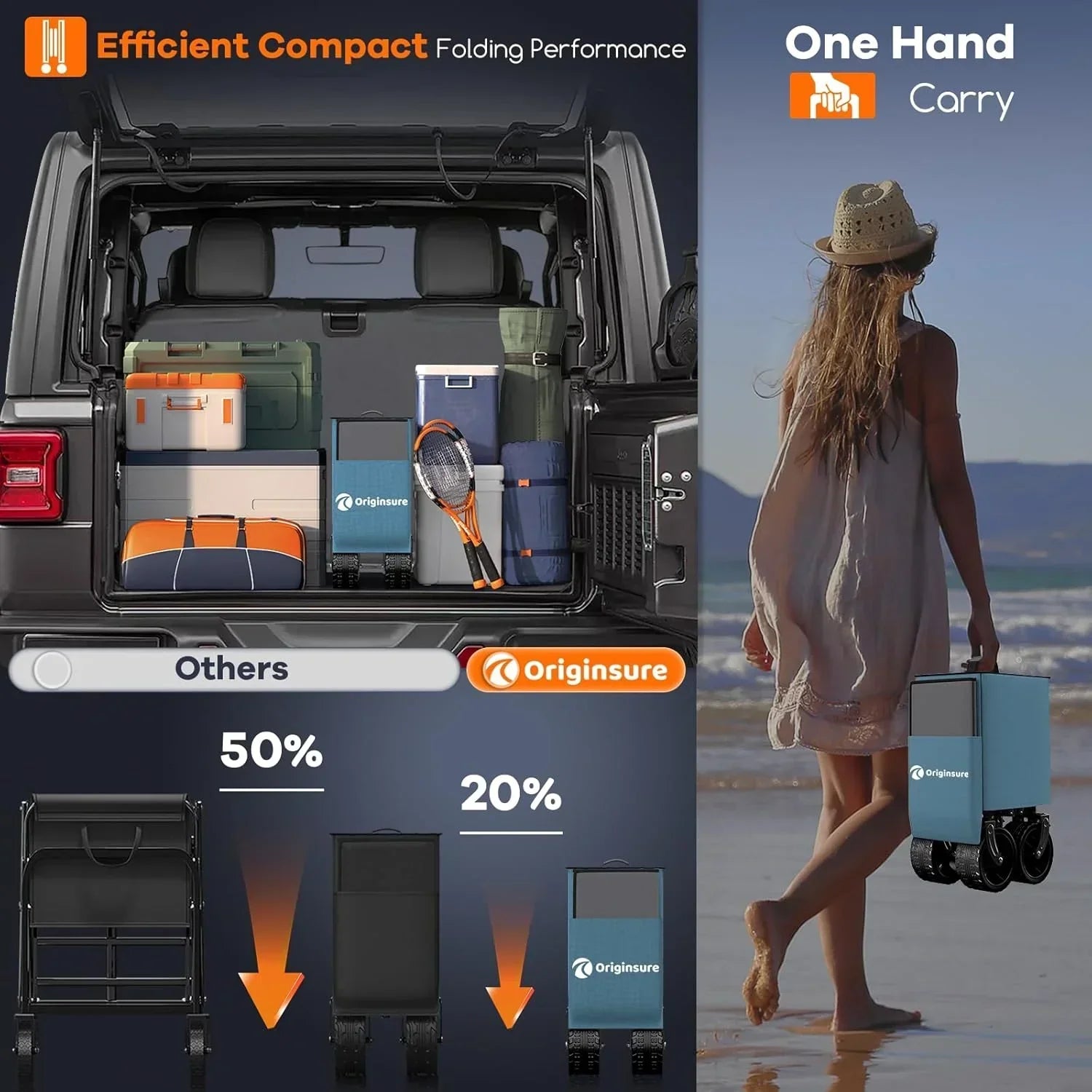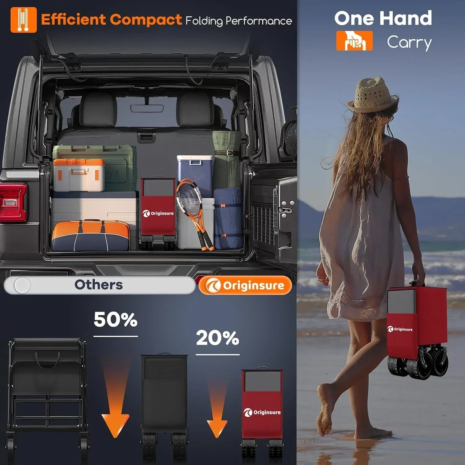 38" long foldable four-wheel stroller 460 lb capacity 220 liter folding beach stroller