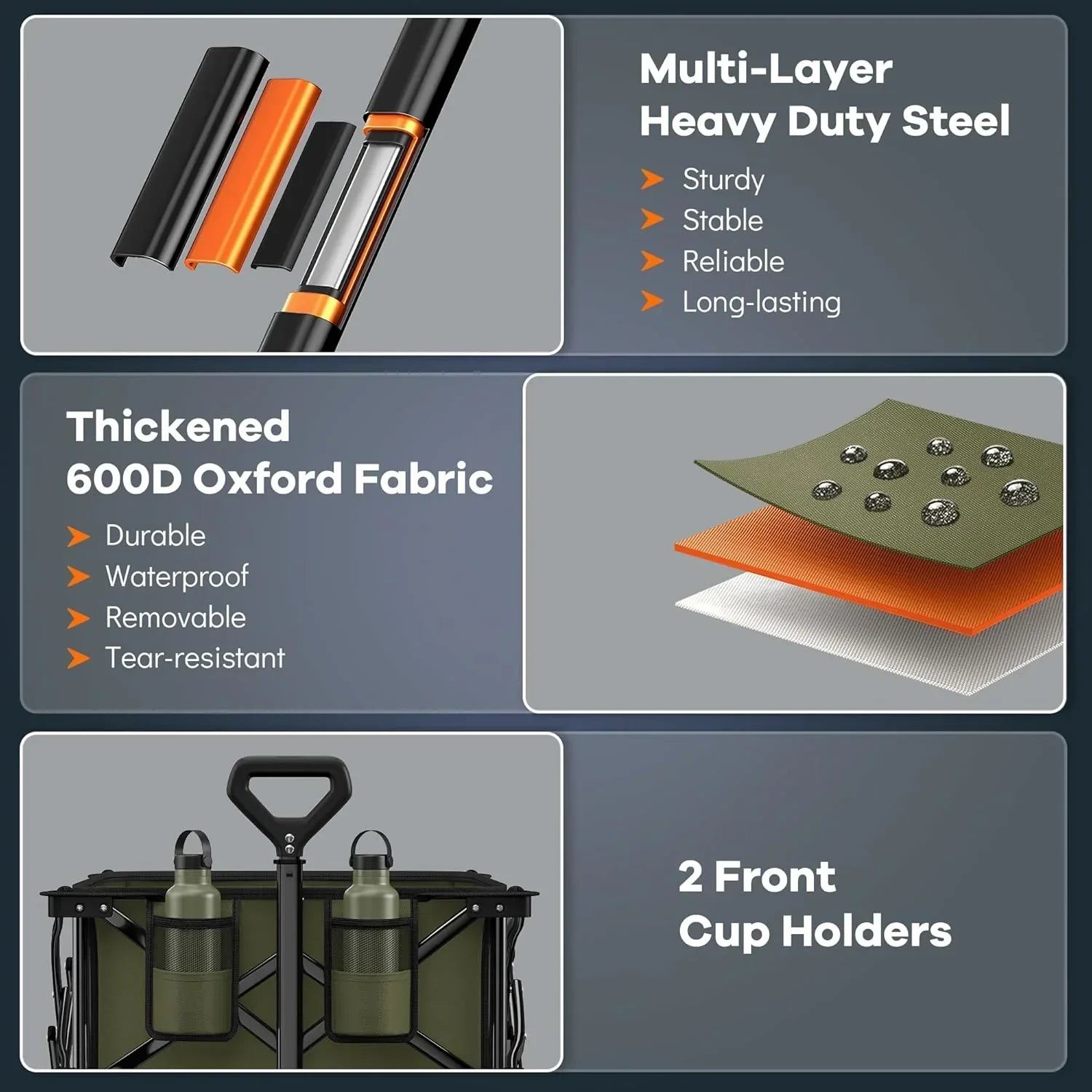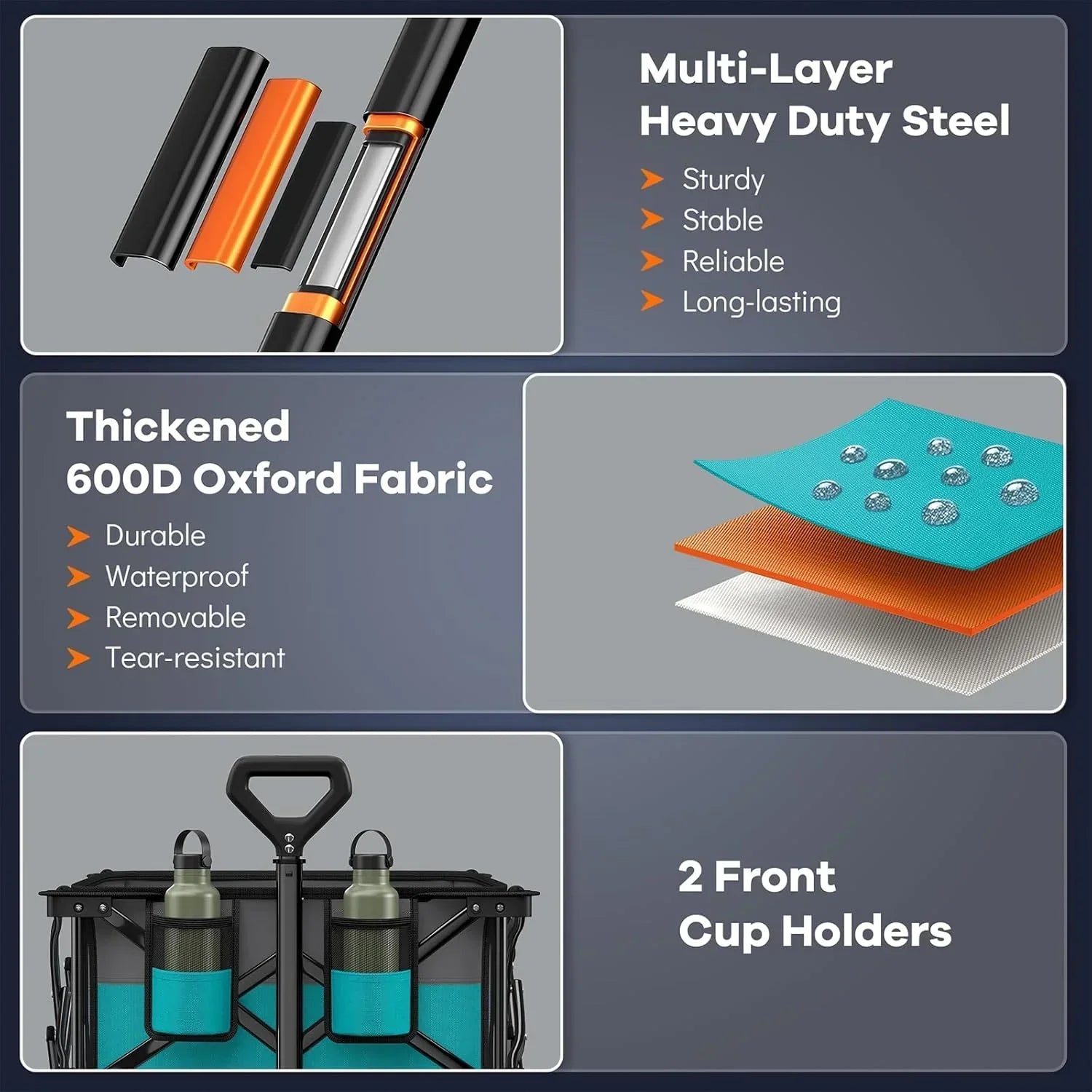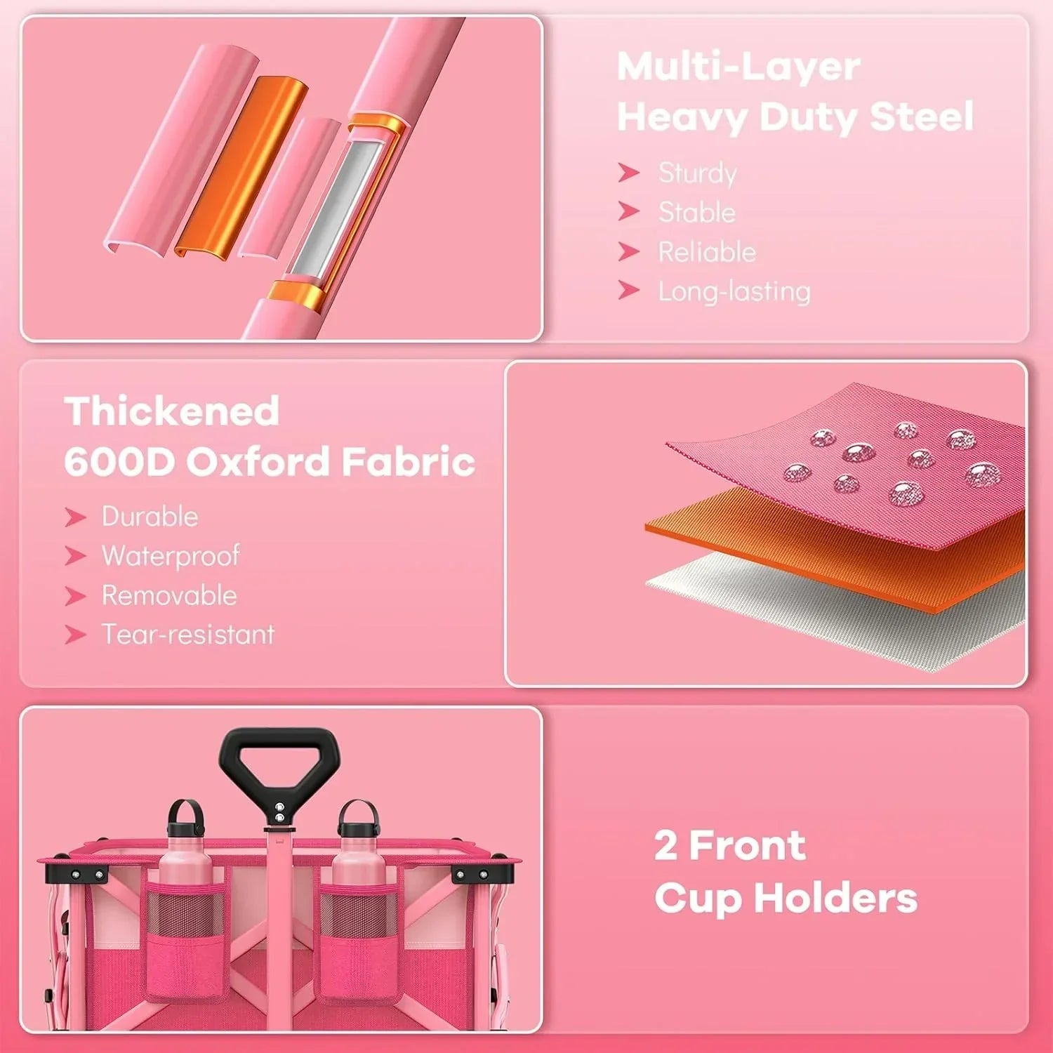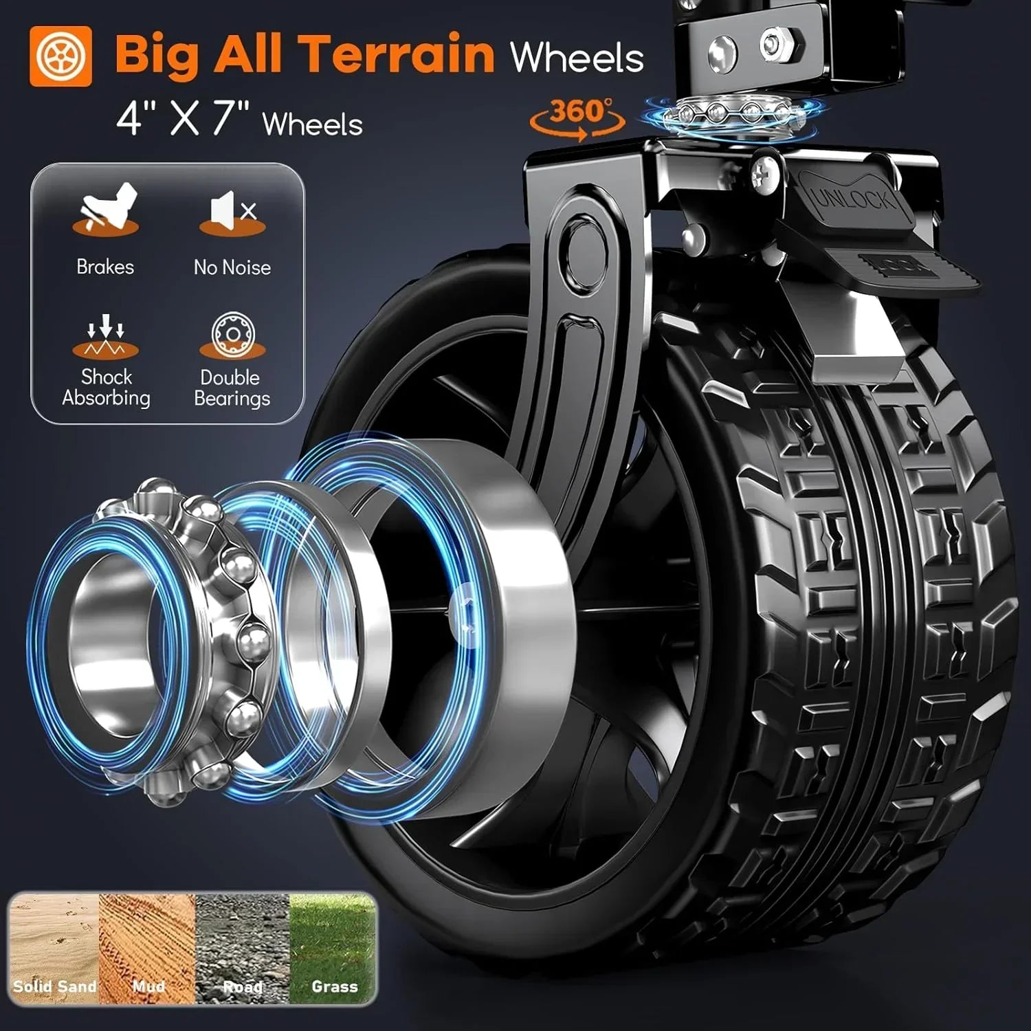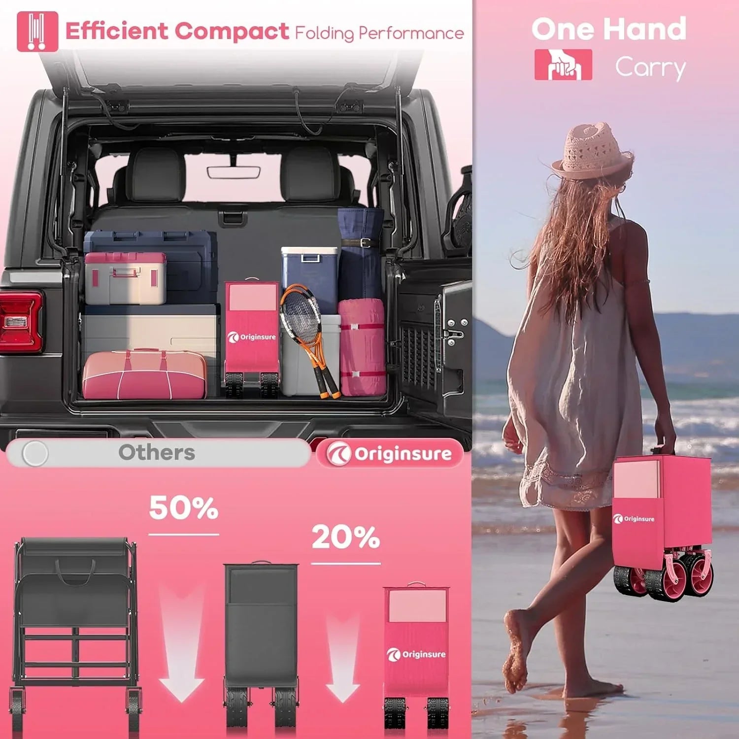 38" long foldable four-wheel stroller 460 lb capacity 220 liter folding beach stroller