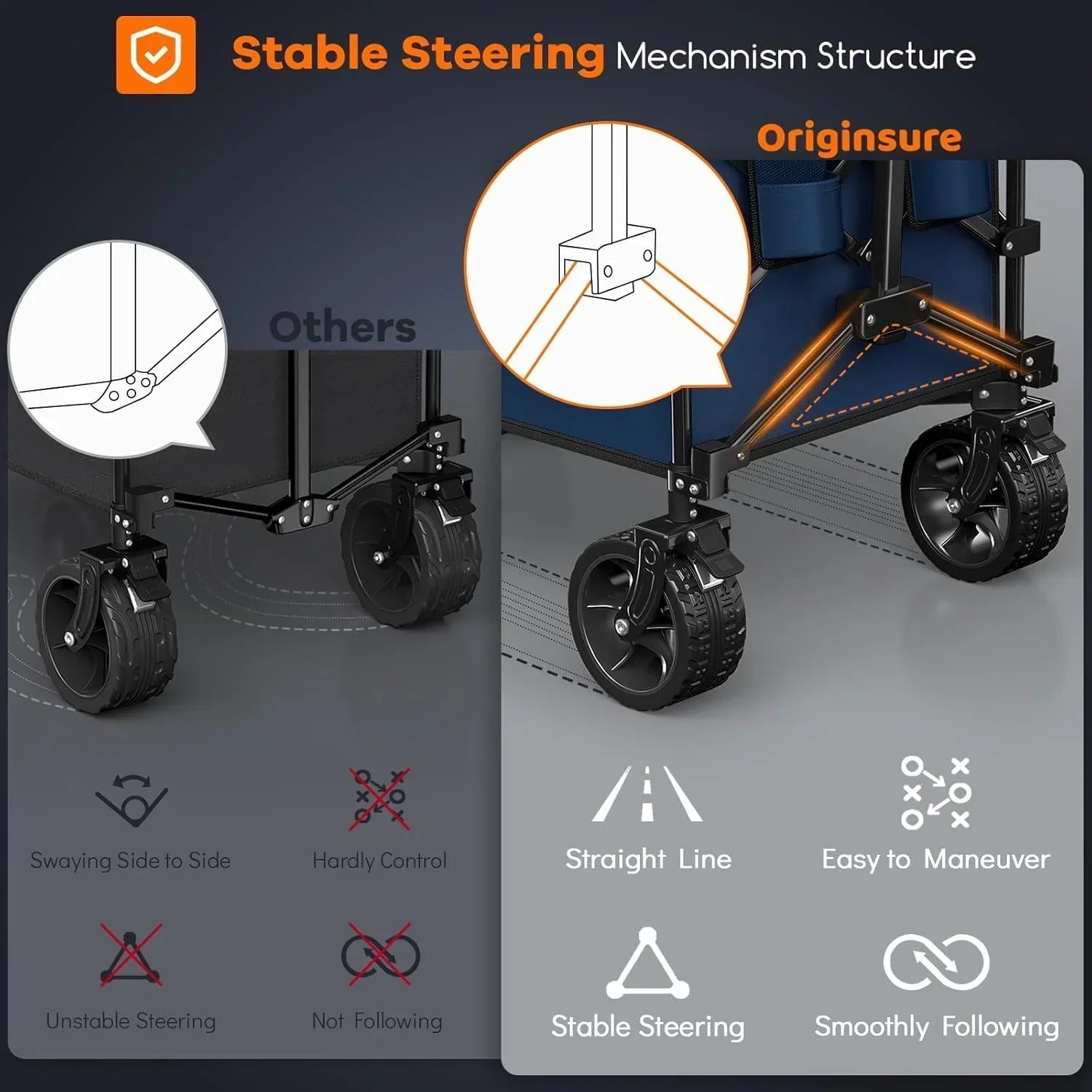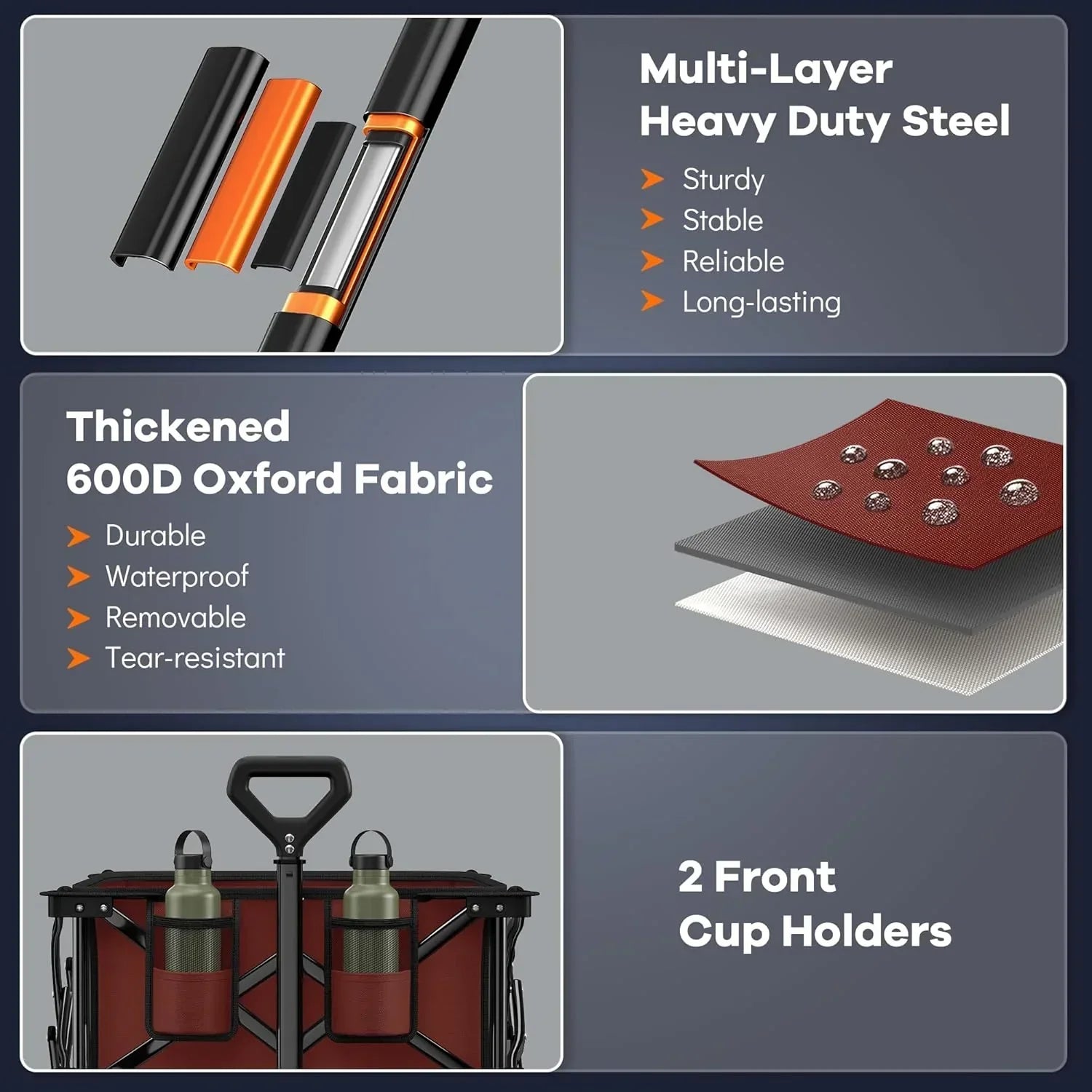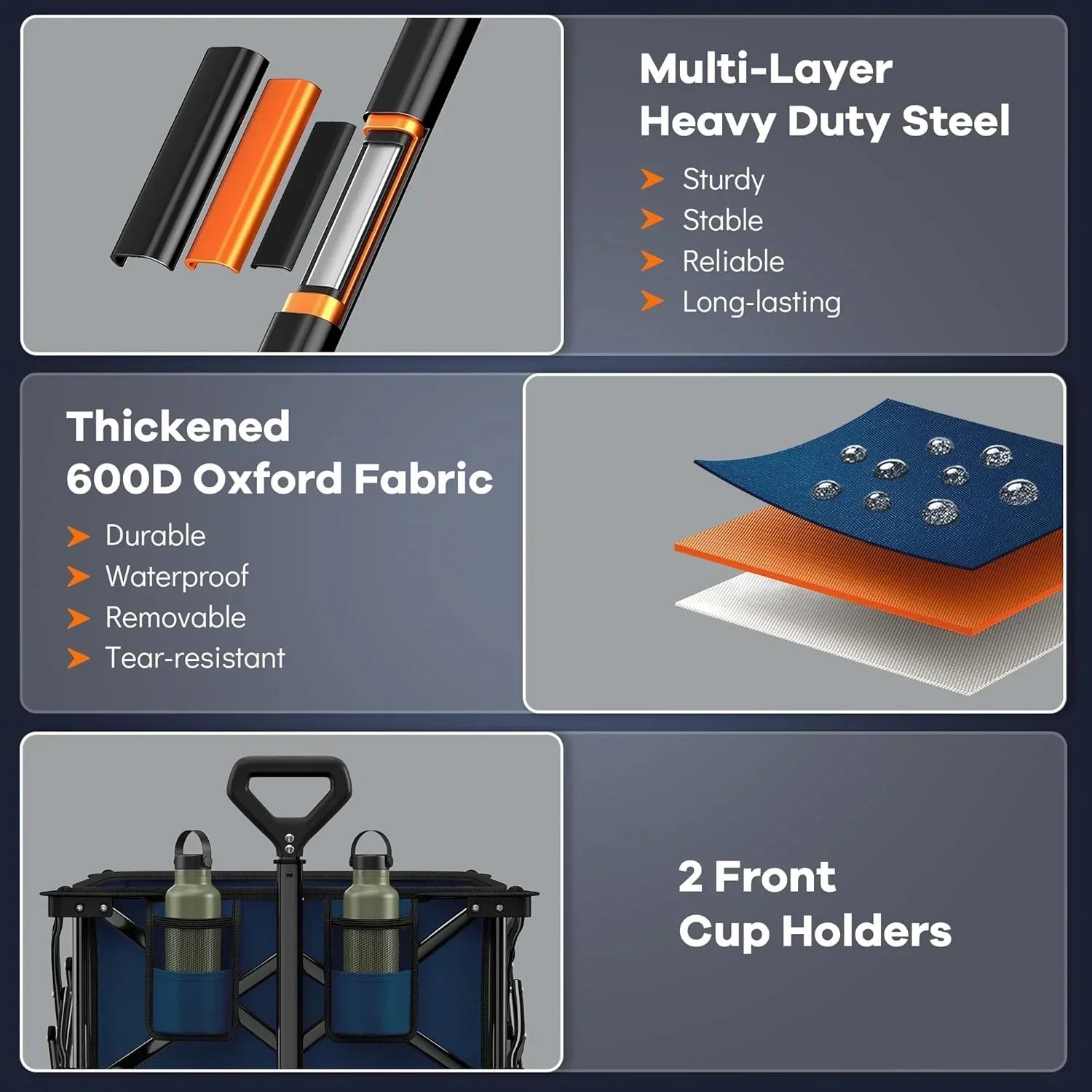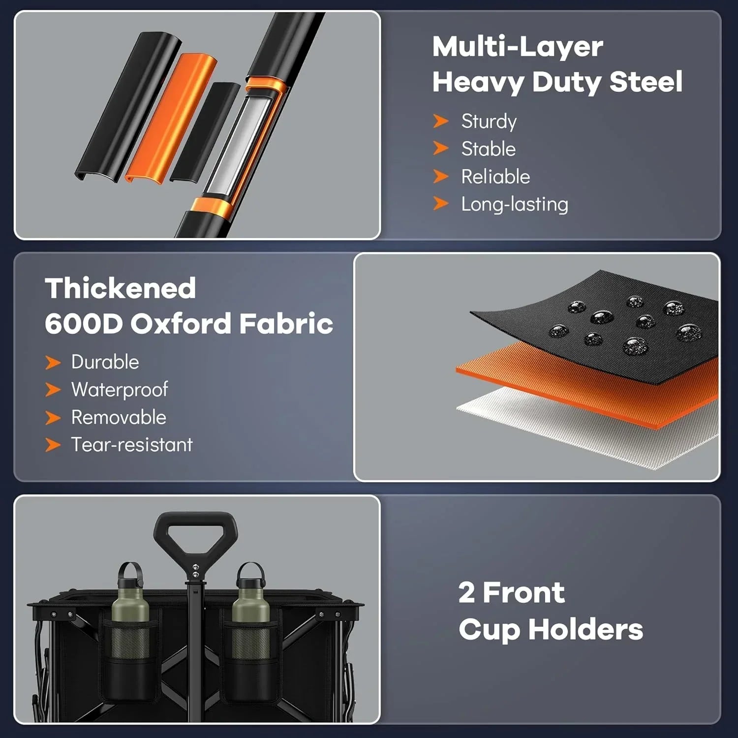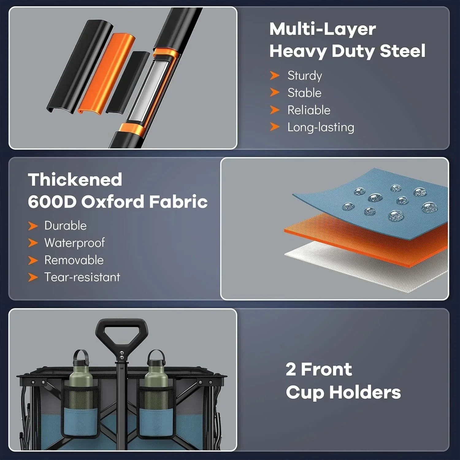 38" long foldable four-wheel stroller 460 lb capacity 220 liter folding beach stroller