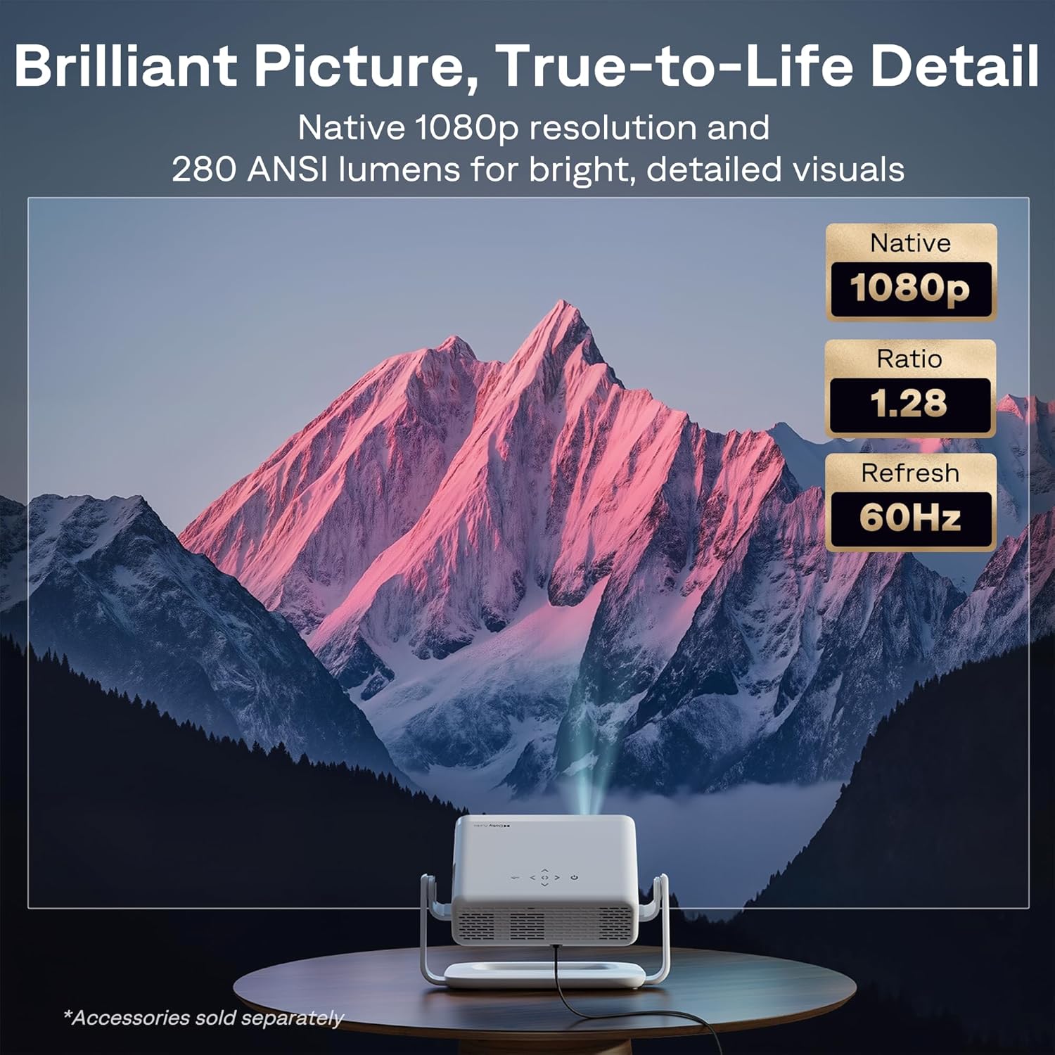 - 1080P Full HD Resolution: Enjoy your favorite movies and TV shows in stunning high-definition picture quality for enhanced clarity and detail. This projector is perfect for creating a massive 60 to 150-inch screen for your home theater and outdoor movie nights.