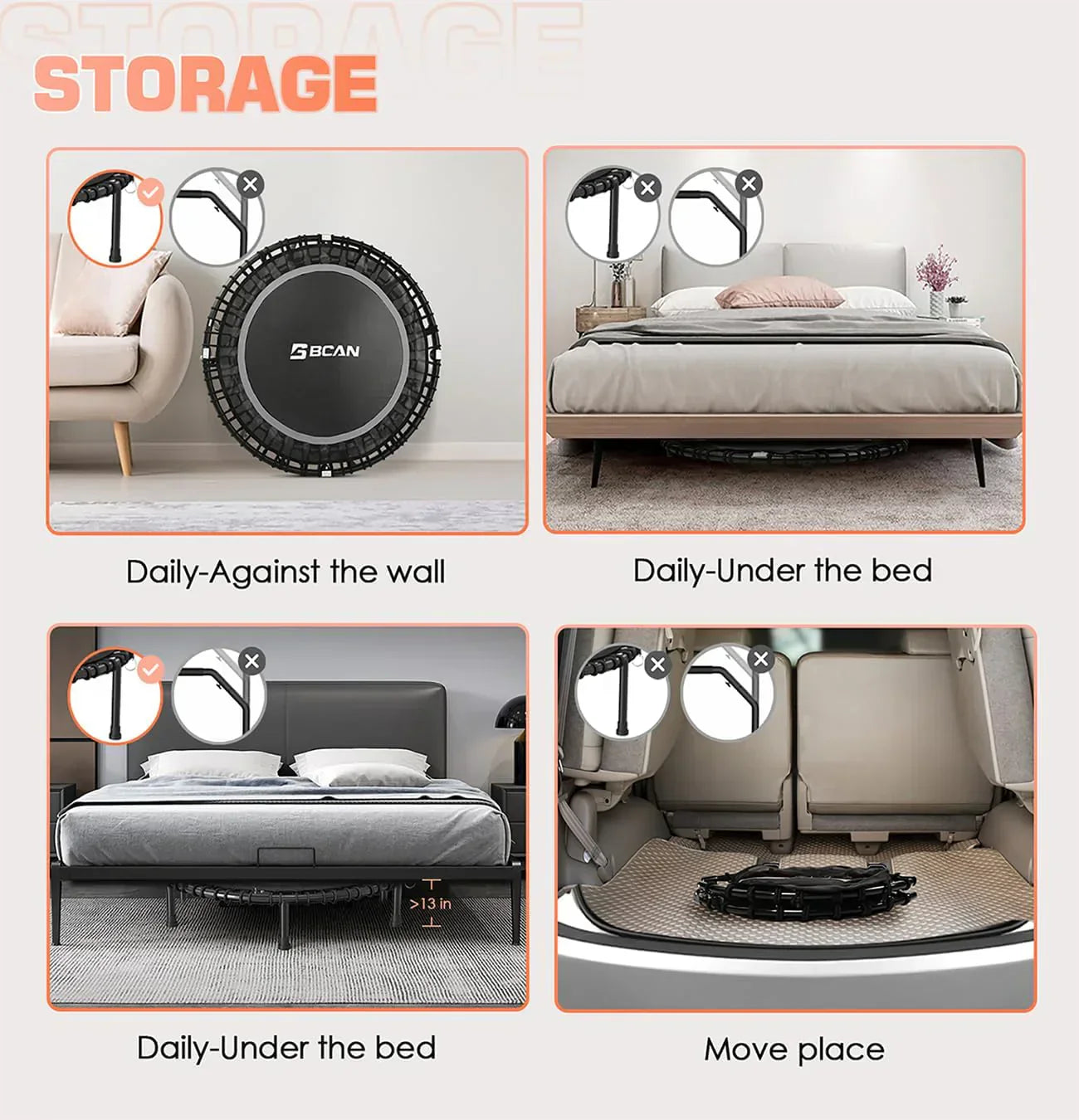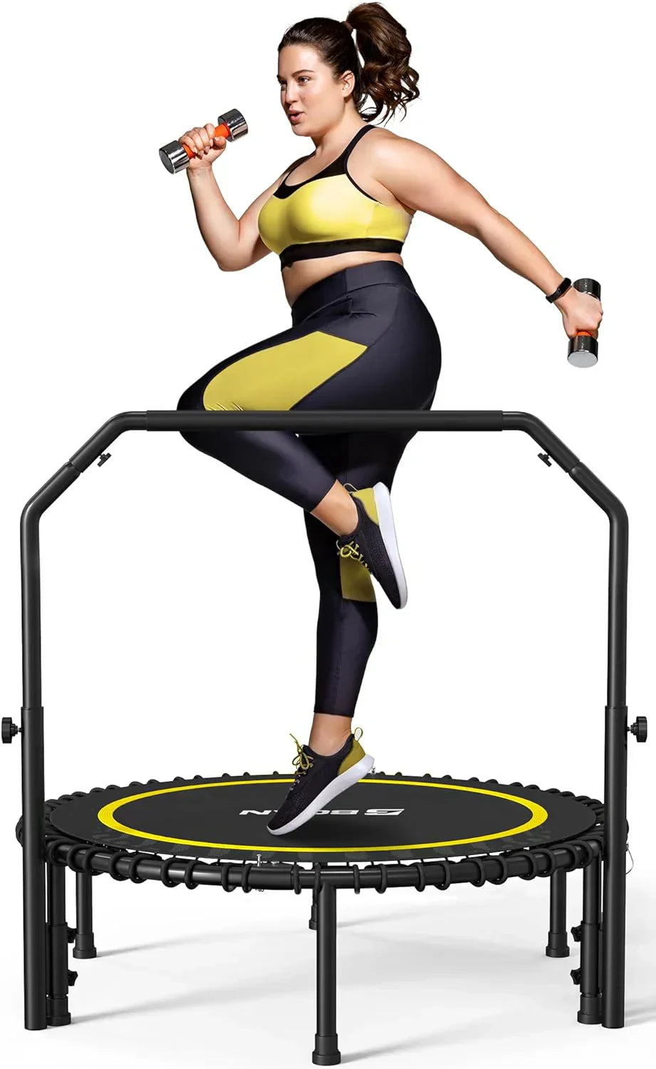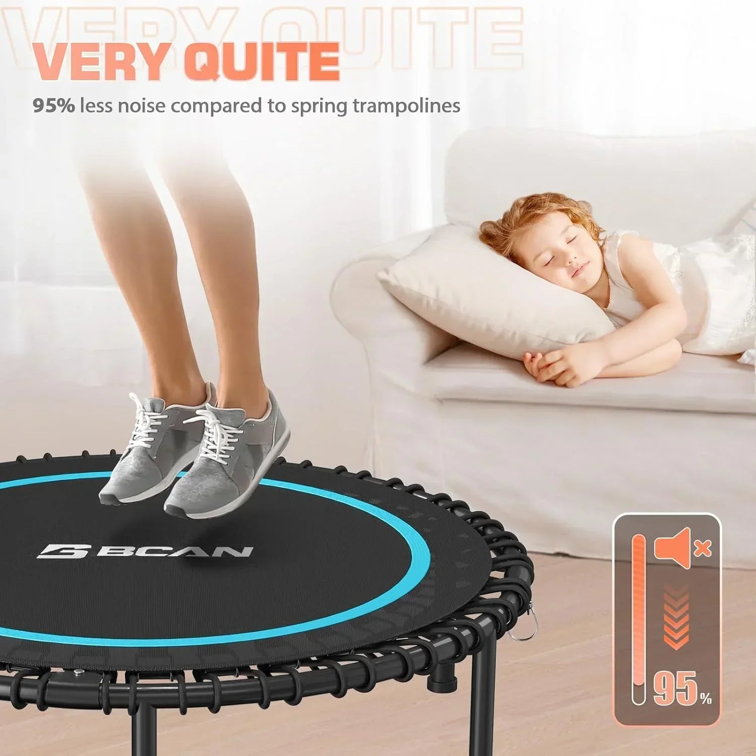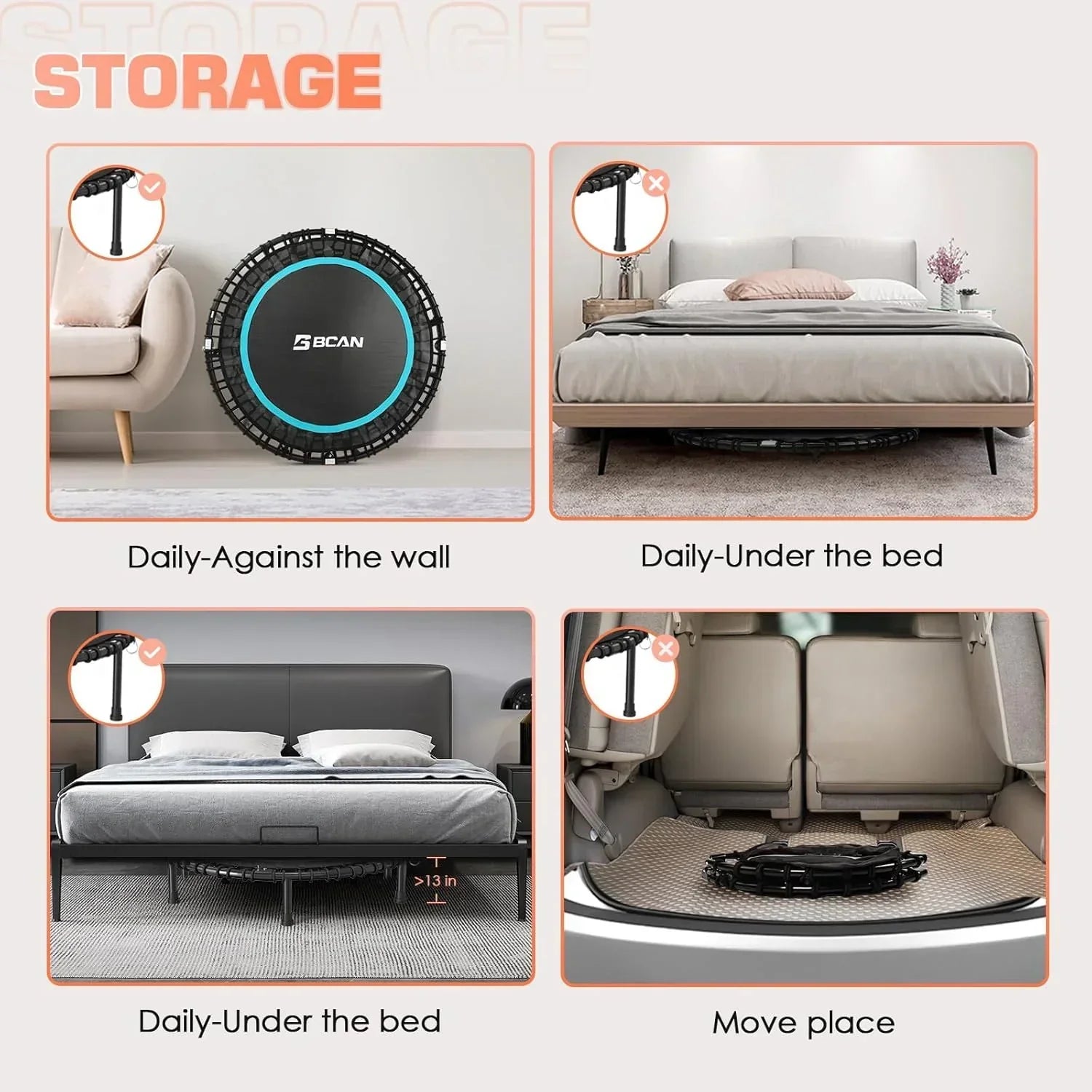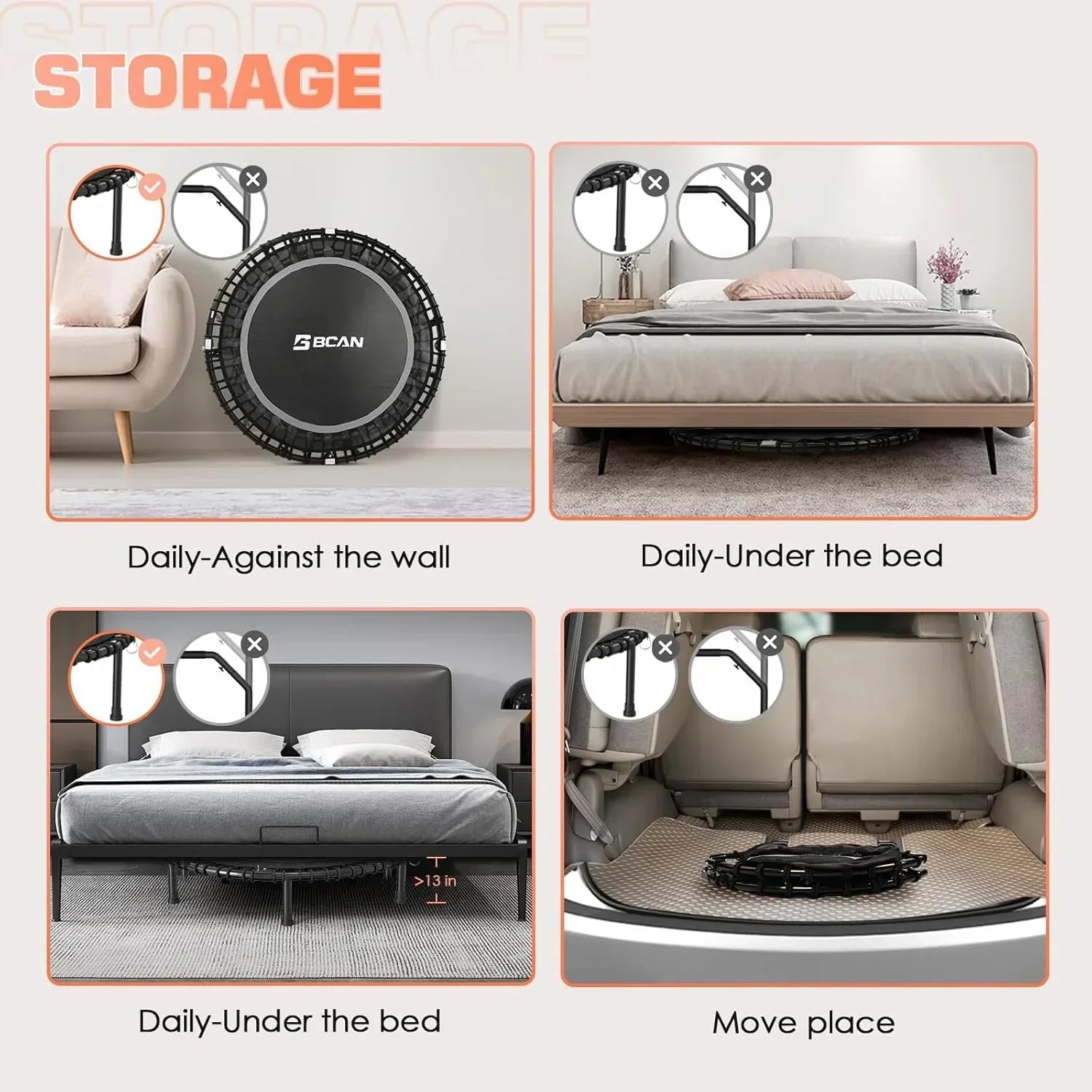 BCAN 450/550 LBS Foldable Mini Trampoline Fitness Trampoline Bungees Adjustable Foam Handle