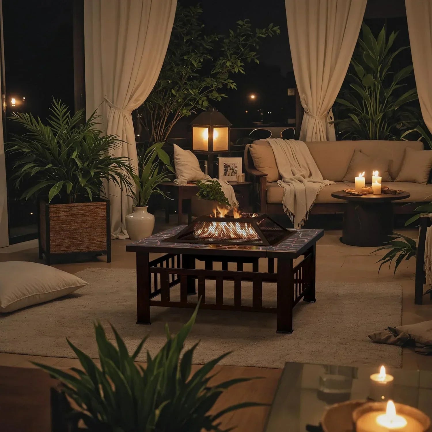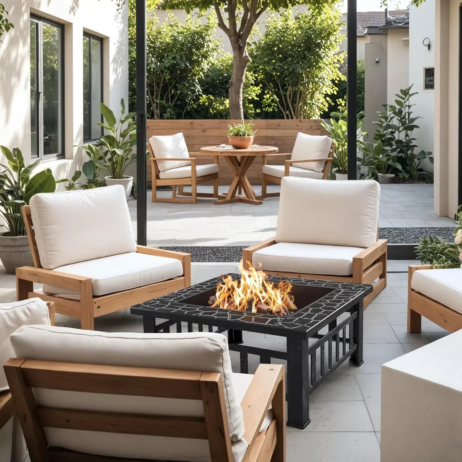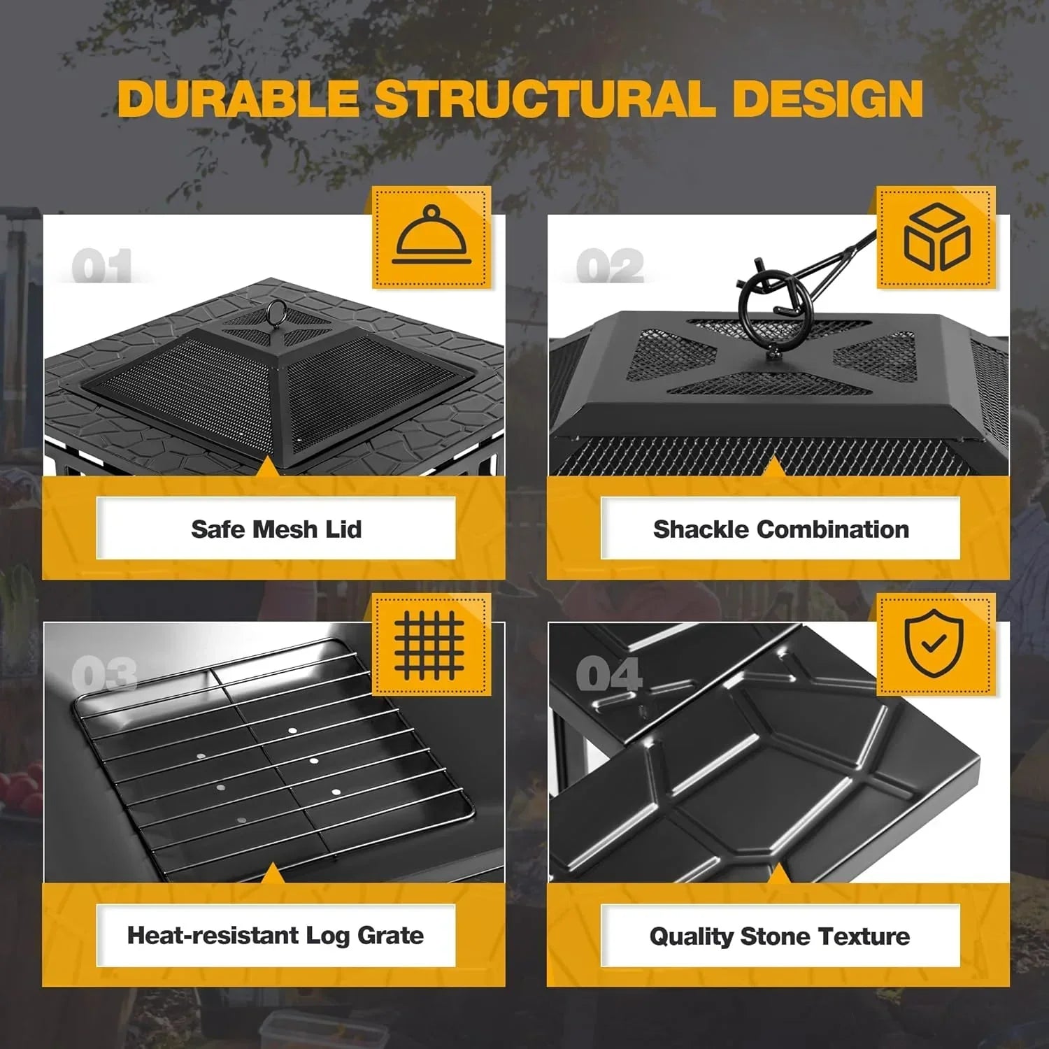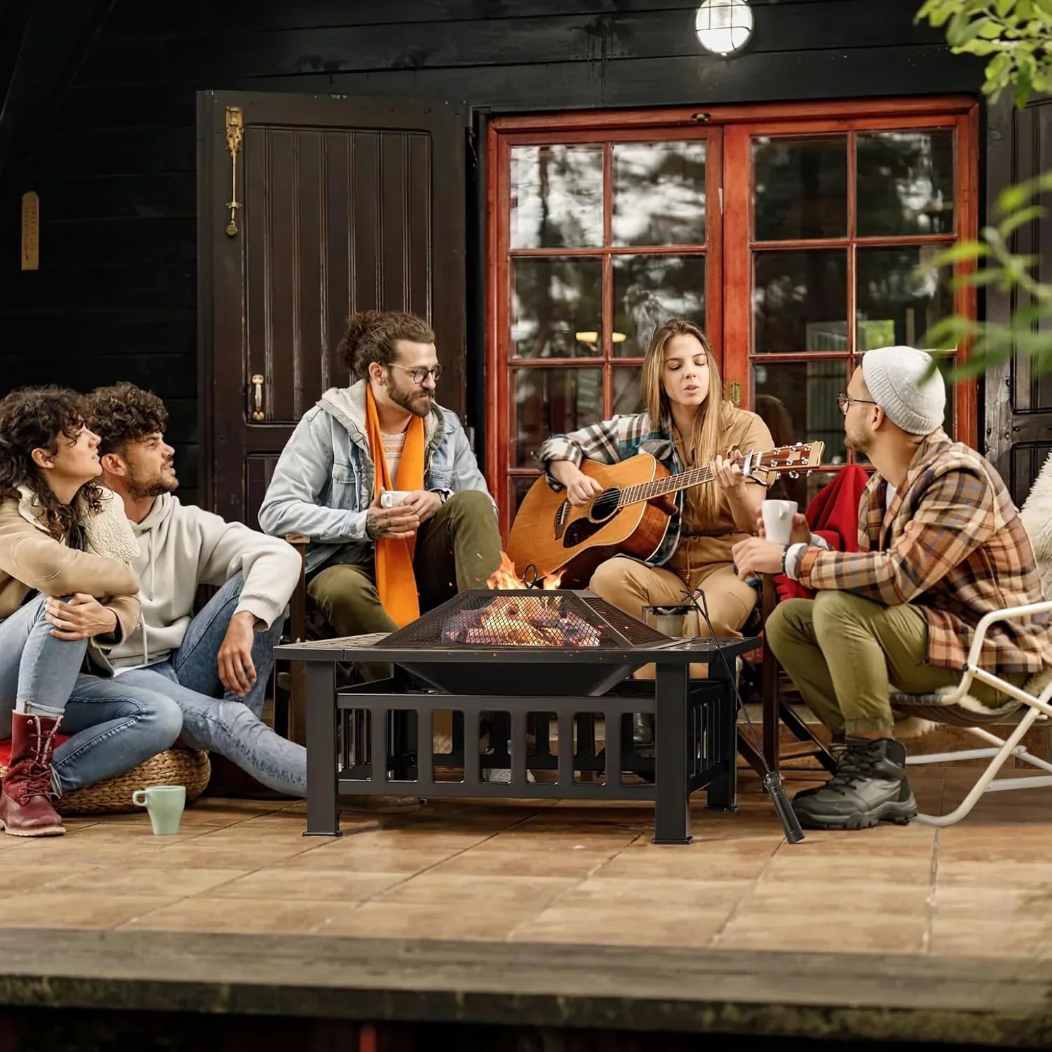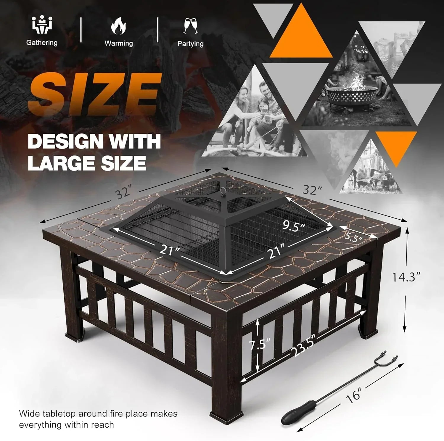 Devoko Outdoor Fire Pit 32 Inch Firepit Table Metal Outdoor Fireplaces with Waterproof Cover