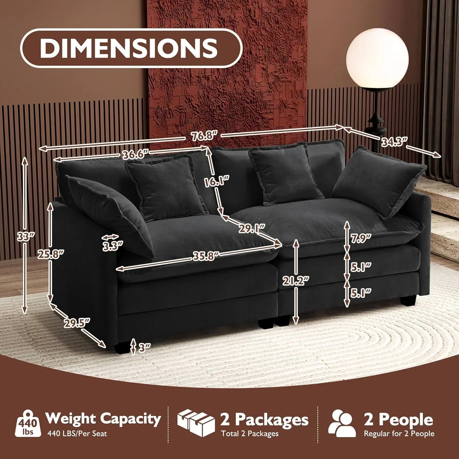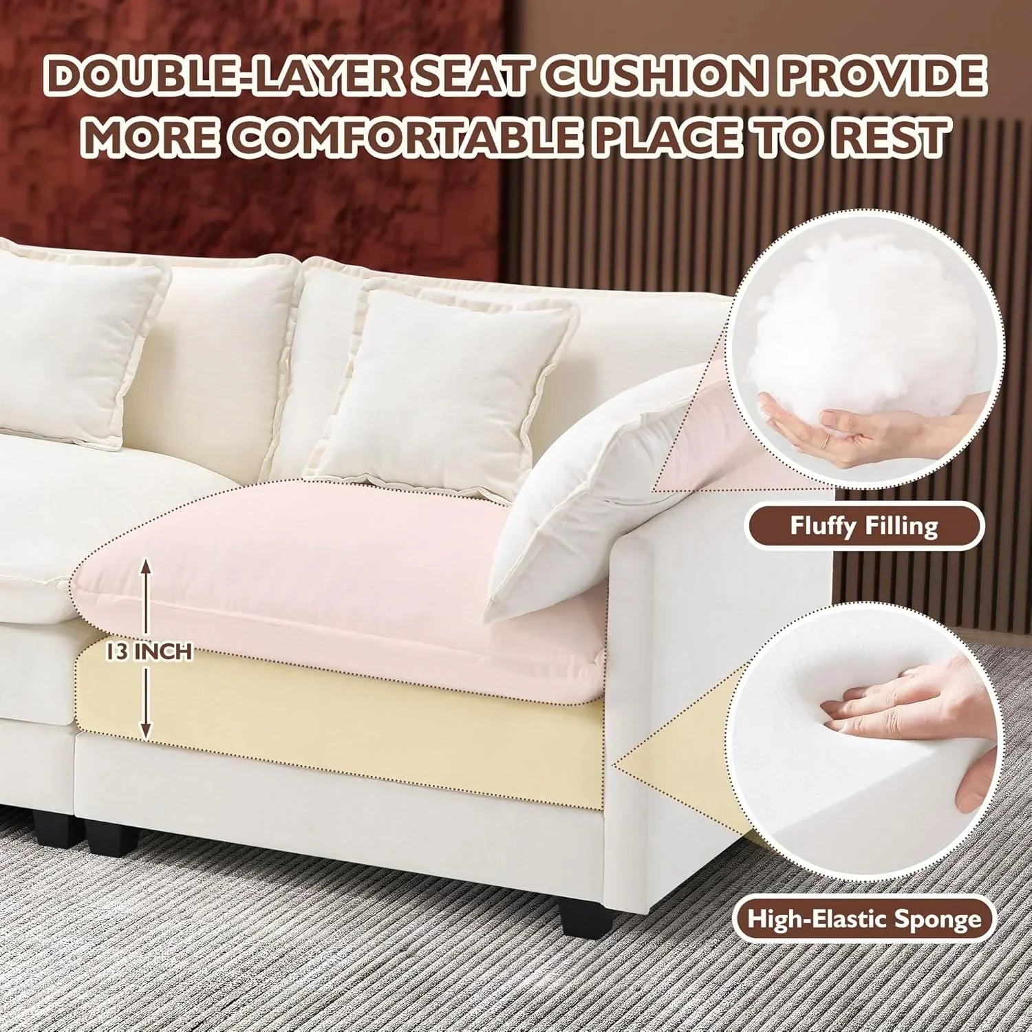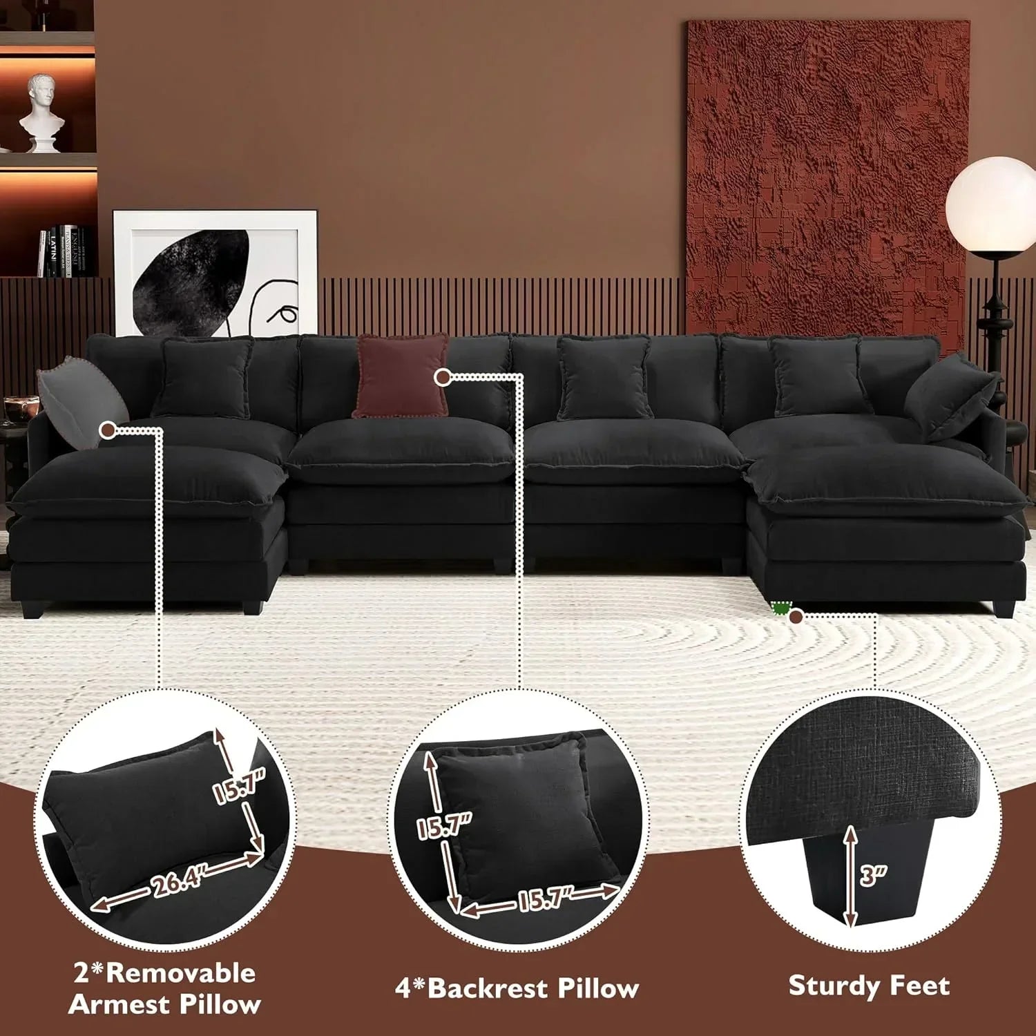 ihanherry 146-inch U-shaped modern sofa modular area cloud sofa