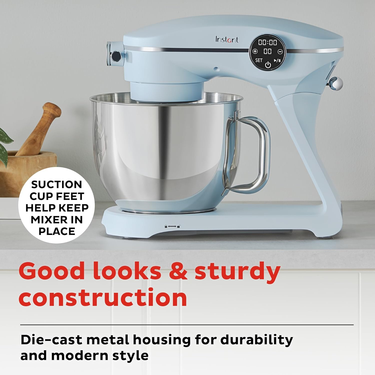 - Stable operation: suction cup feet keep mixer in place during use