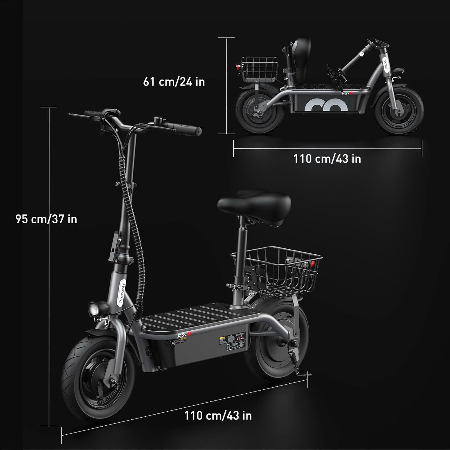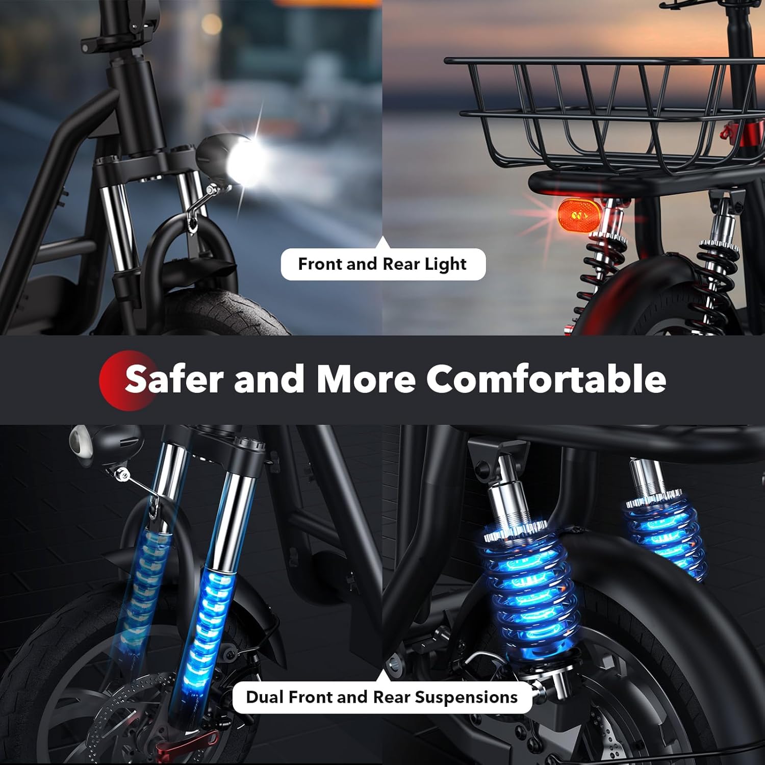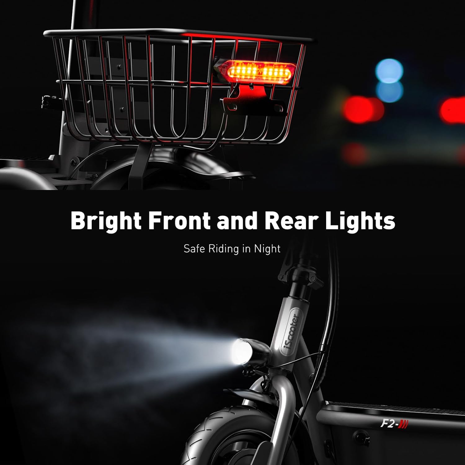 - ��Comfortable Ride and Convenient��With front and rear dual suspensions, iScooter adult electric scooter tackles rough roads with ease. It effortlessly handles 15% inclines while ensuring a smooth and comfortable ride, even on bumpy terrain. The scooter electric weighing 55 lbs features one-step folding design that makes it easily fits in your car trunk