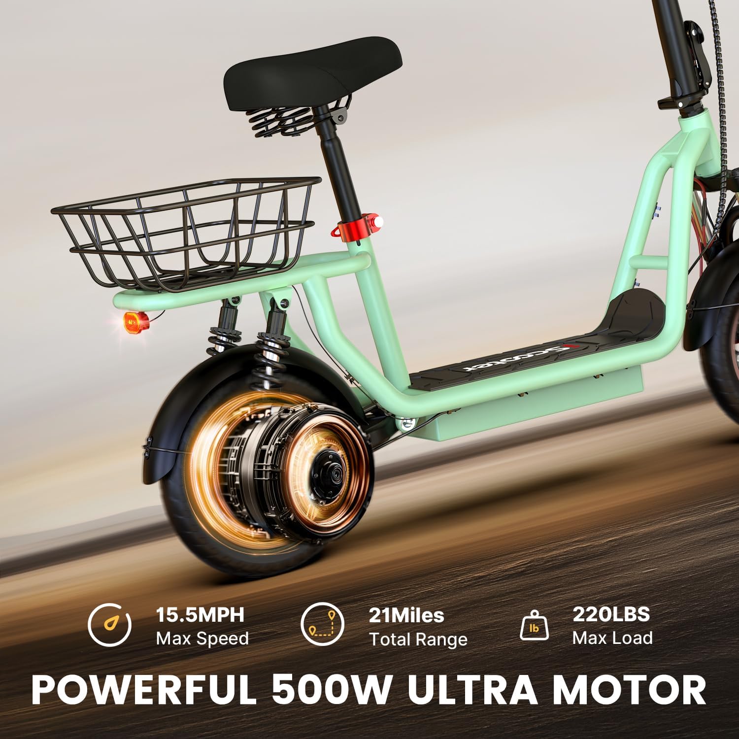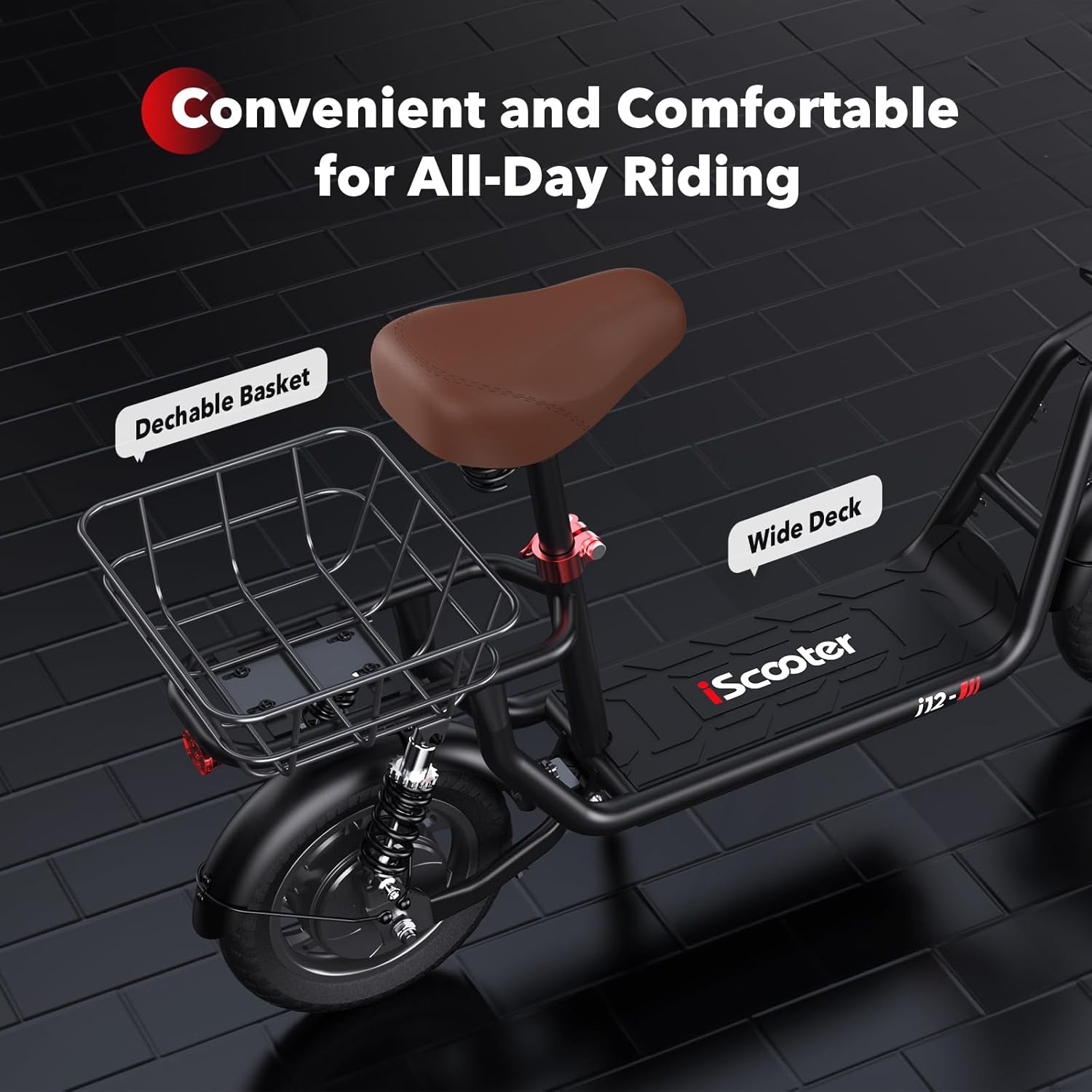 - 锟�?024 New Releases Electric Scooter��Experience the power of the iScooter i12 electric scooter with seat featuring a robust 500W motor and 12" pneumatic tires, scooter for adults zooms at speeds up to 15.6 mph,equipped with an adjustable seat to accommodate riders of all heights. Its sturdy metal construction supports a maximum weight of 264lbs