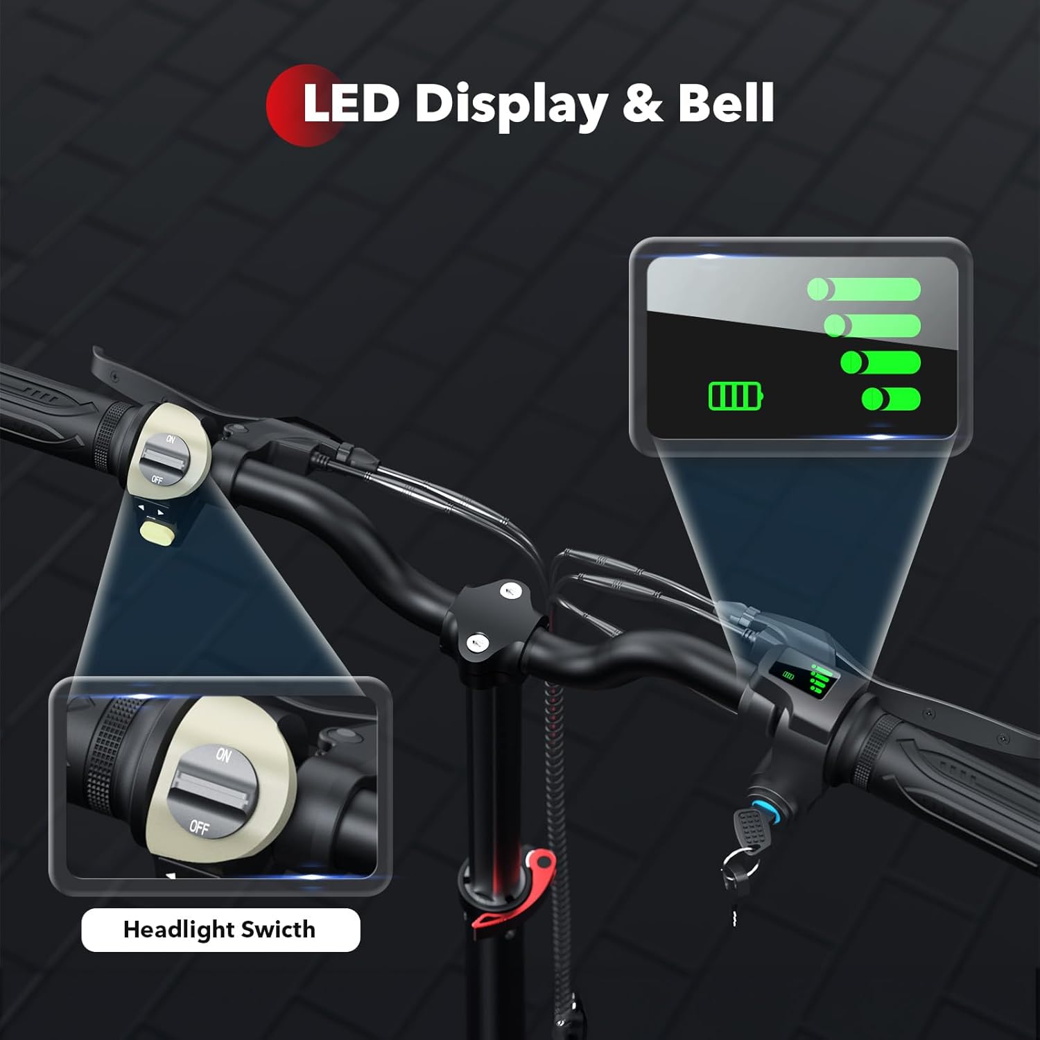 - ��Safe to Ride��The electric scooter for adults boasts an electric lock, warning taillights, and ultra-bright headlights for enhanced visibility during night rides. The dual disc brake system provides excellent stability and control to ensure safe riding, its perfect for city commuting, campus travel, and office commutes. It is certified to UL2272