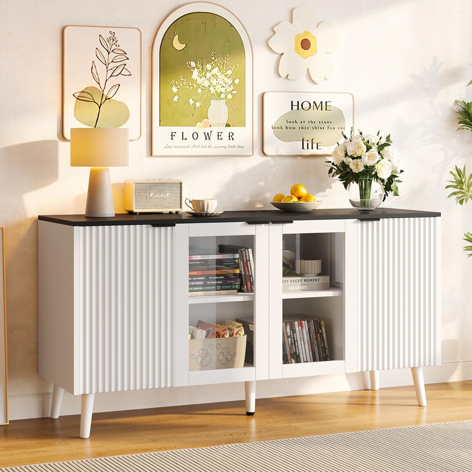 This rattan storage cabinet can be use as a buffet sideboard, Coffee bar cabinet, Bedroom storage cabinet, TV stand, Entryway console table, Dining room storage cabinet, etc.