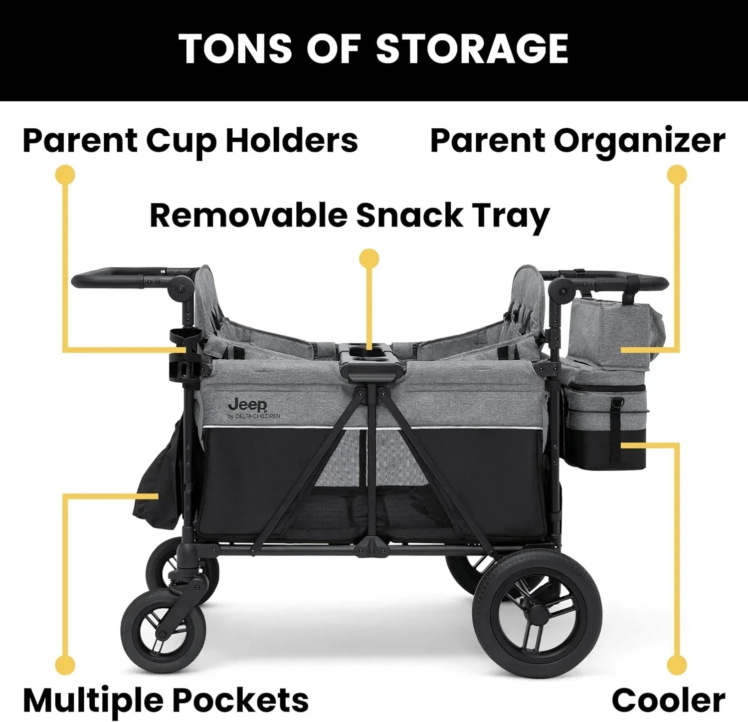 Jeep Wrangler Deluxe 4 Seater Stroller Wagon by Delta Children Premium Quad Stroller Wagon