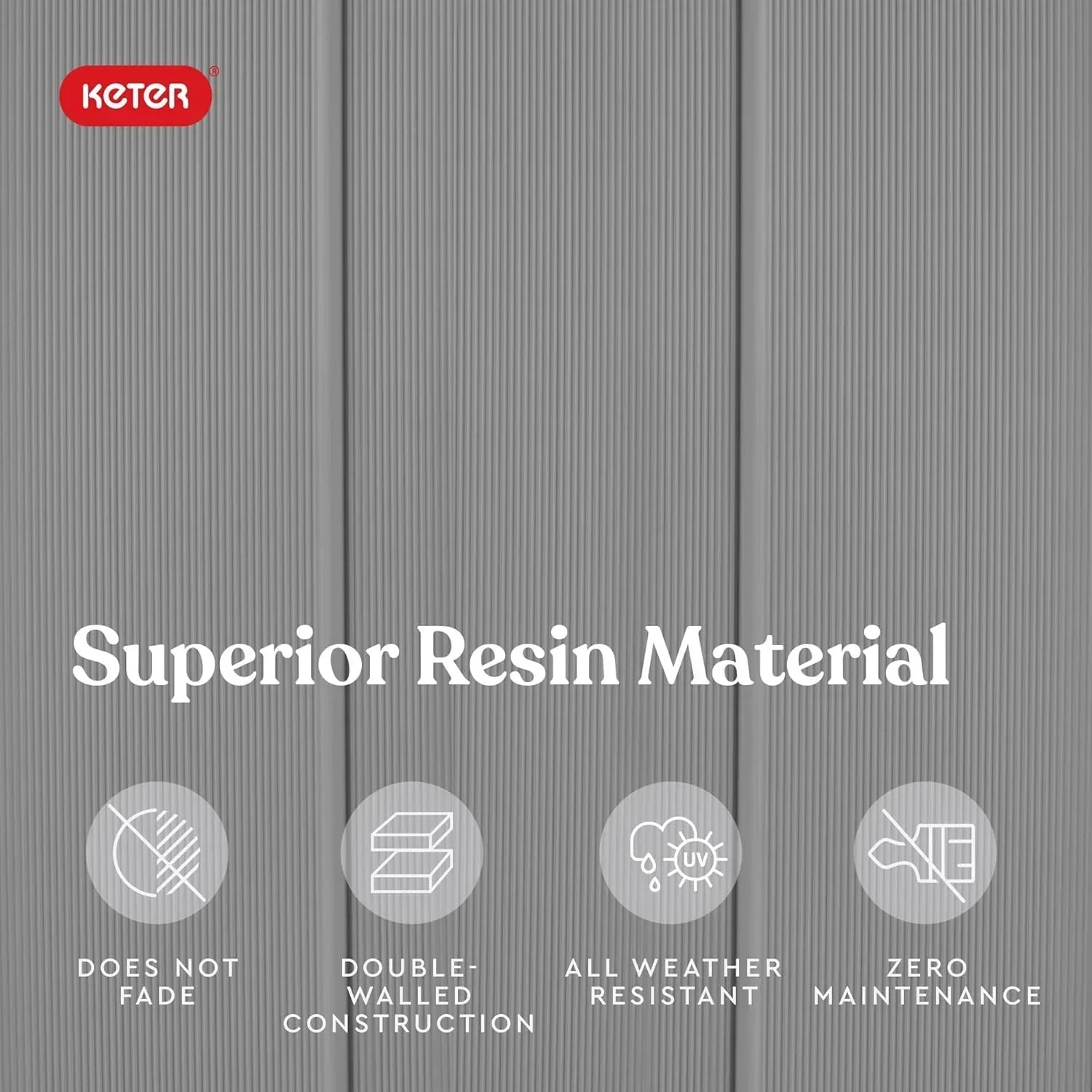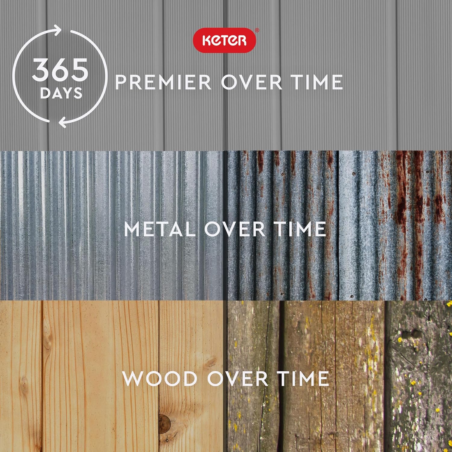 • Keter Premier Tall 4.6 x 5.6 ft. Resin Outdoor Storage Shed with Shelving Brackets Patio Furniture