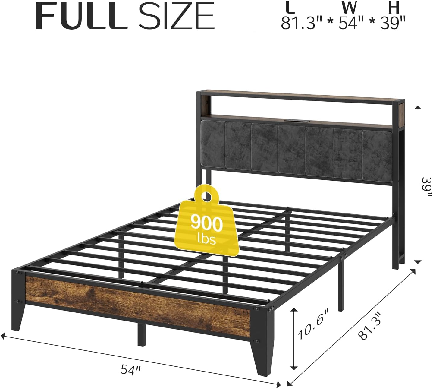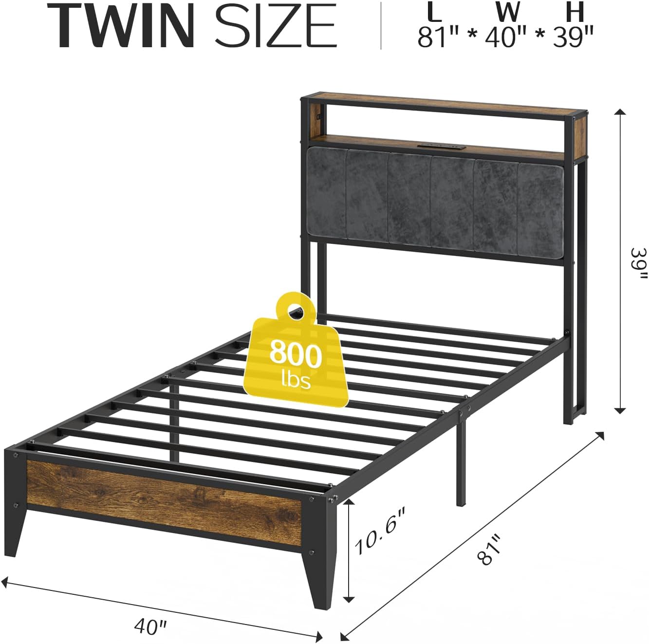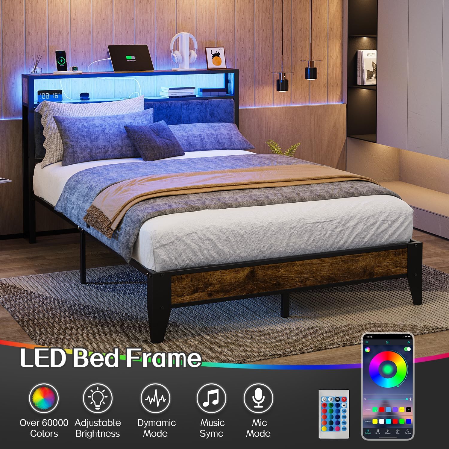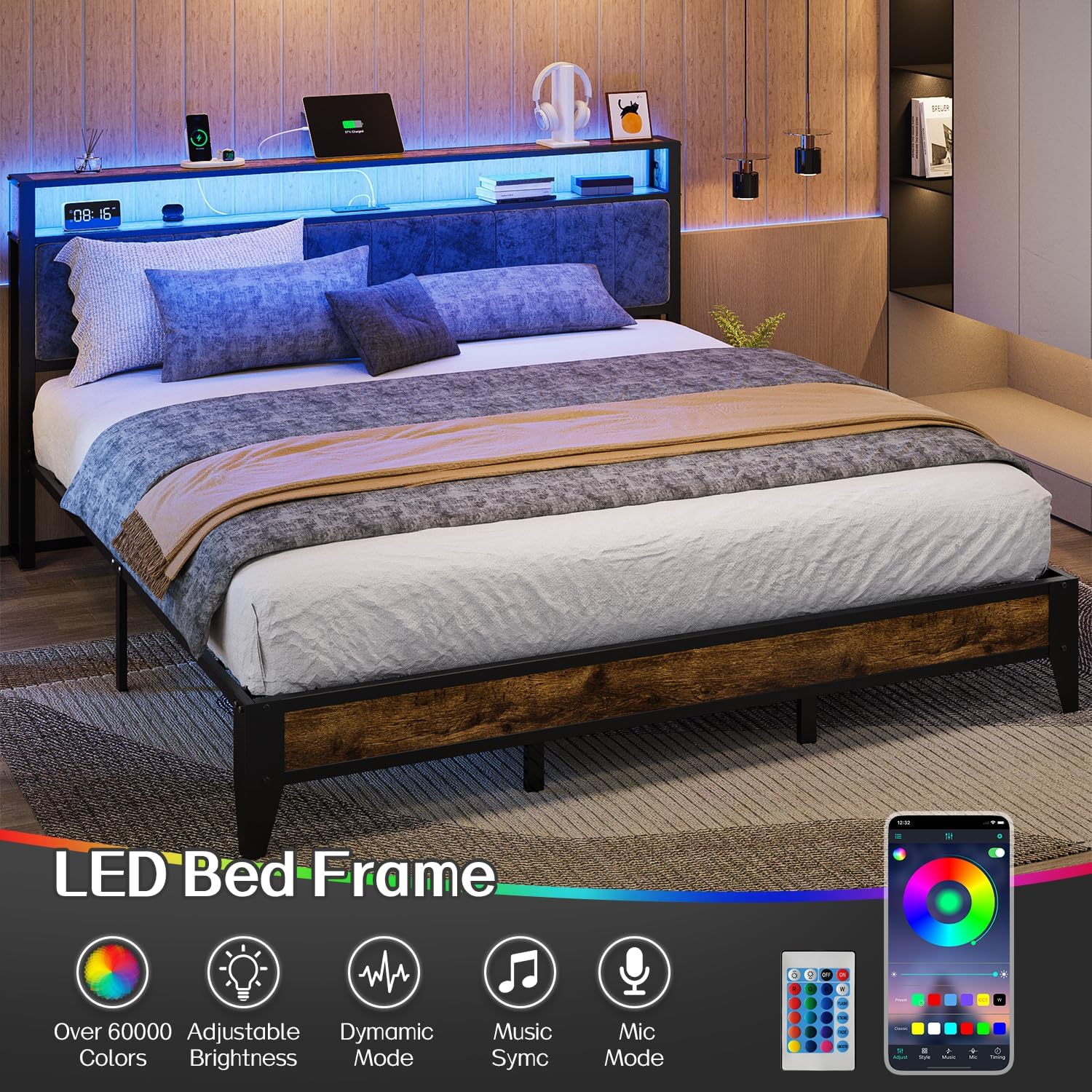 OLEVS Single Bed Frame LED Light Storage Headboard Charging Station Metal Platform Bed
