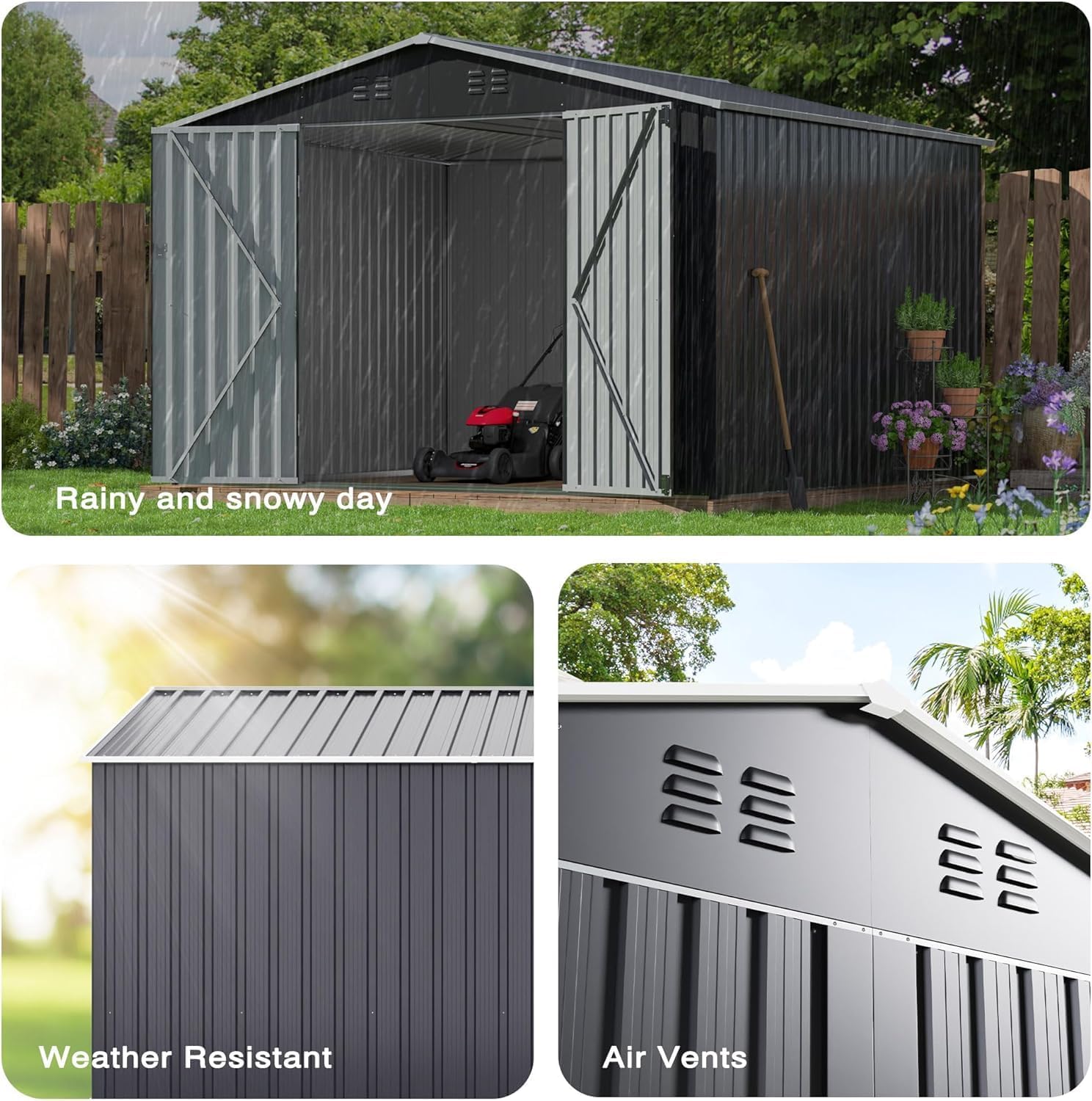 锟斤拷Durability Through Quality Materials锟斤拷Crafted with superior, resilient metal, the Polar Aurora shed provides robust weatherproof protection, ready to withstand the elements with waterproof and UV-resistant features.