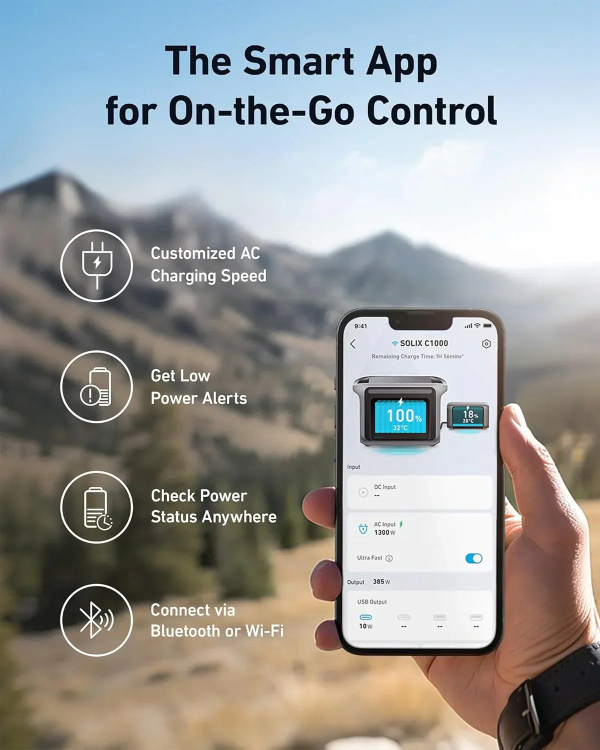 Experience reliable, high-capacity power anywhere with this Portable Power Station. Delivering 1800W continuous power and 2400W peak output, it supports a wide range of devices. Its advanced 1056Wh LiFePO4 battery ensures long-lasting performance and safety. Fully recharge in just 58 minutes, minimizing downtime and keeping you powered on the go. Ideal for outdoor adventures, emergencies, or remote work, this solar generator combines efficiency and convenience in a compact design. Stay energized wherever life takes you.
