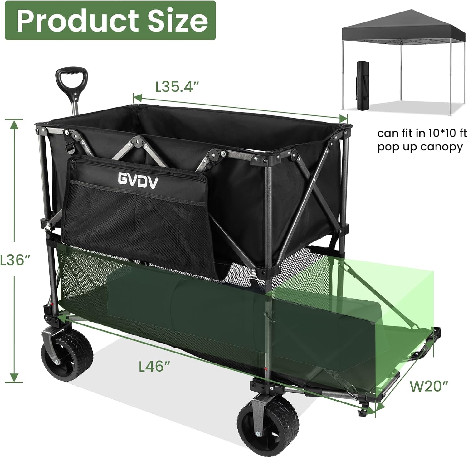 Double Decker Wagon Heavy Duty Collapsible, 600LBS 400L Capacity Foldable Utility Cart with Big Wheels