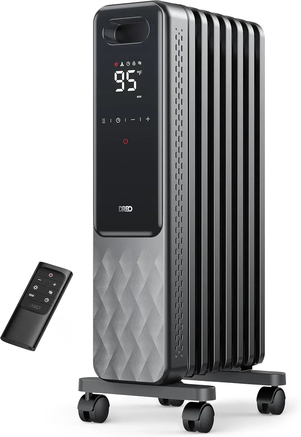 Indoor electric radiant heater with overheat and tip-over protection, digital thermostat, oil-filled radiator