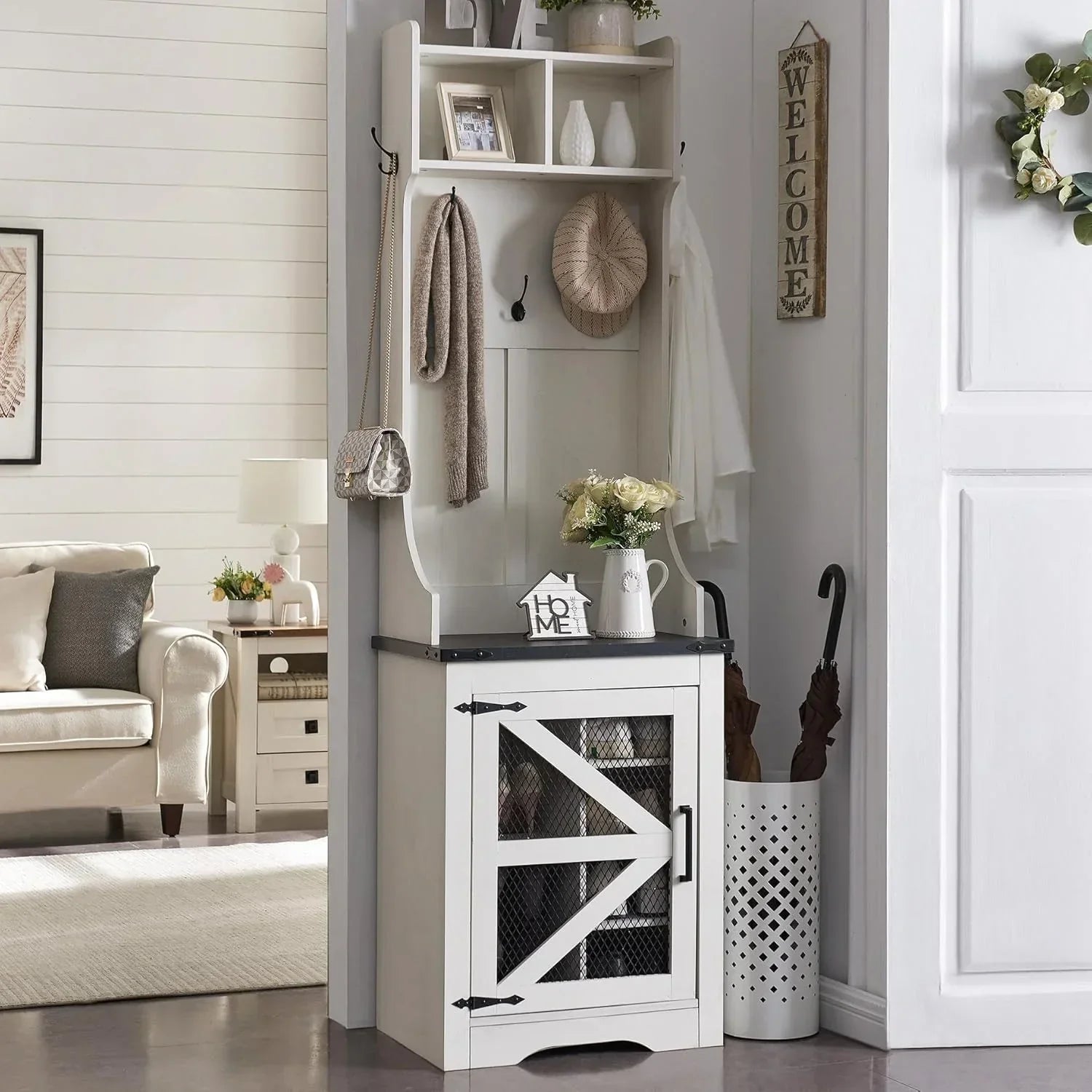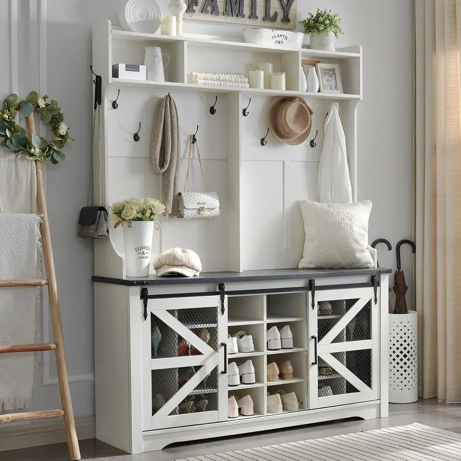 JXQTLINGMU 59-inch Farmhouse Foyer Tree Shoe Storage Entryway Bench Foyer Coat Rack Cabinet