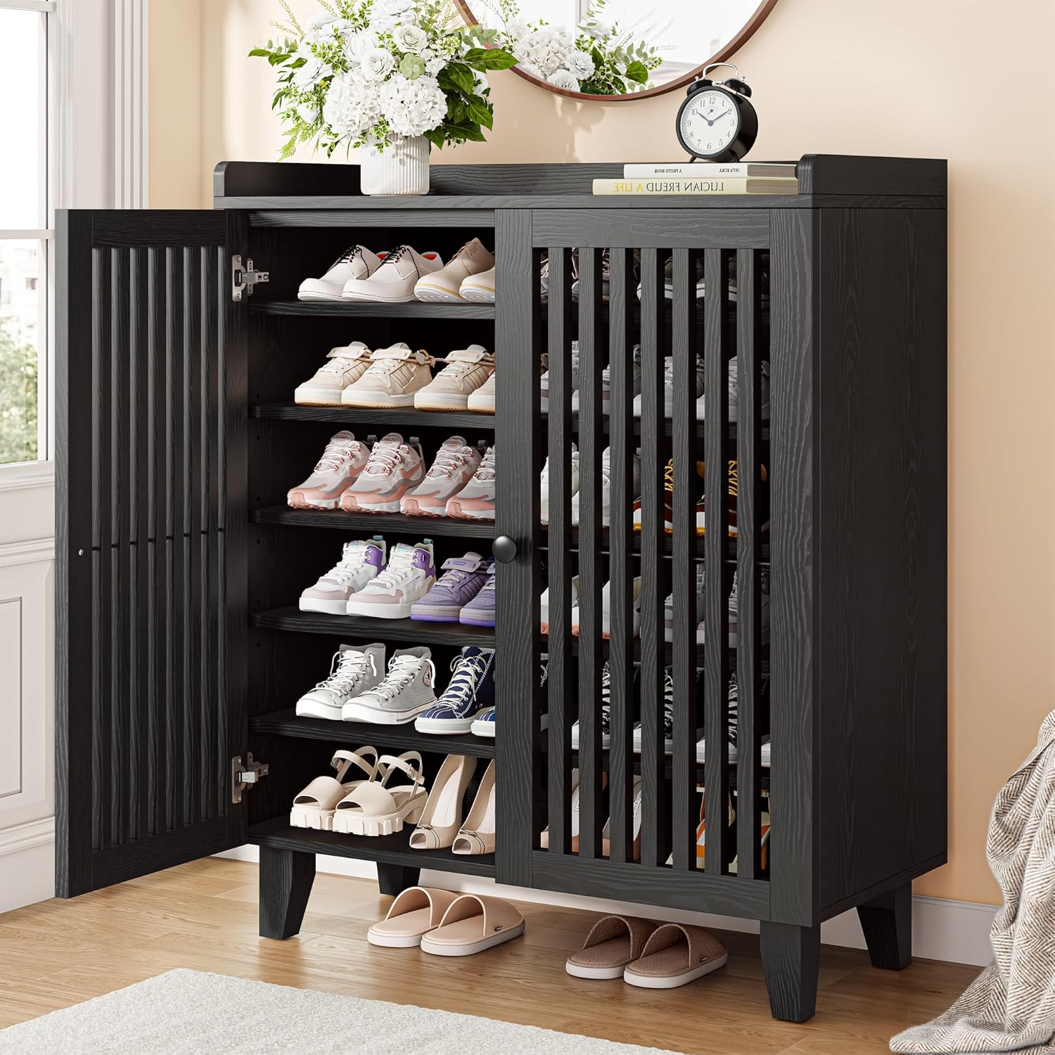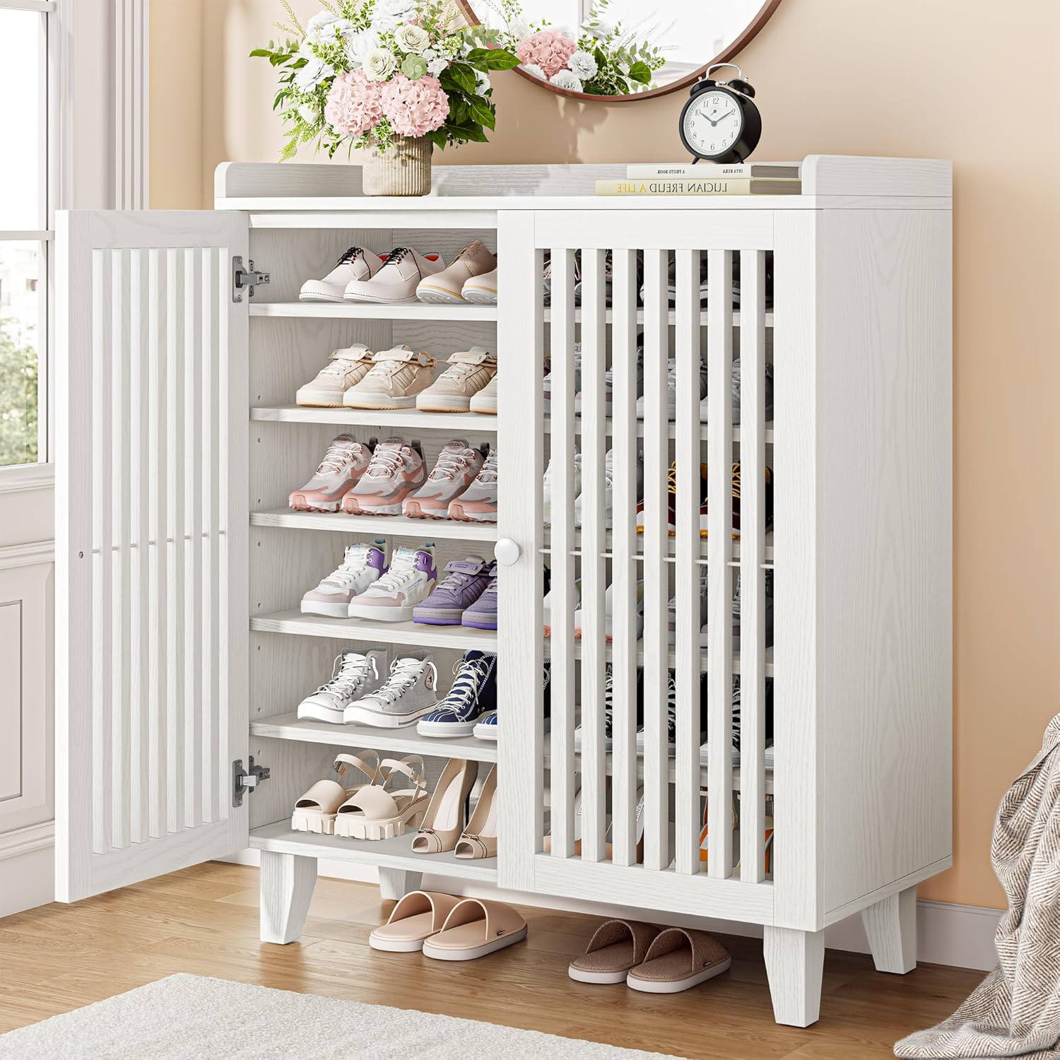 IRONCK Shoe Cabinet with Slatted Doors, 6-Tier Shoe Storage Cabinet