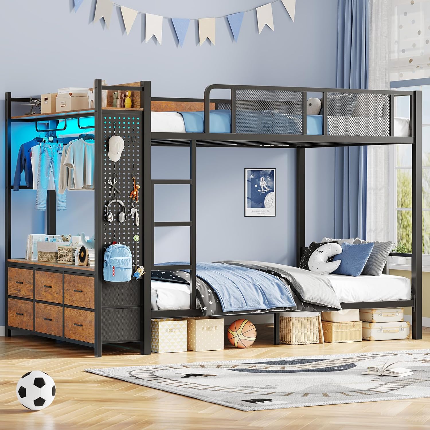 Jocoevol Metal Bunk Bed Twin Over Twin Industrial Bunkbeds Heavy Duty Bed Safety Guard Rails
