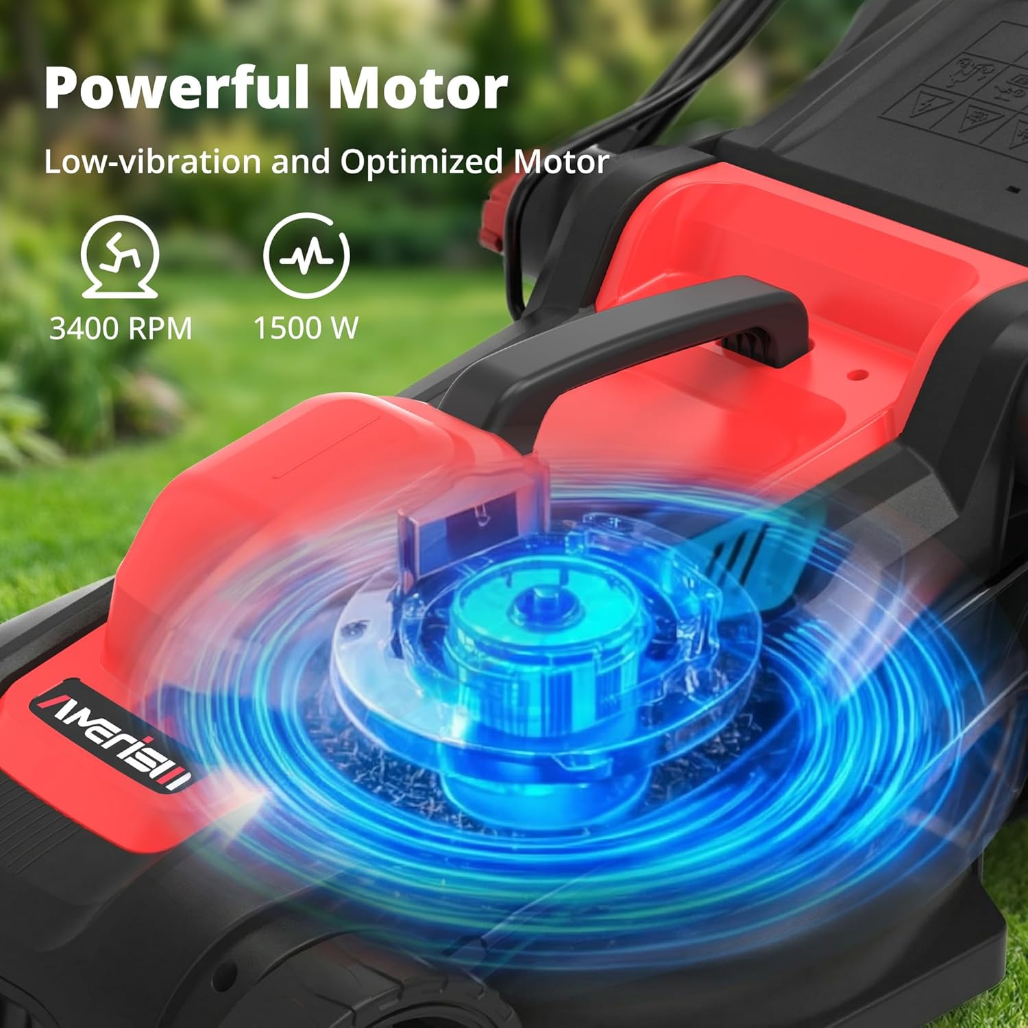 - HIGH-POWERED 12.5AMP CORDED ELECTRIC LAWN MOWER - The AMERISUN 14-inch electric lawn mower is equipped with a 12.5 Amp (1500W) motor delivering up to 3400 RPM for steady, reliable cutting performance. This corded electric push mower provides gas-free power with no fumes, no oil, and no engine upkeep—ideal for homeowners maintaining small to medium lawns.