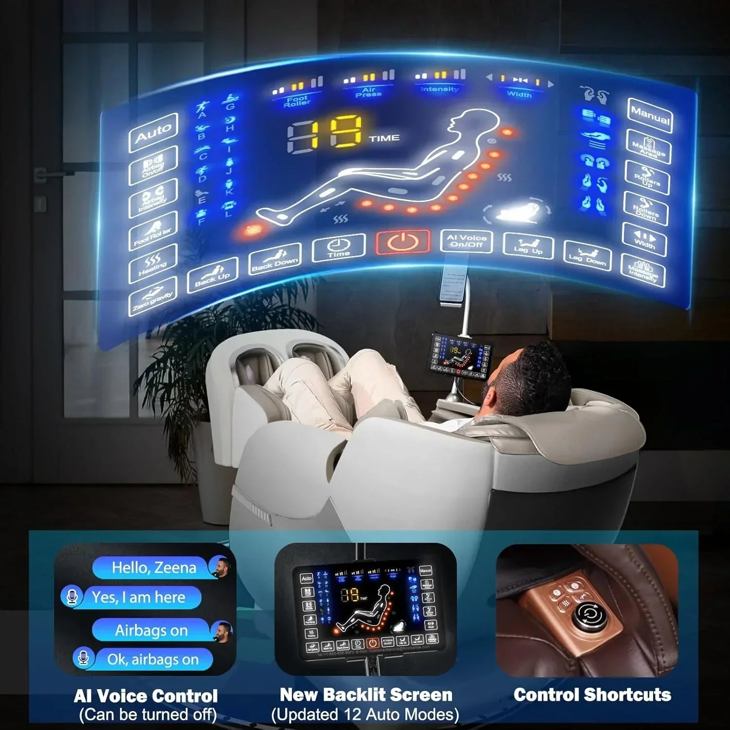 Enjoy 5 Auto modes and 8 Manual modes with 7 massage techniques combined