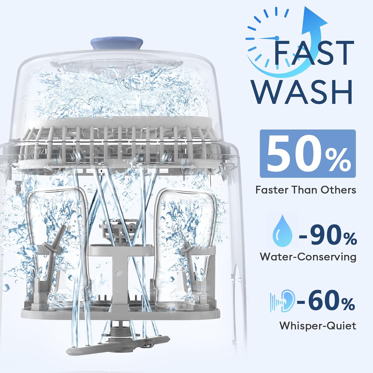 Baby Bottle Washer-19 Min Rapid Wash, Sterilizer and Dryer, All-in-One Cleaner, Bottles, Pump Parts & Baby Essentials