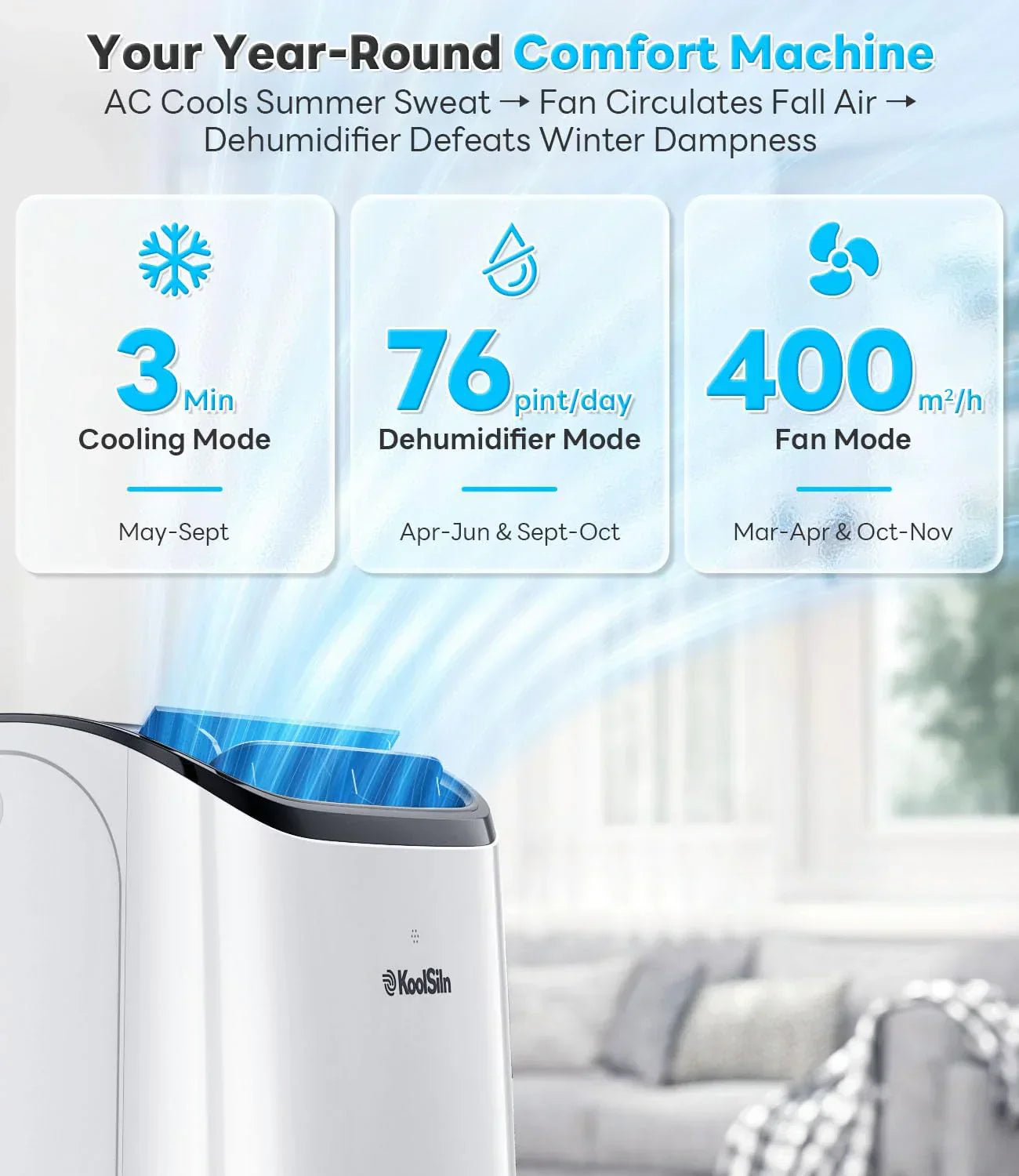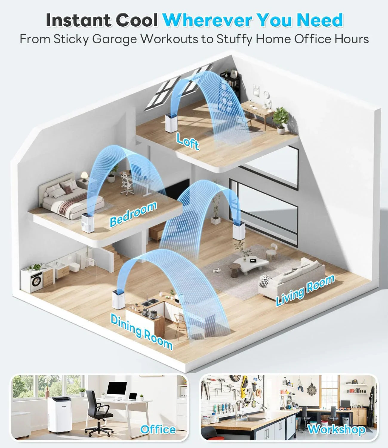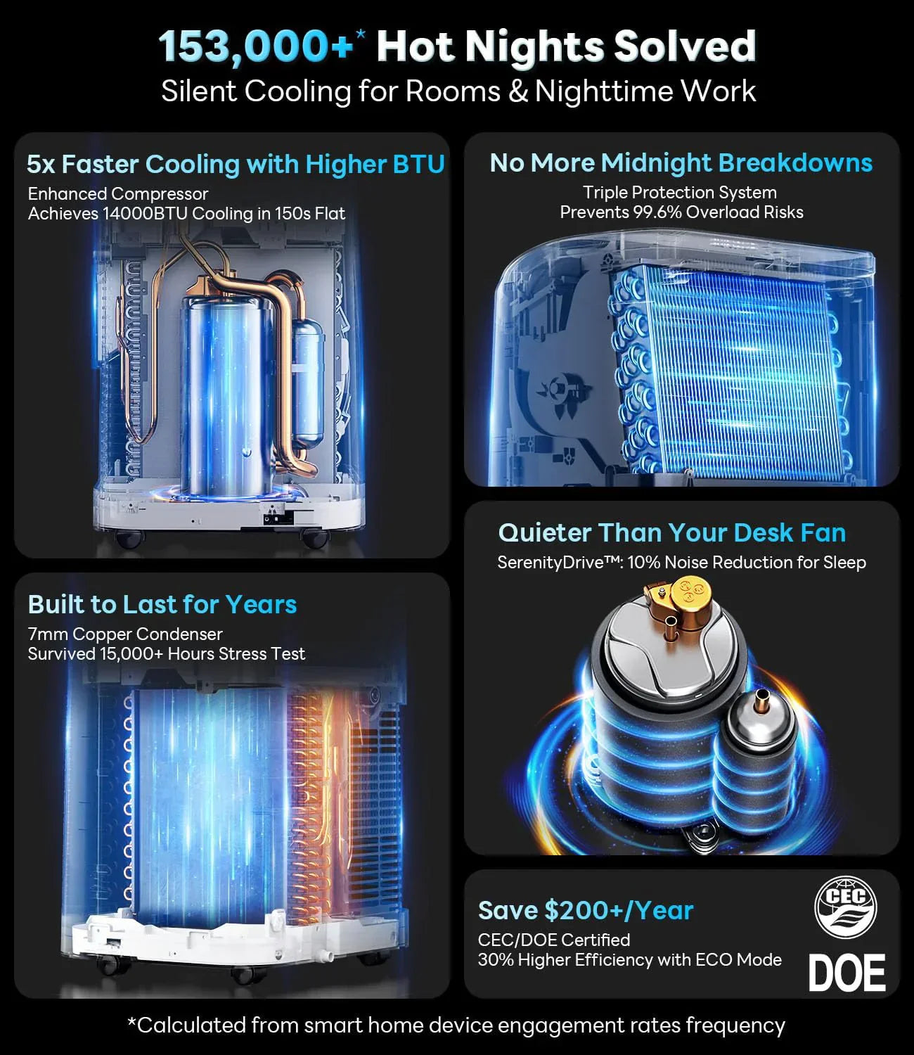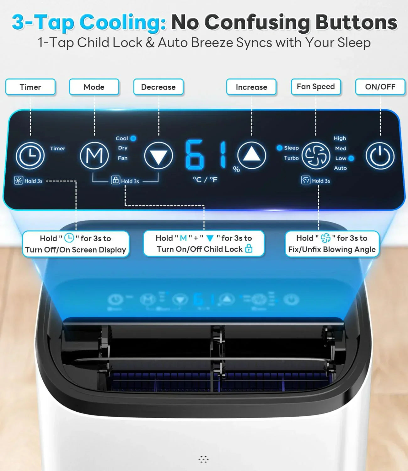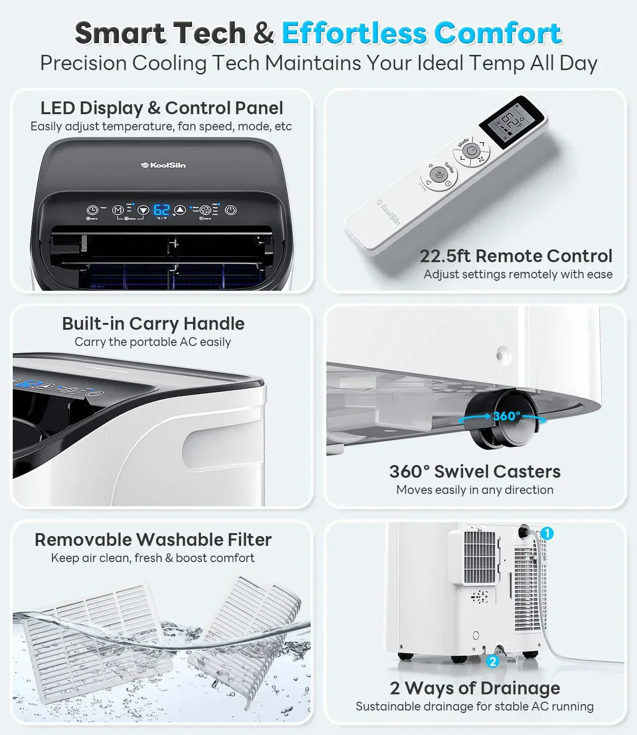 14,000 BTU Portable Air Conditioner Cools Up to 700 Sq.Ft Auto-Evaporation Low Noise Portable