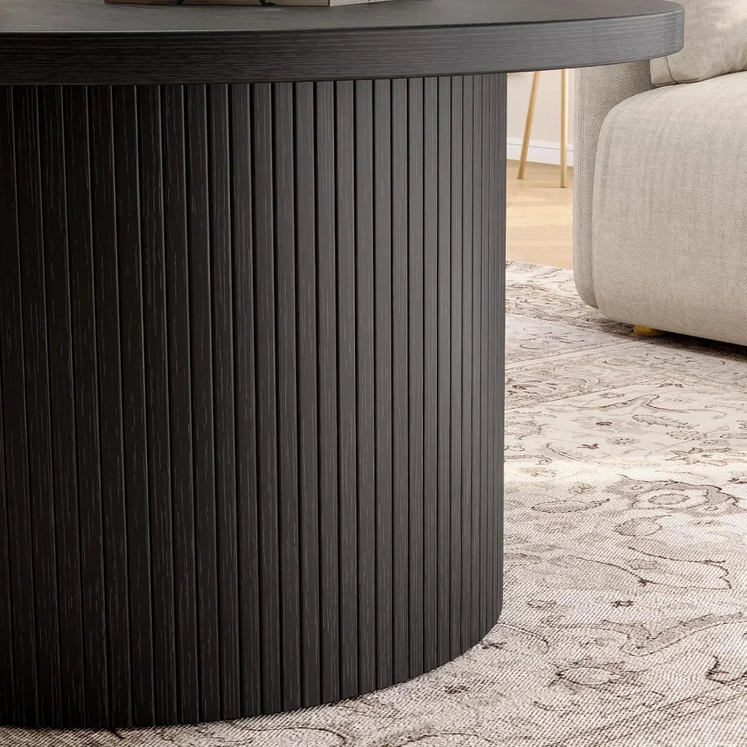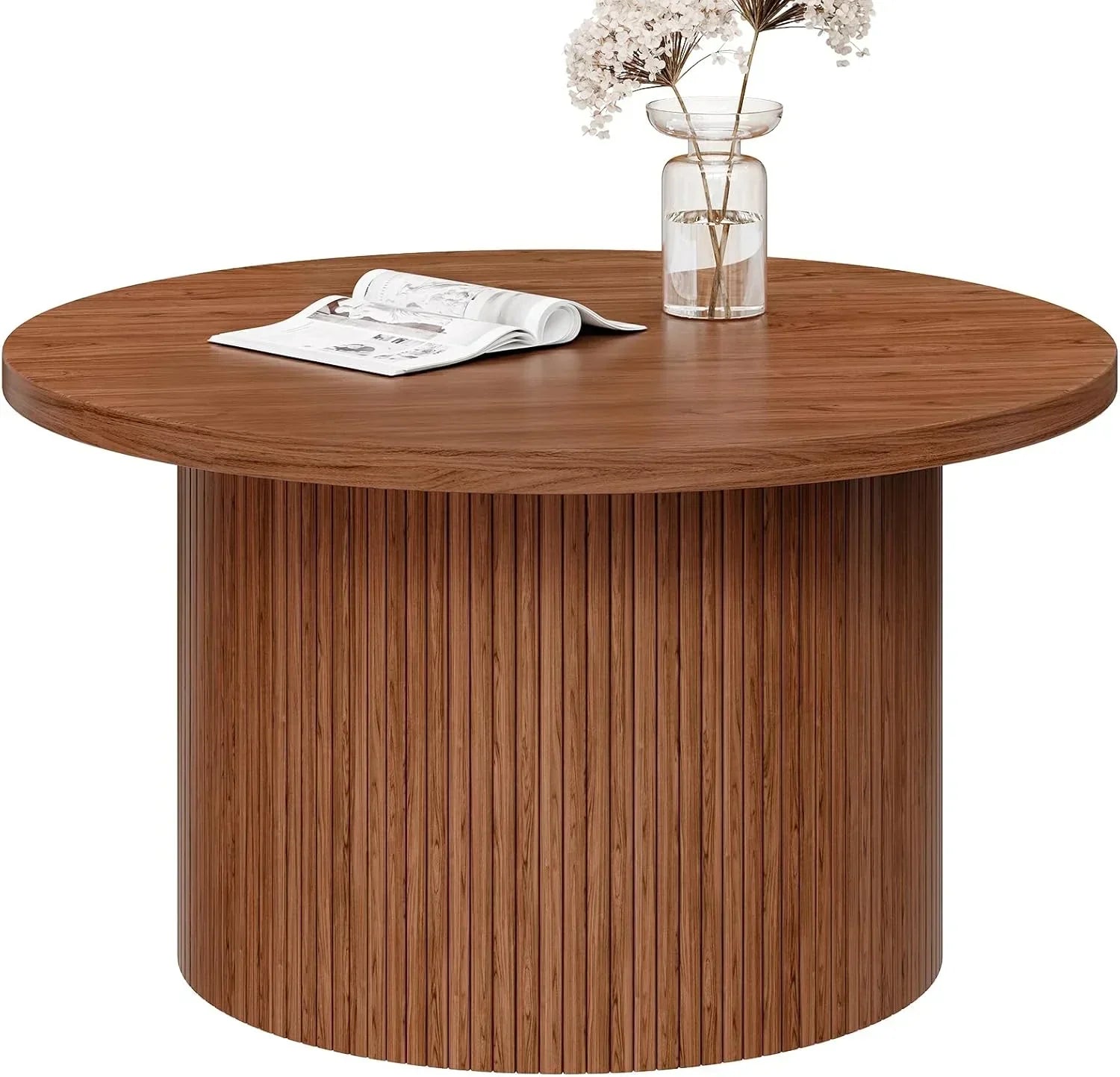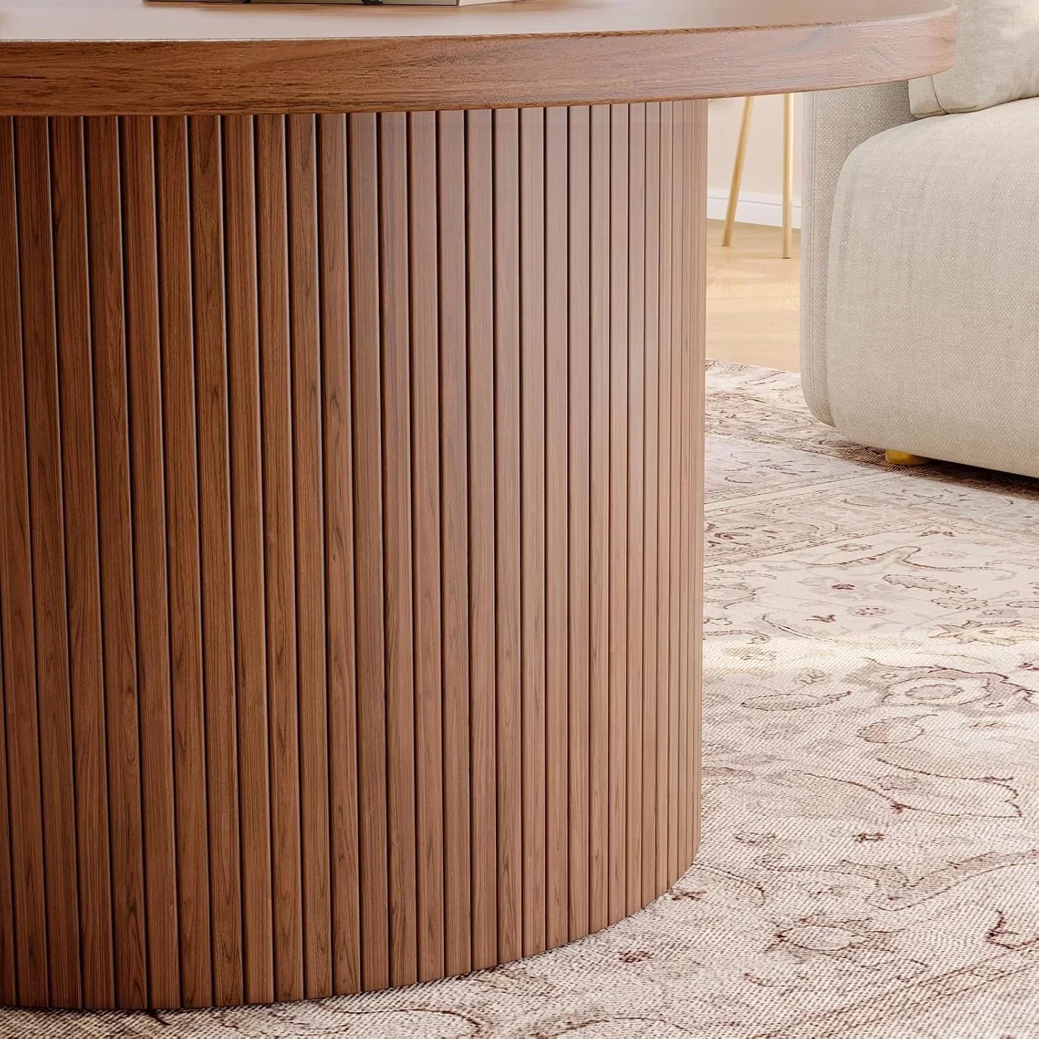 ONBRILL 31.5" Tambour Design Round Coffee Table