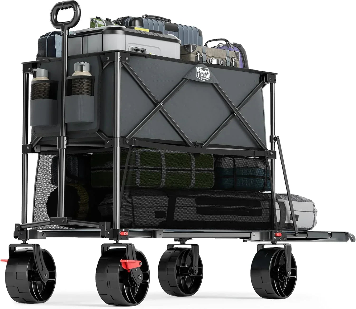 400L Large Capacity Folding Double Decker Cart with Brakes 54 Inch Extra Long Extended Cart