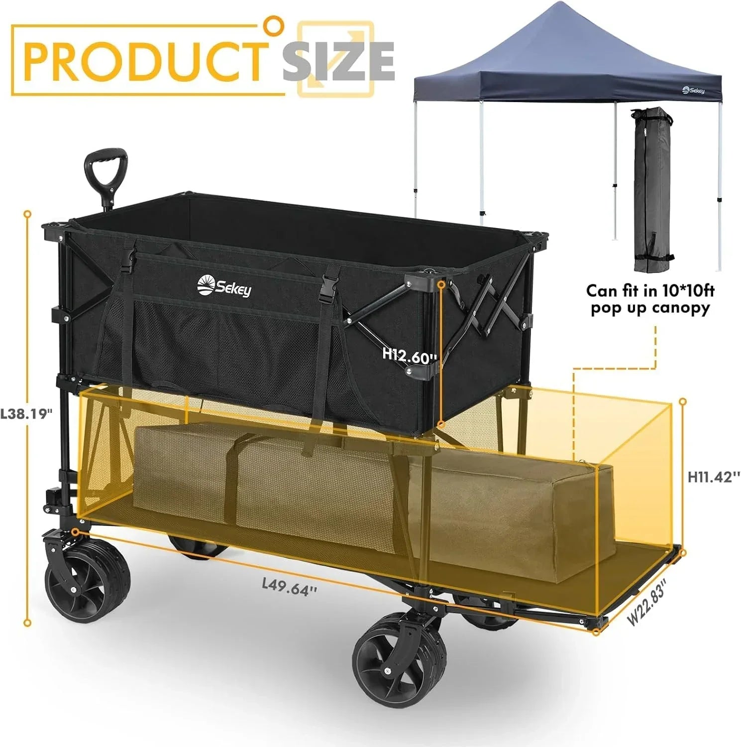 400L Large Capacity Folding Double Decker Wagon with Brakes 50" Extra Long Extender Cart