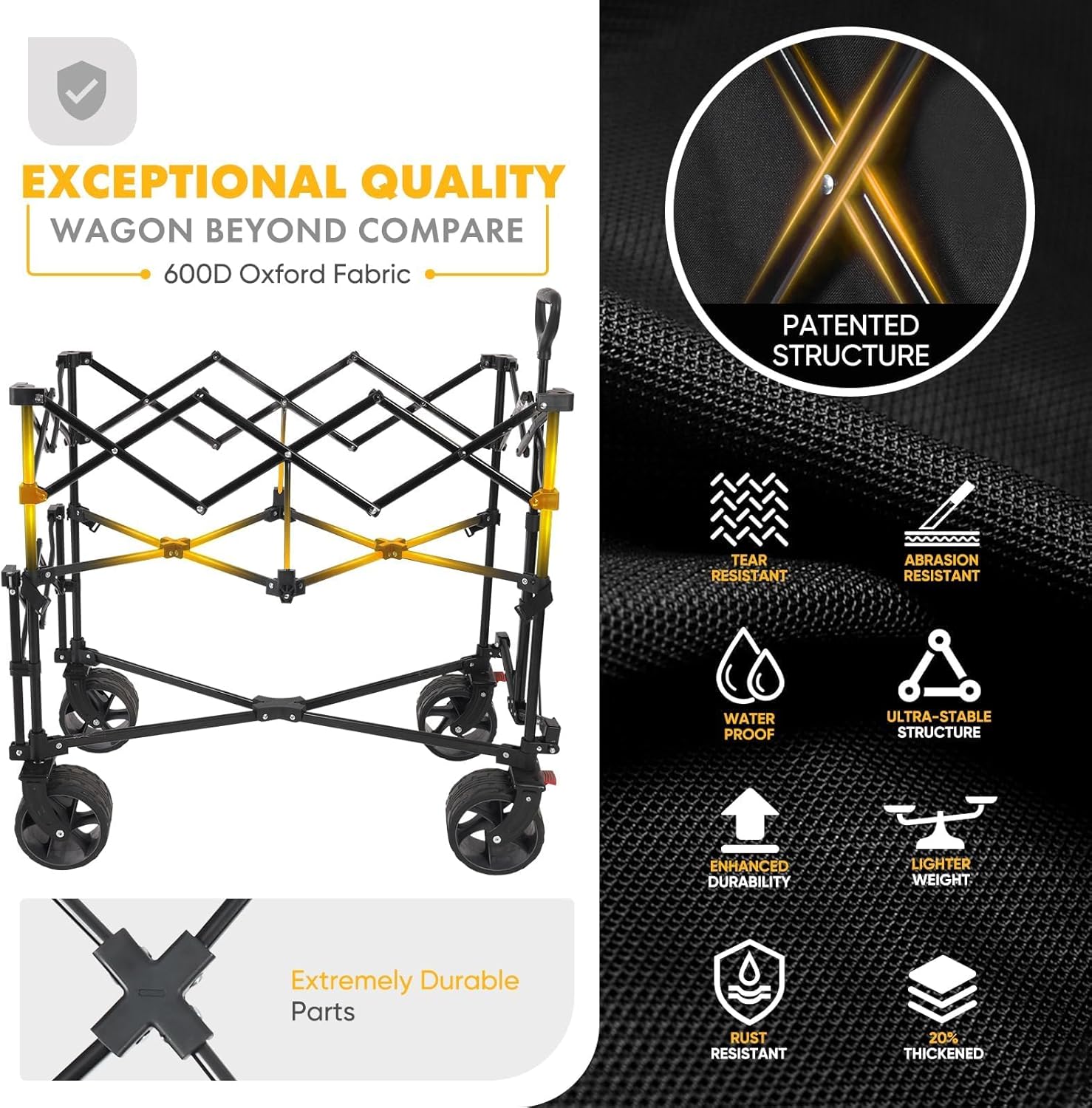 • 400L Large Capacity Folding Double Decker Wagon with Brakes, 50" Extra Long Extender Cart, 500lbs Heavy Duty Collapsible Wagons