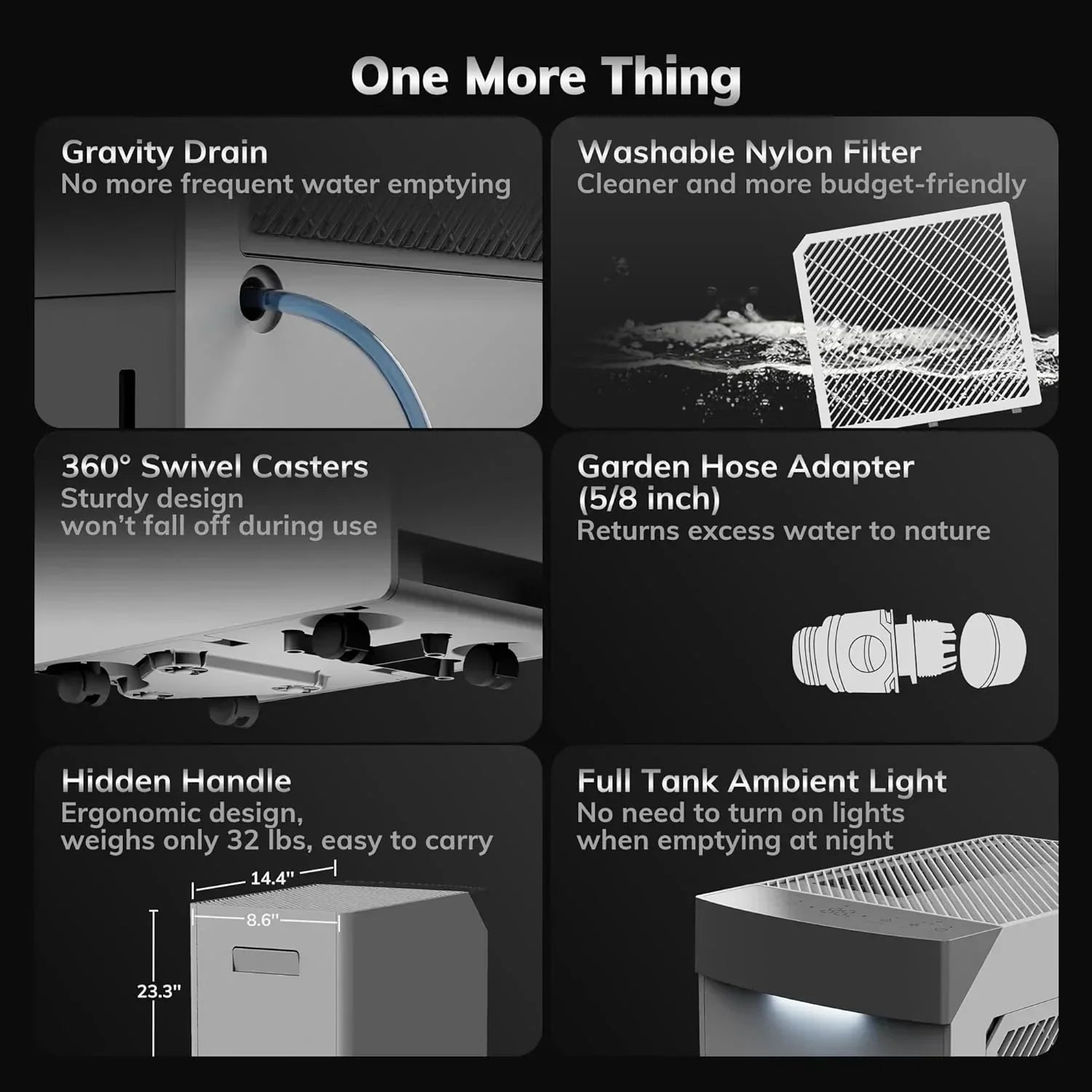 • 4500 Sq.Ft Most Efficient Energy Star Dehumidifier AEOCKY Max 80 Pint/D Compressor Dehumidifier