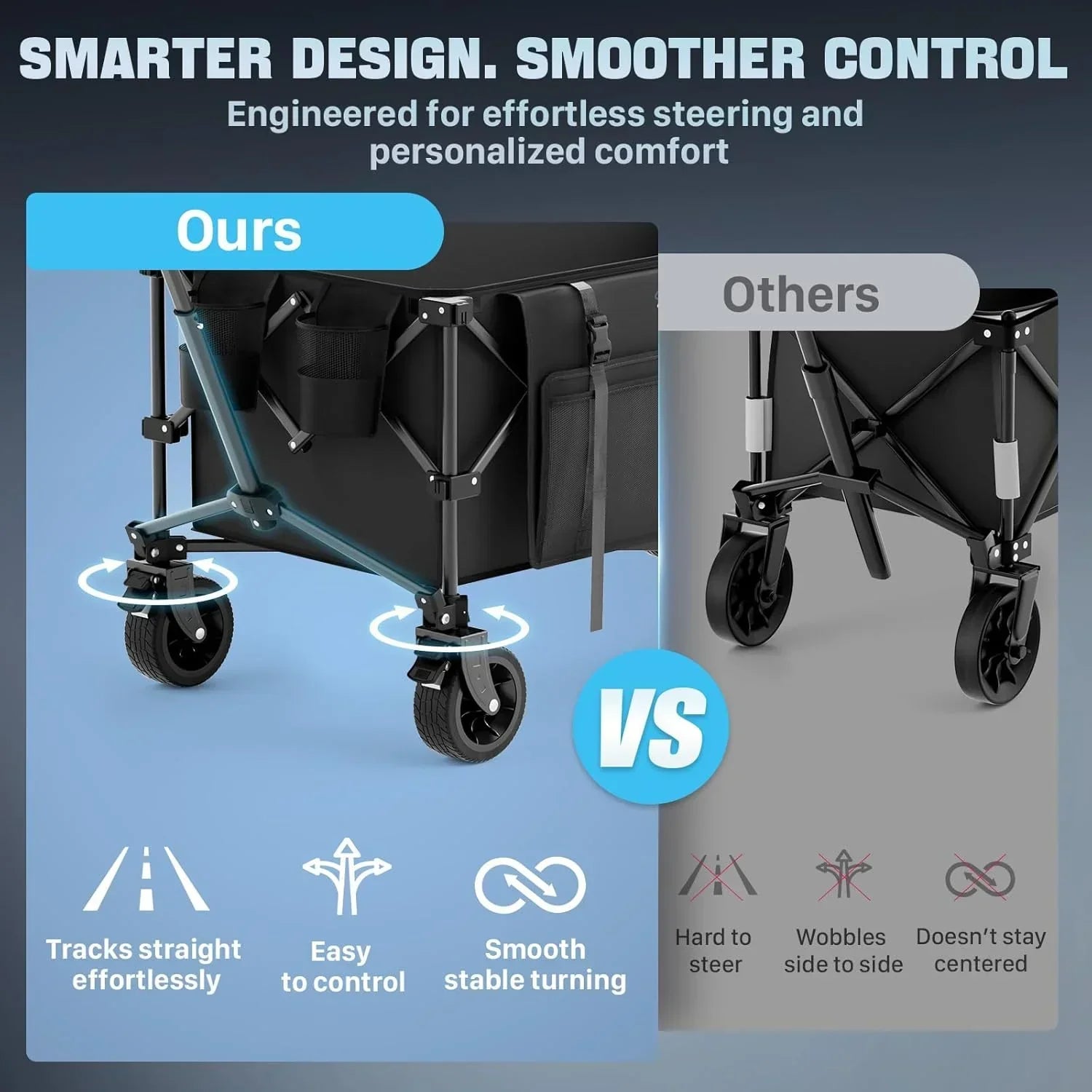 48" Extra Large Folding Travel Cart 560 lb Capacity 350 L Heavy Duty Utility Cart with Brakes