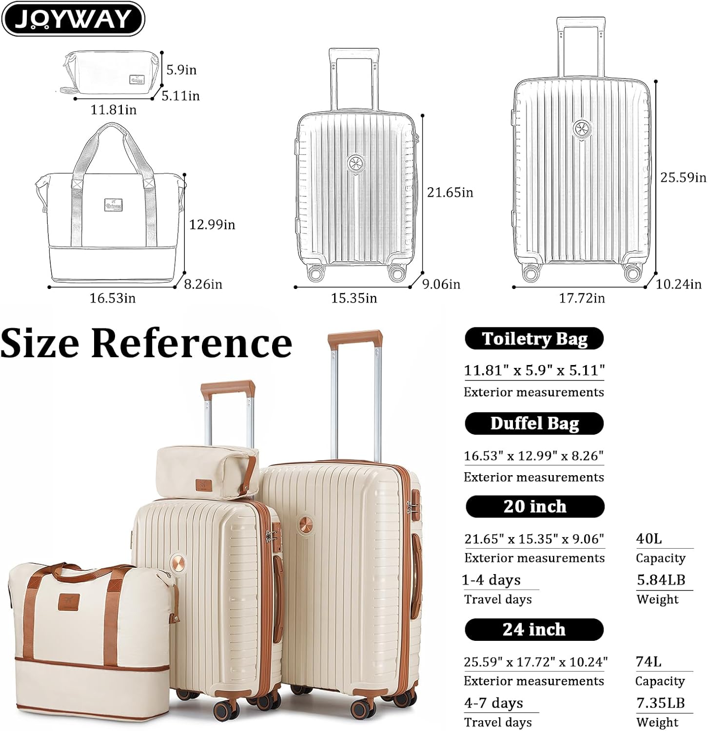 - 5 Piece Luggage Sets - The luggage set of 5 pieces offers 20" carry on luggage, 24" medium checked luggage, 28" large check-in suitcase, expandable duffel bag and toiletry bag, can be nested together for easy storage
