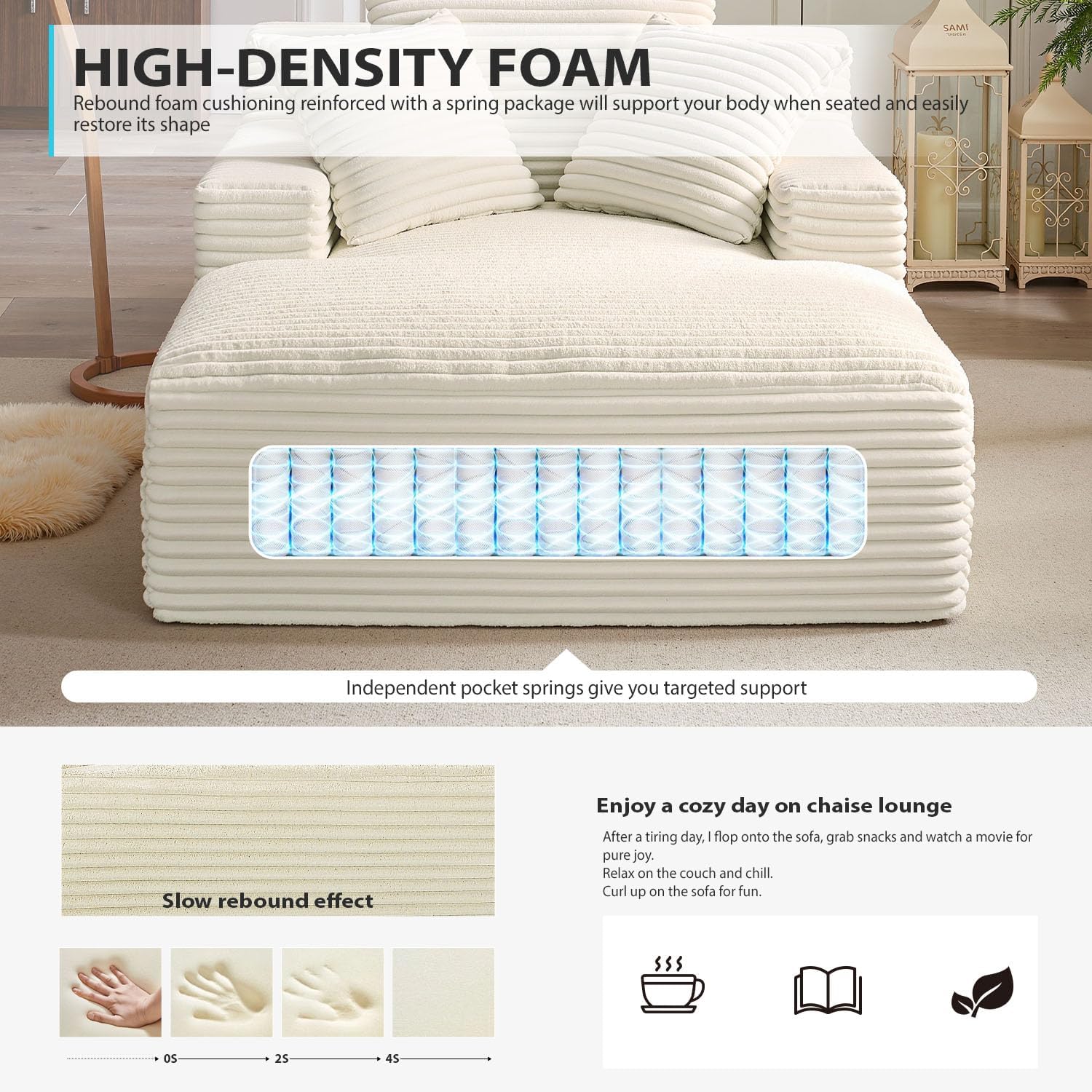 • 50-inch indoor recliner, oversized corduroy upholstered boneless sofa bed, deep sleeper sofa reading chair, cloud sofa, living room sofa
