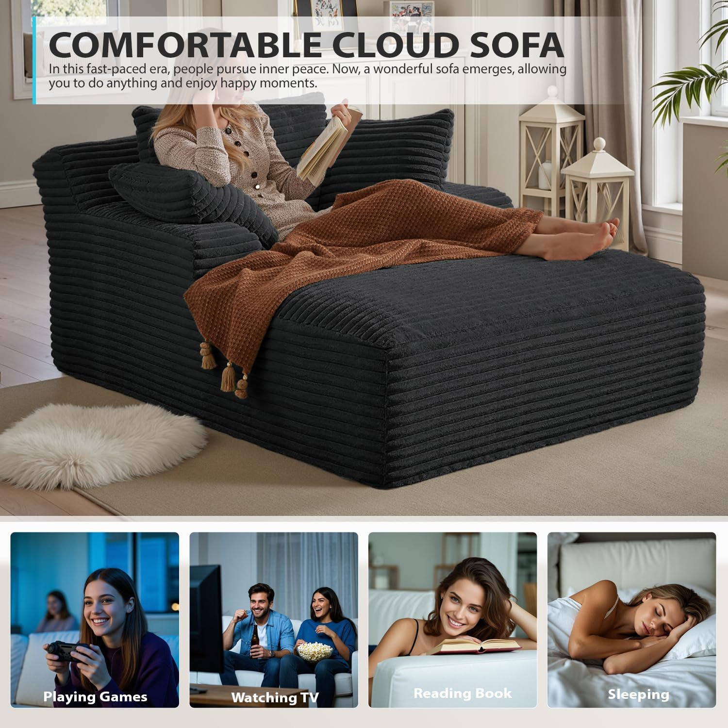 50-inch indoor recliner, oversized corduroy upholstered boneless sofa bed, deep sleeper sofa reading chair, cloud sofa, living room sofa