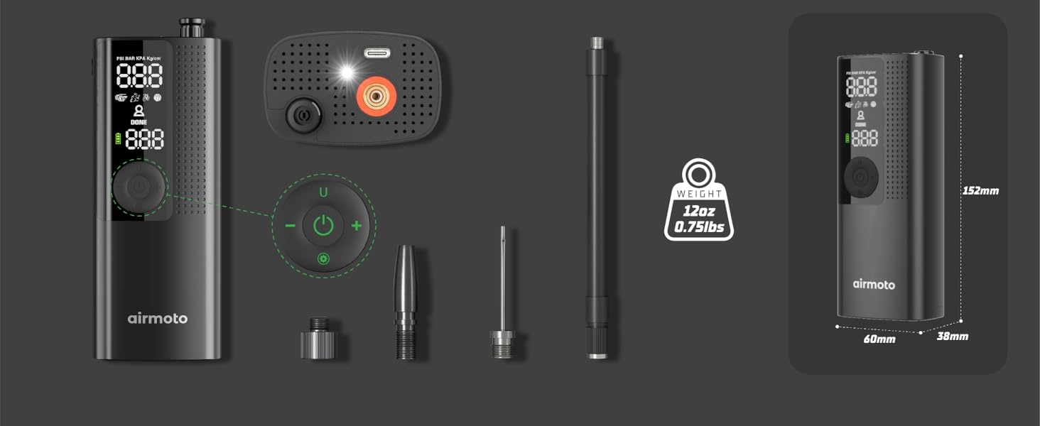 The digital display shows ultra-precise tire pressure readings for perfect inflation every time