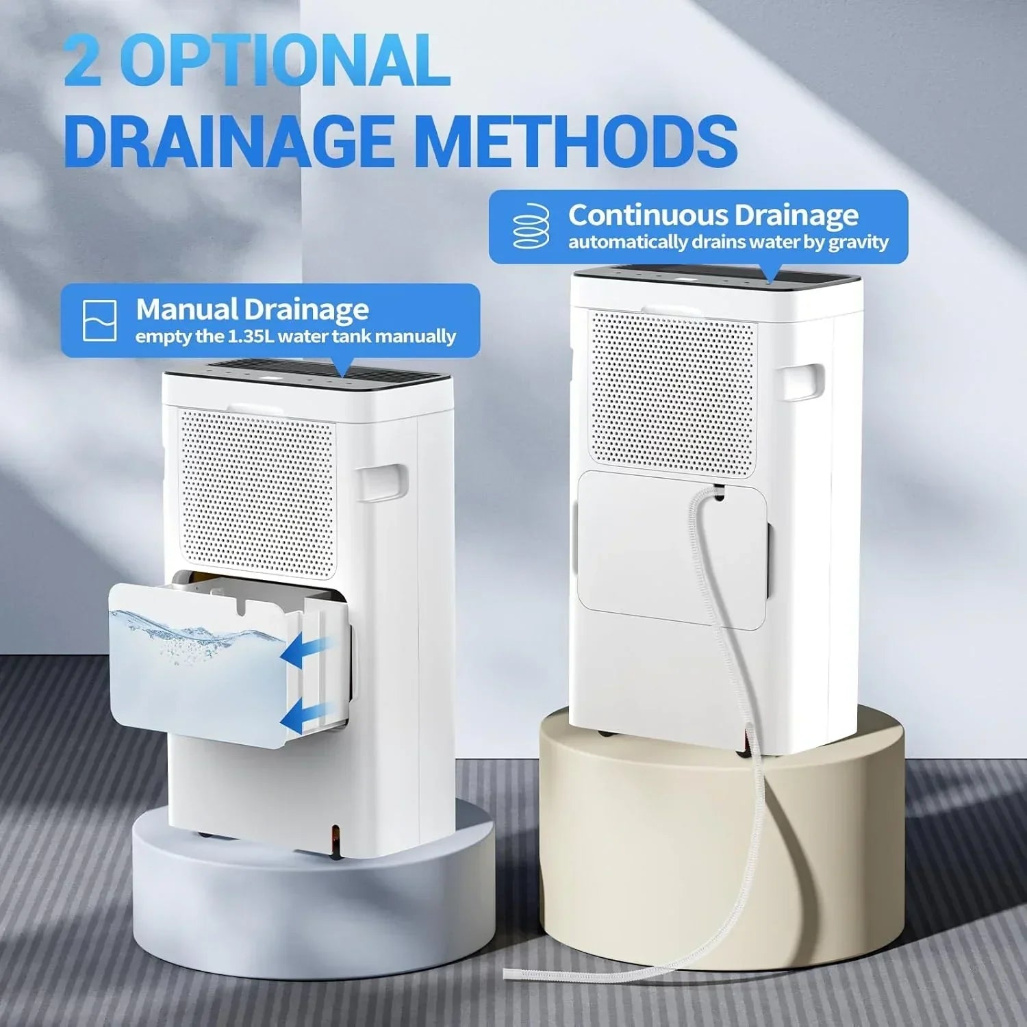 Continuous drainage with a durable drain hose or manually drainage with a 1500ml capacity water tank, choose the way you like to carry out the dehumidification project.
