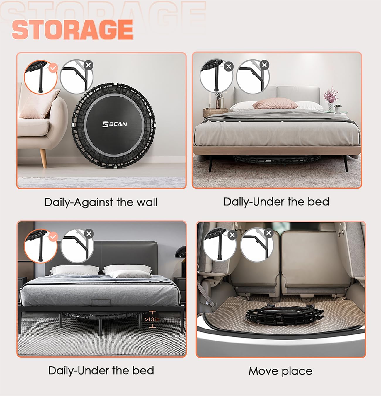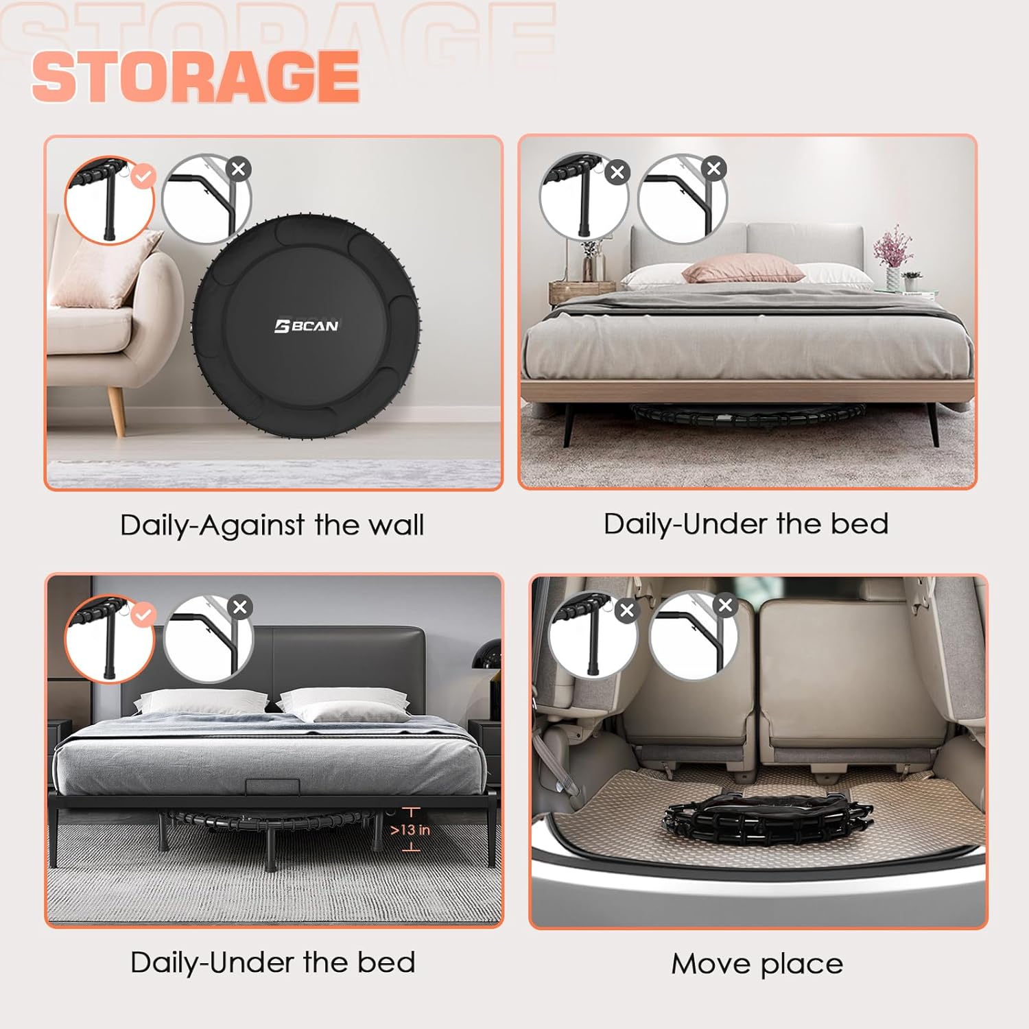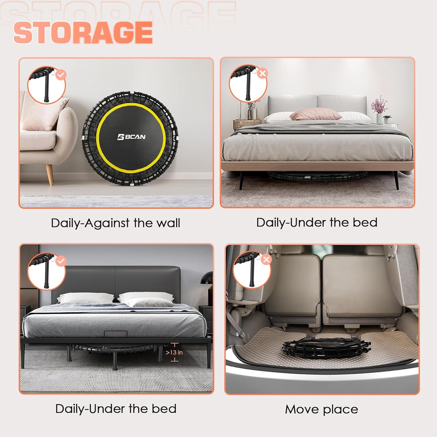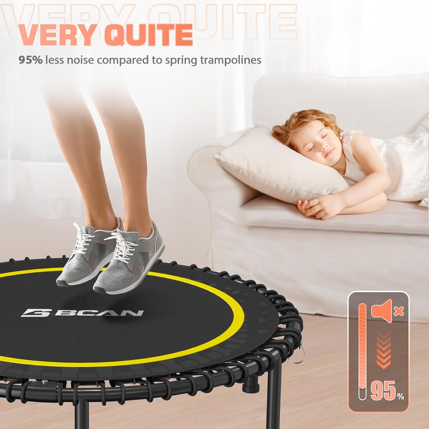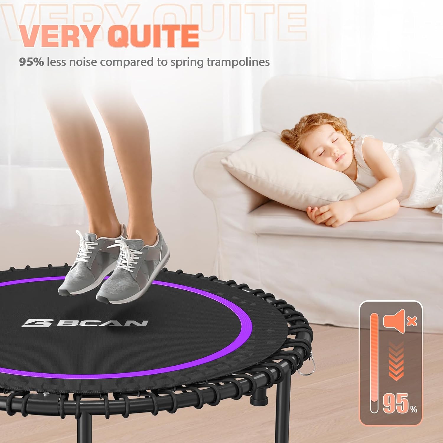 - Fairly Easy to Assemble: BCAN fitness trampoline comes with 60% pre-assembled, Only 10 minutes to complete the assembly with our special tool