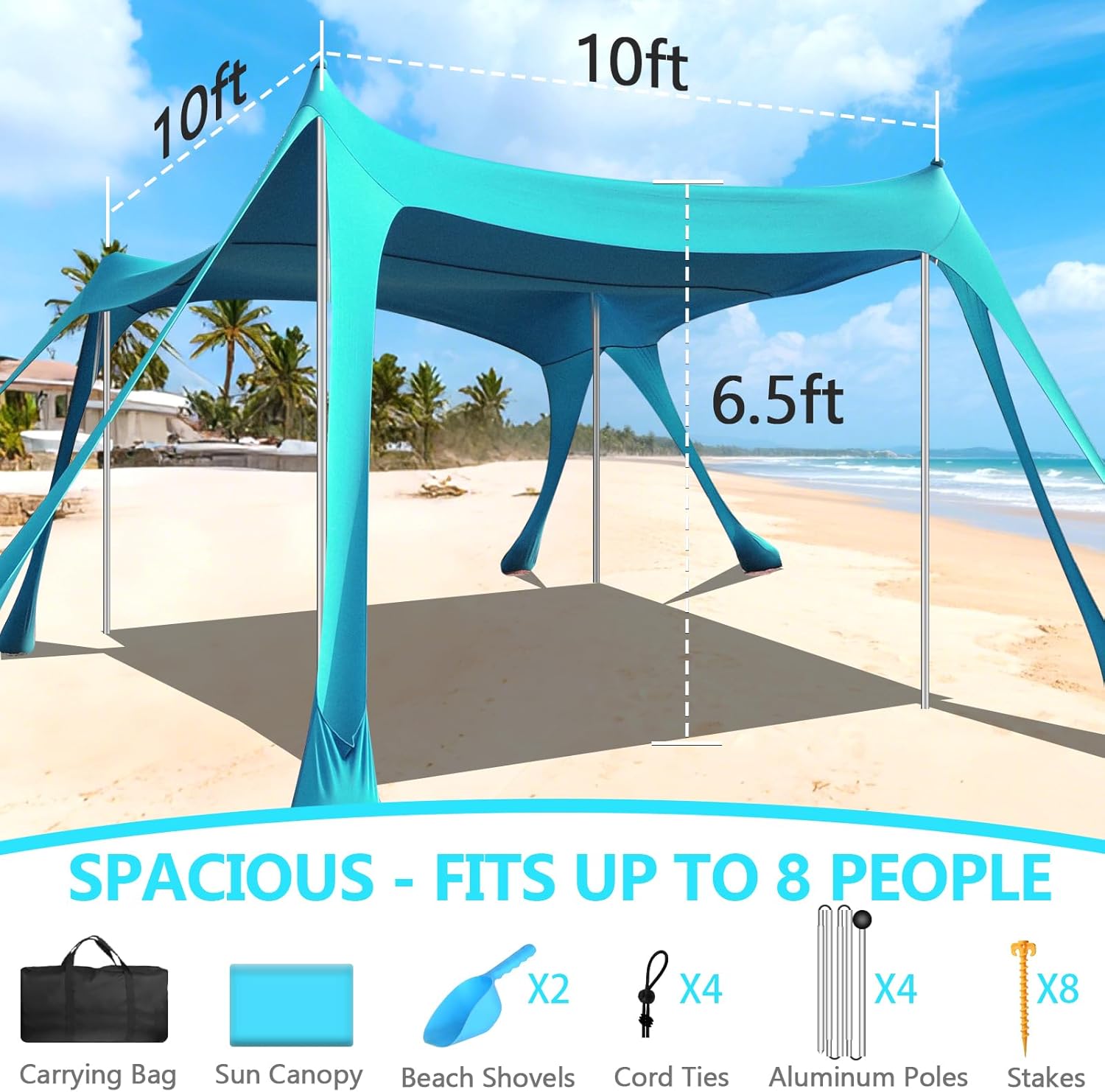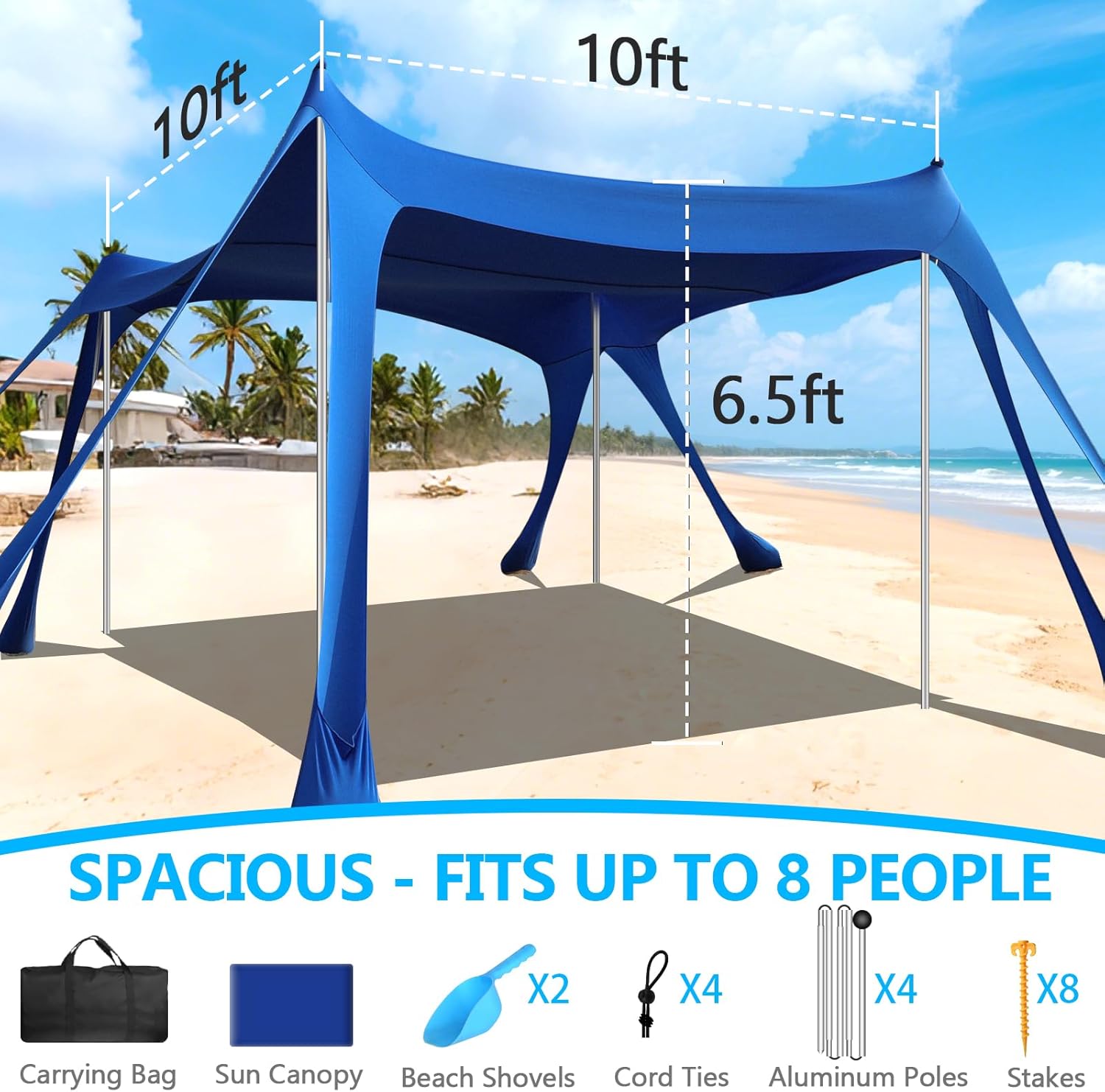 - Spacious & Ventilated Design - Choose from 10'x10' (fits 2-8 people) with a 6.5' ceiling for extra room. Store chairs, towels, and coolers inside while enjoying 360° airflow—perfect for beach days or outdoor adventures.