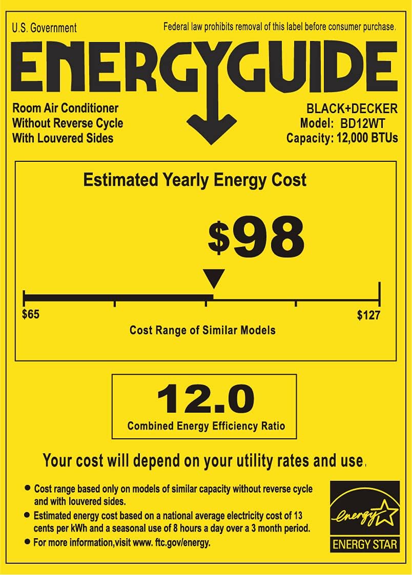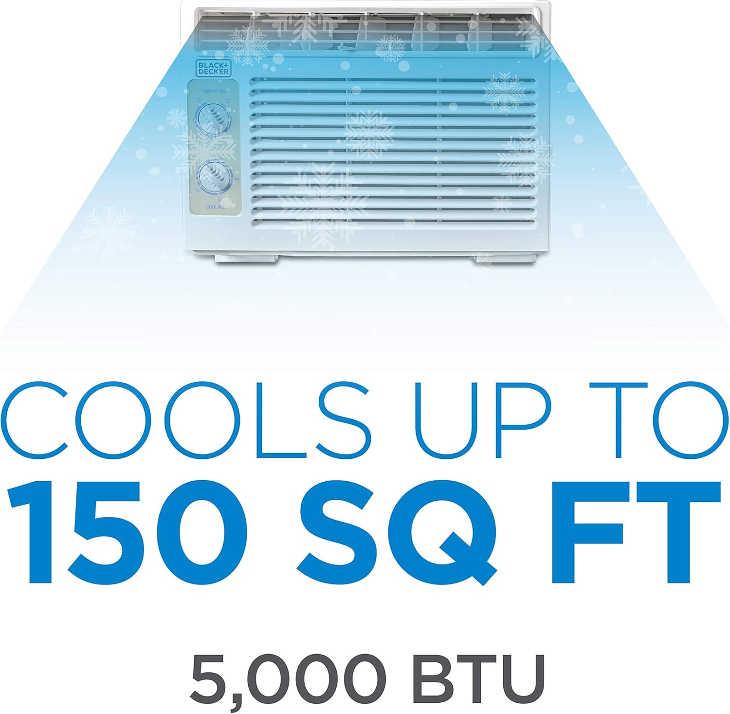 BLACK+DECKER Window Air Conditioner 5000 BTU, Cools Up to 150 Square Feet, AC Unit with Mechanical Controls, Manual Fan Only and Cool Settings, BD05MWT6, White