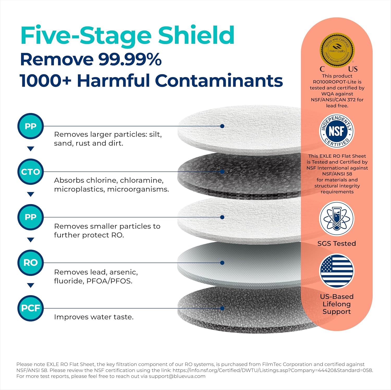 - SPACE-SAVING DESIGN AND YEARLY MAINTENANCE: The ROPOT-Lite(UV) is engineered for efficiency and convenience, offering 7-stage UV reverse osmosis system in a compact form, ideal for 1-2 people, and now supports easy filter replacement once annually. Certified by WQA against NSF/ANSI/CAN 372 for lead-free and tested by SGS, it ensures high water quality. Enjoy pure, healthy water that fits seamlessly into your living space.