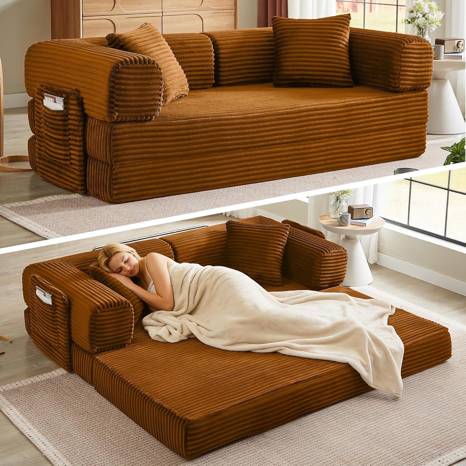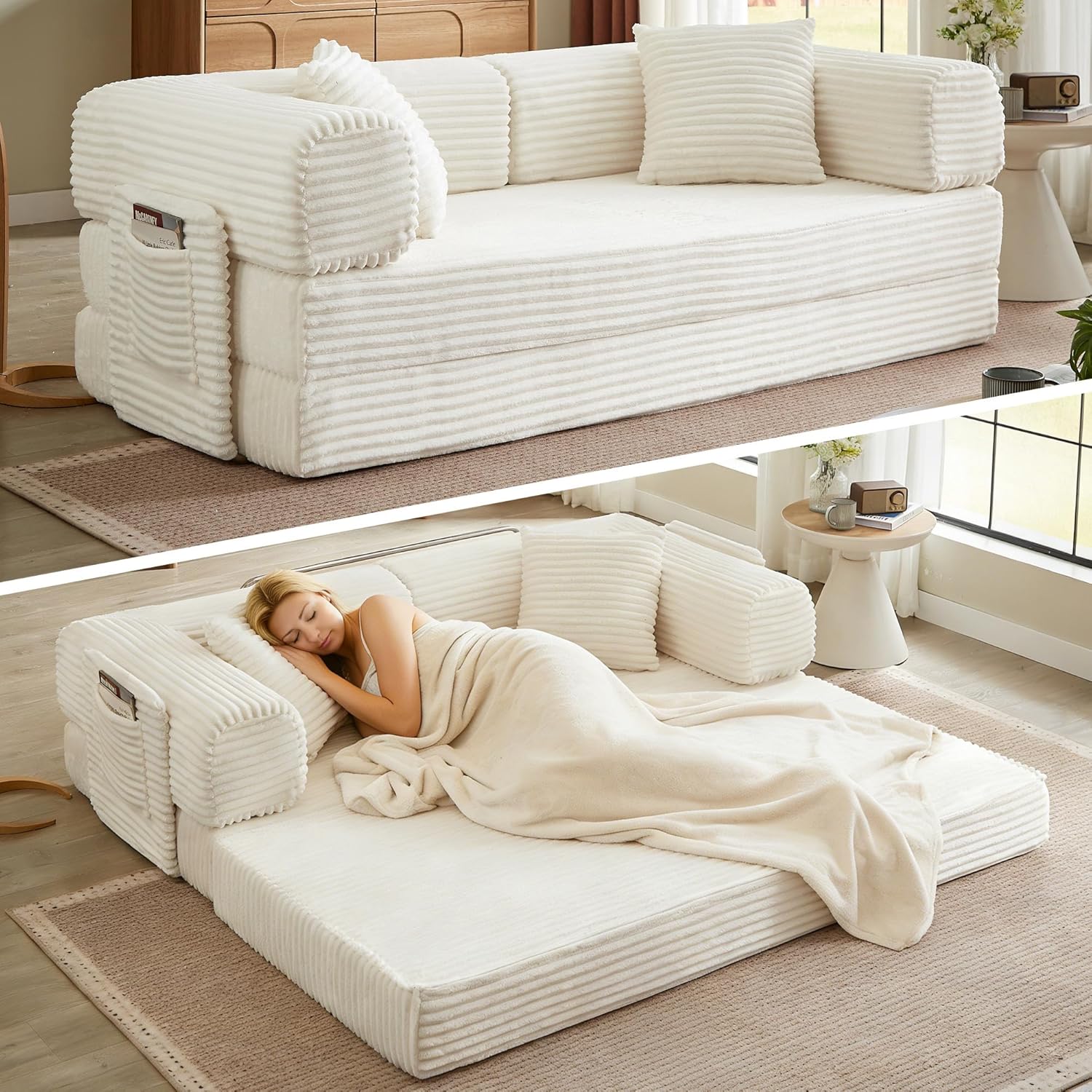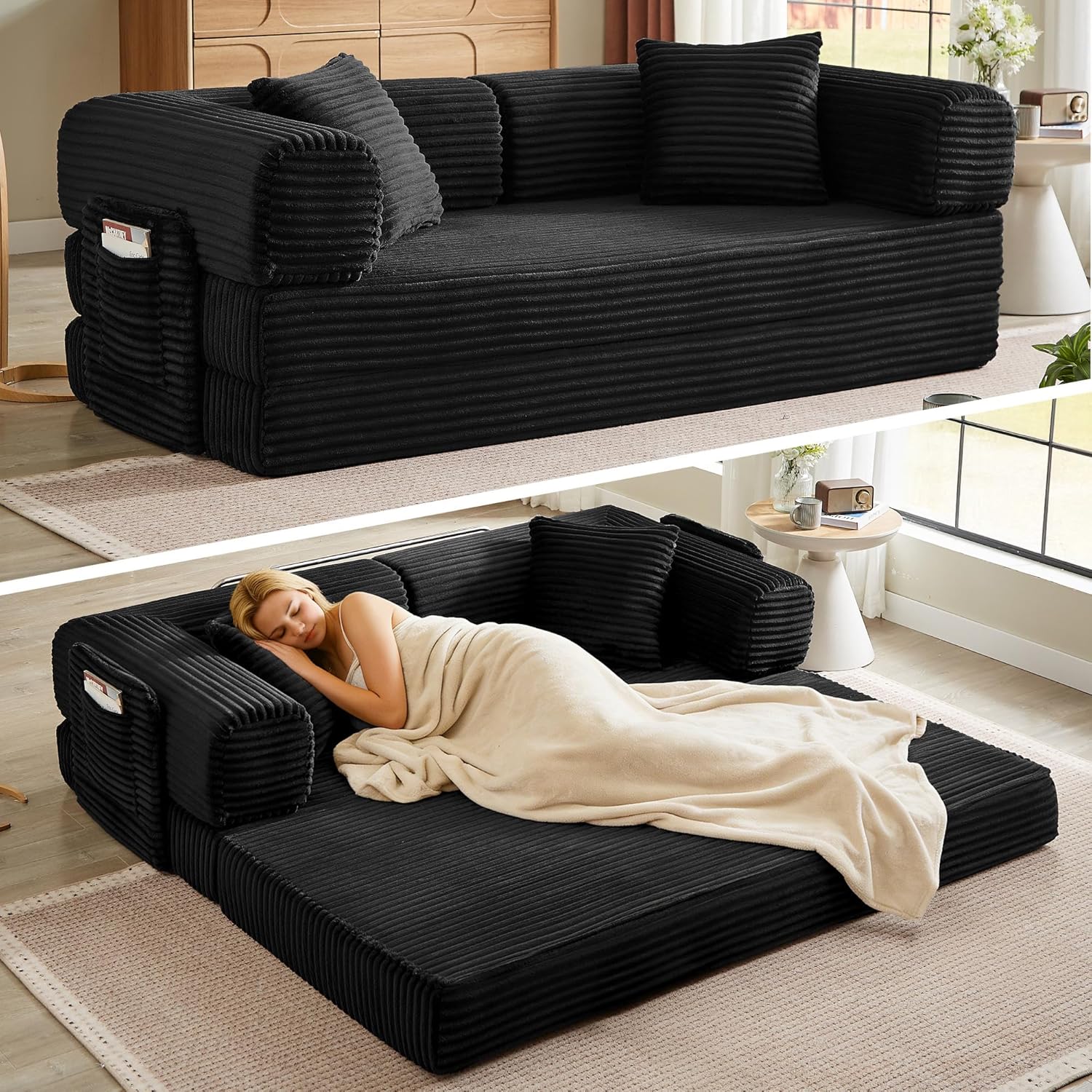- Effortless Versatility for Every Need: The best moments in life are those spent with loved ones. This modular sectional sofa caters to every moment. It easily transforms into a sofa bed, offering your unexpected guests a warm place to rest, or it can serve as a comfortable lounge area for your personal downtime. Designed with versatility in mind, it allows you to effortlessly switch between uses. Looking to nap during the day or enjoy a full night’s sleep? This modular sectional sofa adapts to whatever you need at any given moment.