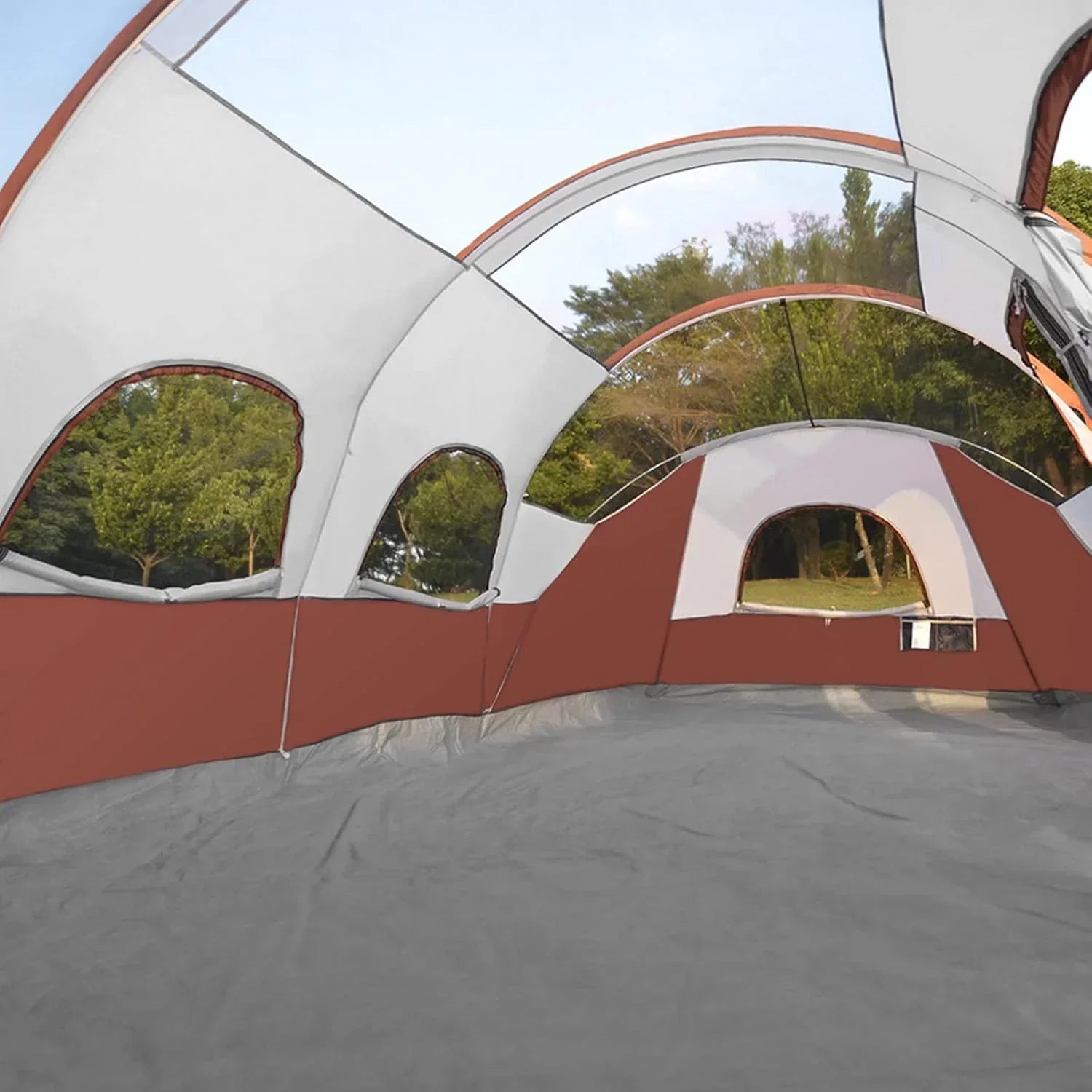 Unique 20ft×9ft×72in, well fitting 12 sleeping bags or 3 queen air mattress, ideal for family camping.