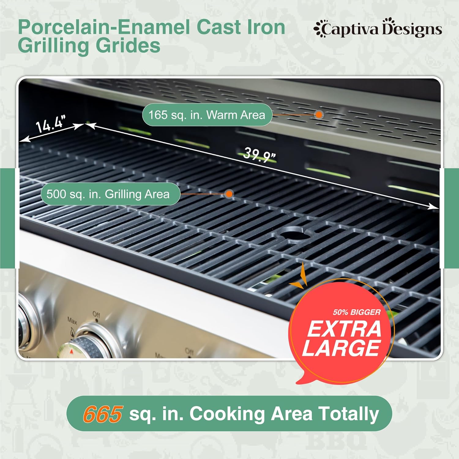 - 𝐋𝐚𝐫𝐠𝐞 𝐂𝐨𝐨𝐤𝐢𝐧𝐠 𝐀𝐫𝐞𝐚: With a generous 545 sq.in cooking area, features 400 sq.in porcelainenameled cast iron primary cooking area and 145 sq.in porcelainenameled warm rack secondary cooking area. The large cooking area also allows you to cook different types of food at the same time, making it ideal for hosting BBQ parties with friends and families