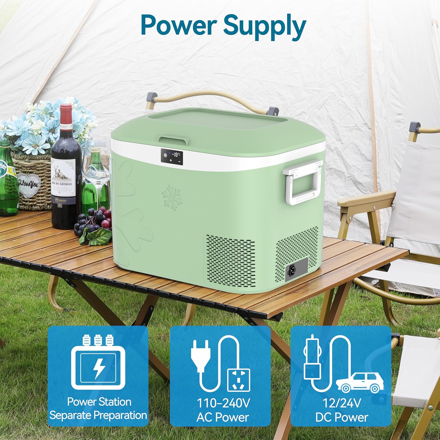 Set the temperature: When powered on, use the "+" and "-" buttons to adjust the cooling temperature; the screen numbers will flash. If no action is taken within 3 seconds, the display stops flashing and shows the current internal temperature of the cooling compartment.