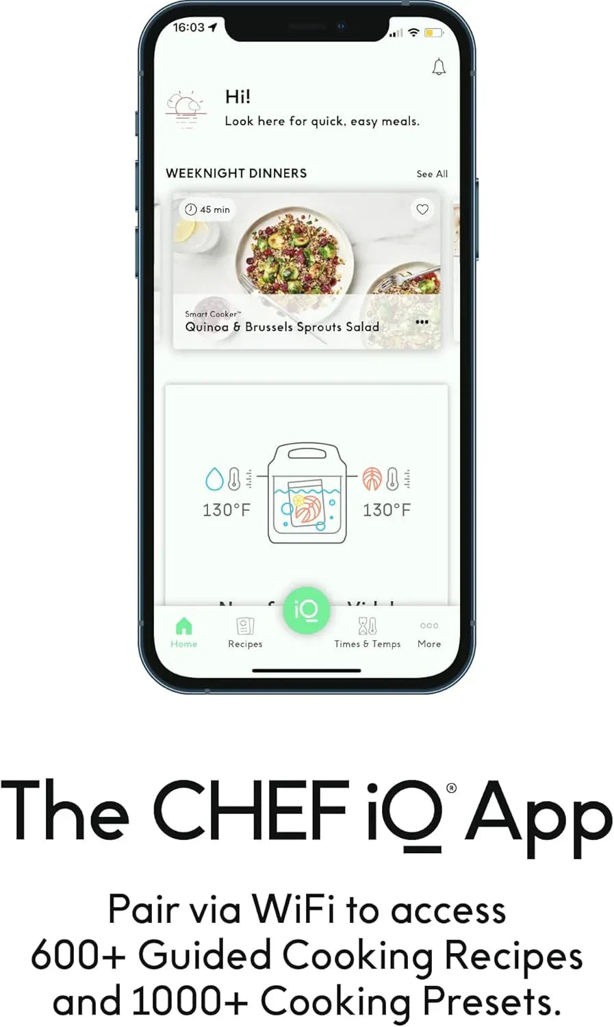 Turn your cooking pot into a personal chef with 300+ built-in cooking presets. Simply tell your Smart Cooker what you're craving and it will tell you the precise time and temperature settings to cook it to perfection. Then save your faves for one-touch cooking later.