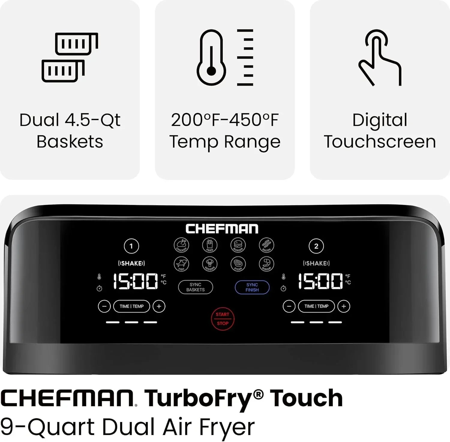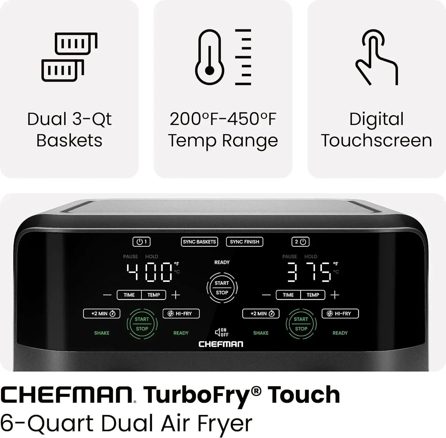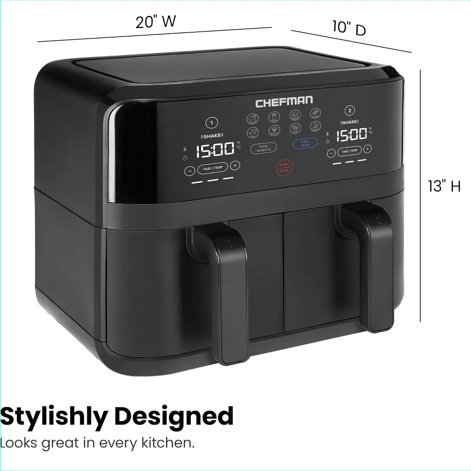 Chefman 6-Quart Dual Basket Air Fryer Digital Touchscreen Smart Sync Finish High-Frying
