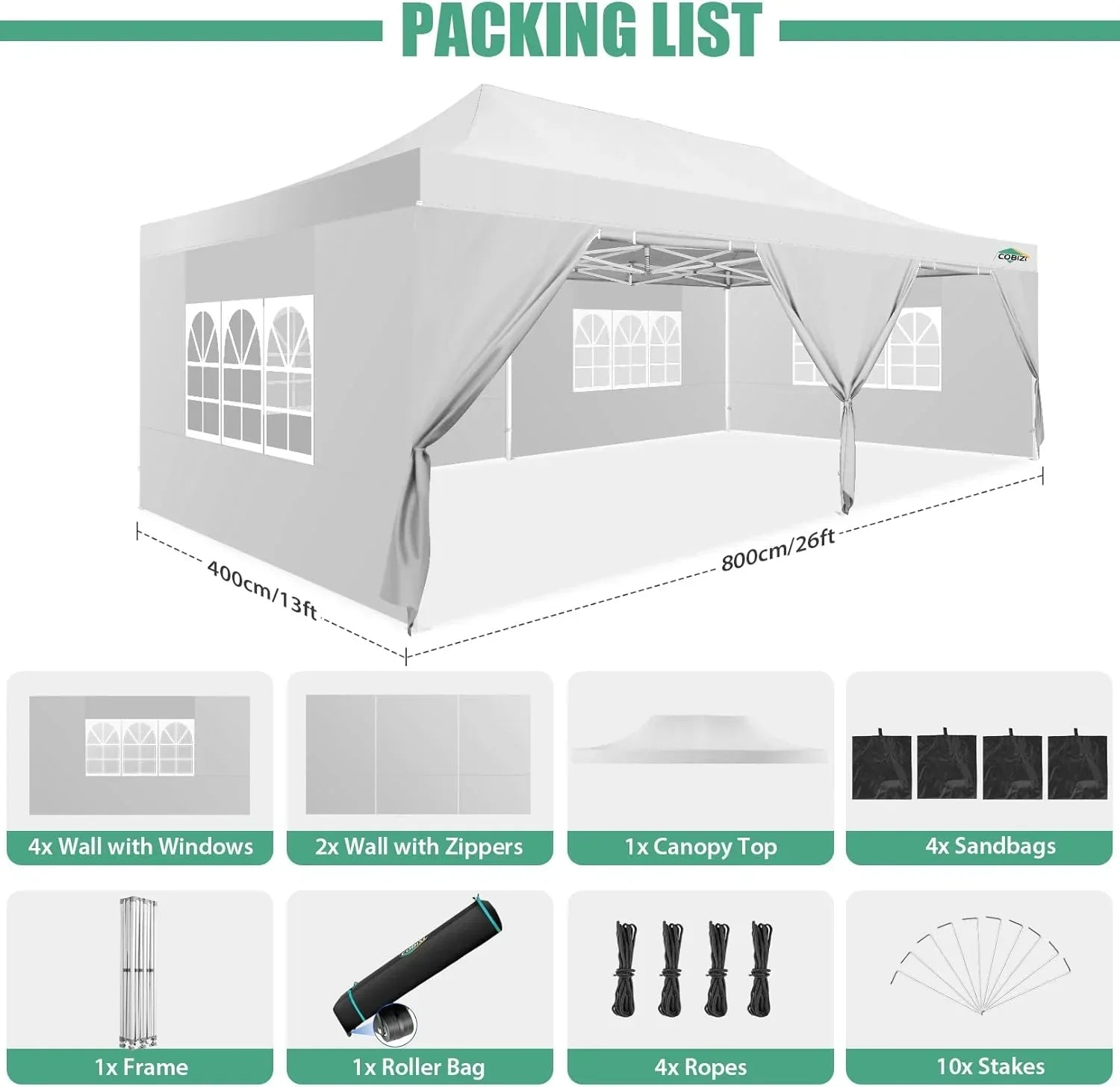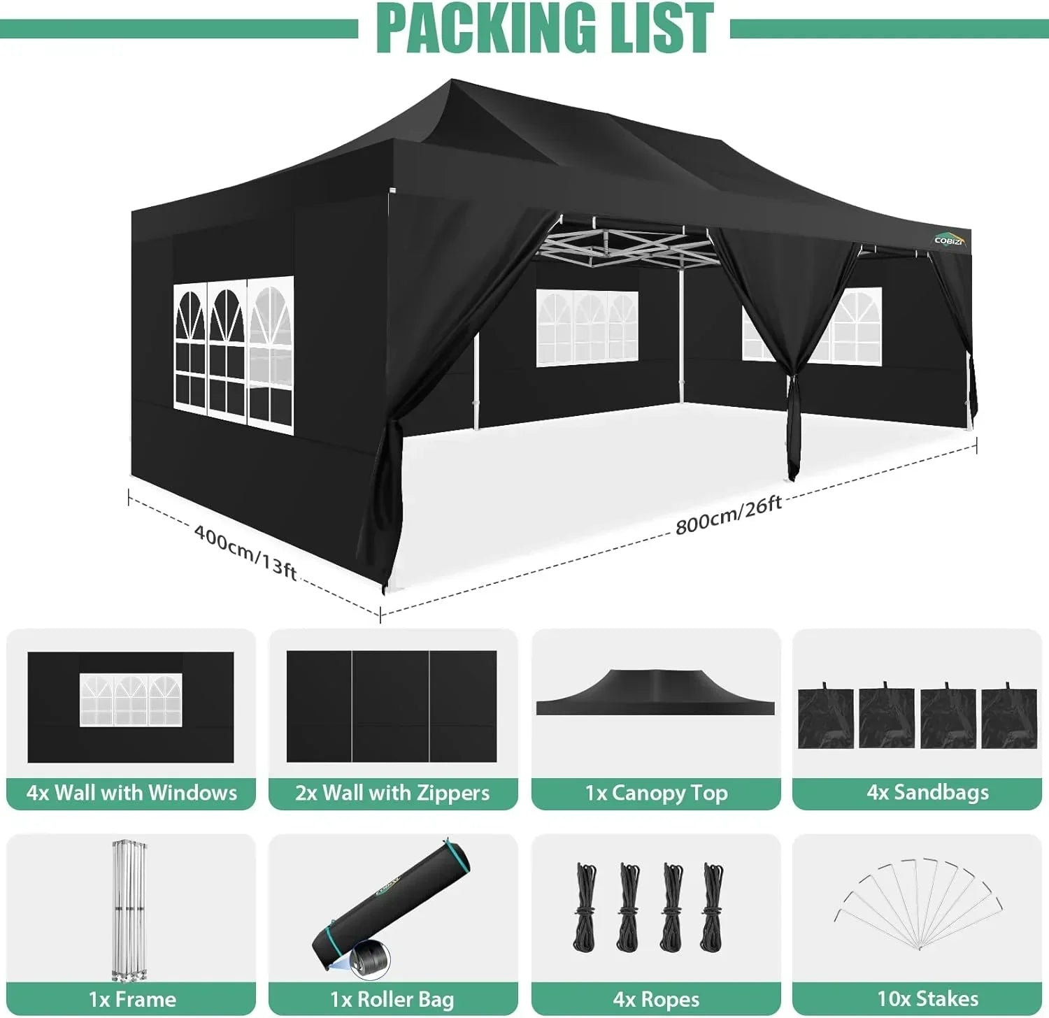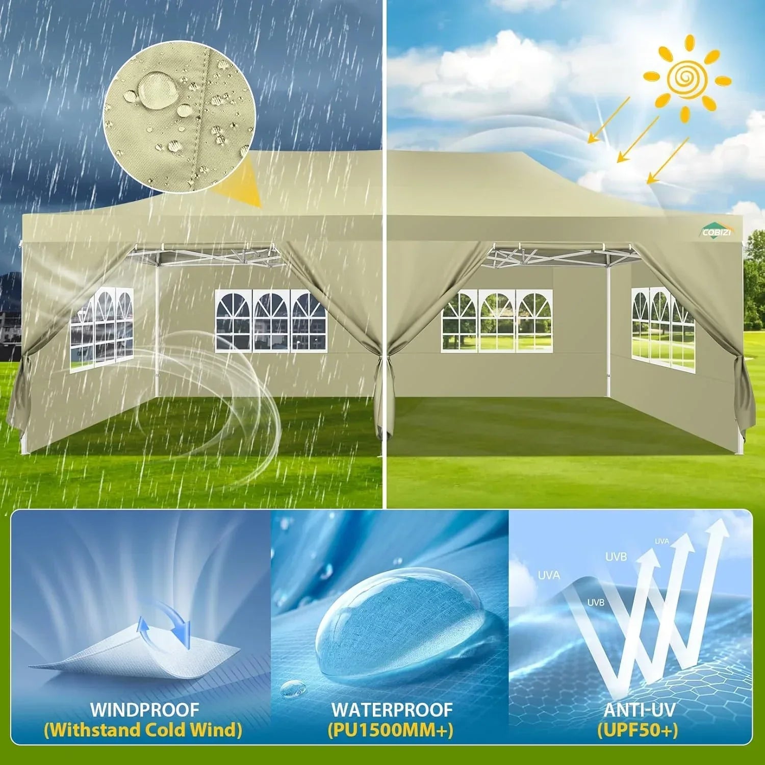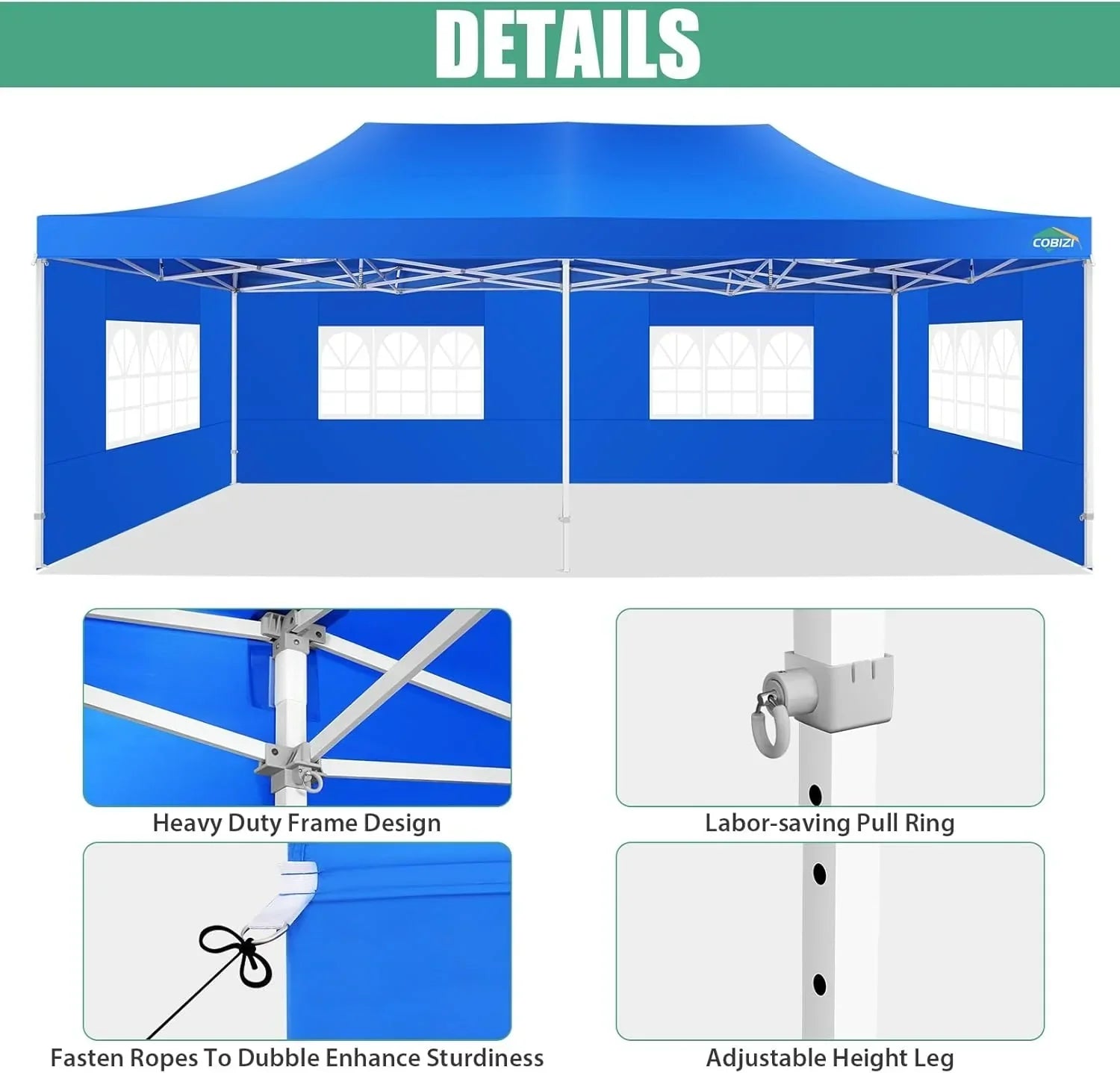 COBIZI 10x20 Heavy Duty Pop up Canopy Tent 6 sidewalls Commercial Canopy Wedding Party Tents