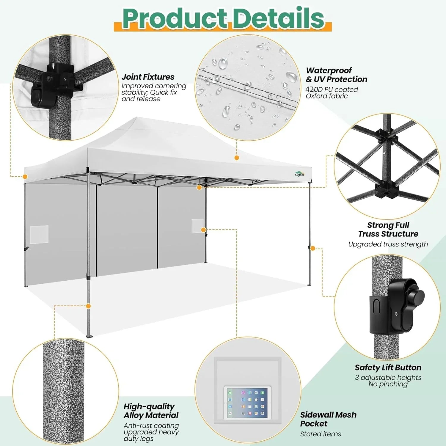 COBIZI Heavy duty 10x20 commercial pop up canopy with 6 sidewalls COBIZI Heavy duty 10x20 commercial pop up canopy with 6 sidewalls