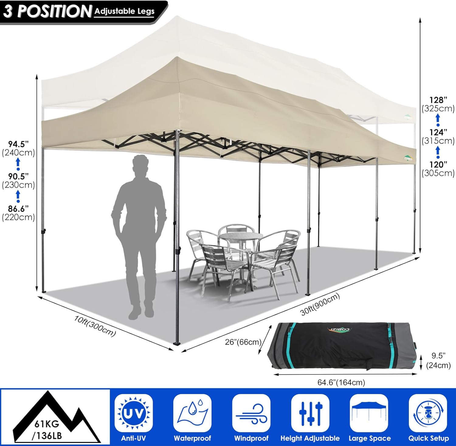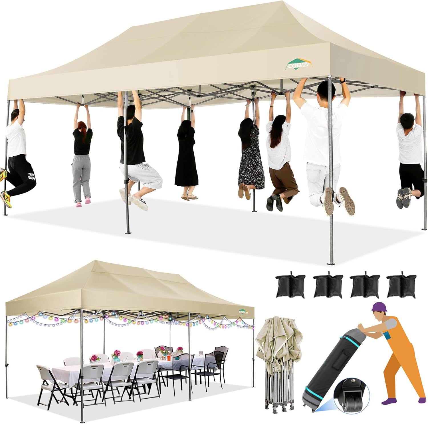 - 【Portable Durable Wheeled Bag�?0x20 Pop up canopy tent weighs 100 pounds, so we offer you a roller bag with 3 large standing wheels, 600D Oxford cloth PVC coated. The oversized design allows you to easily store heavy duty tent. Upgraded strong wheels and reinforced handle, easy to move and transport. Tents for parties, weddings, barbecues, trade shows, sporting events, disaster relief or other outdoor events. Perfect for commercial areas, playgrounds, yards, beaches, farms, gyms and more